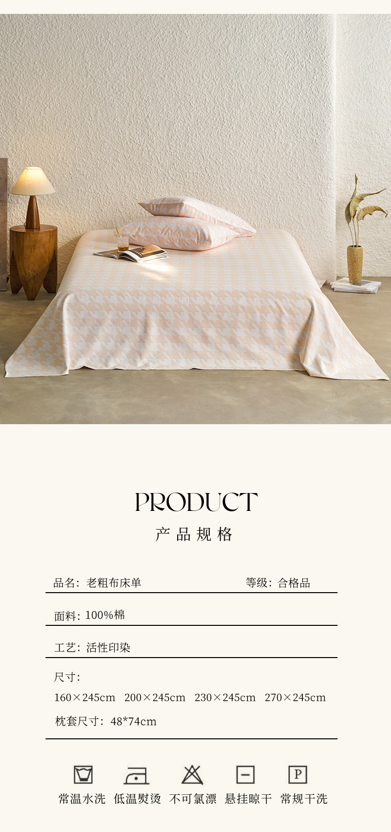 商品名称:小懒猪 2024新品全棉纯棉老粗布单品床单 千鸟格米