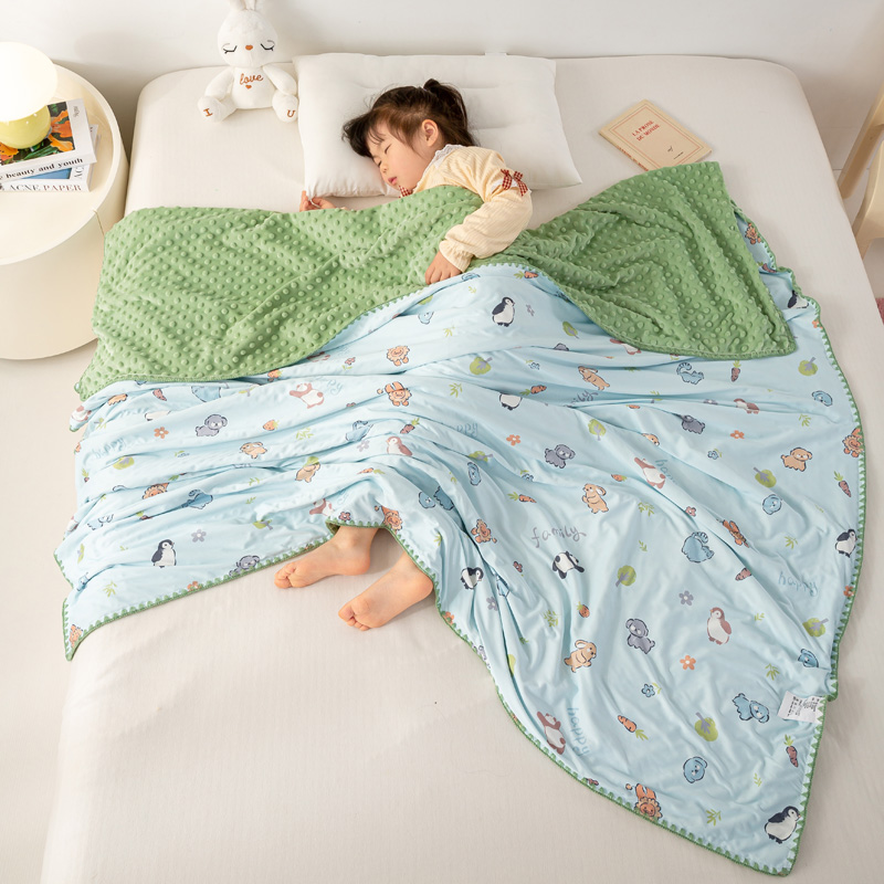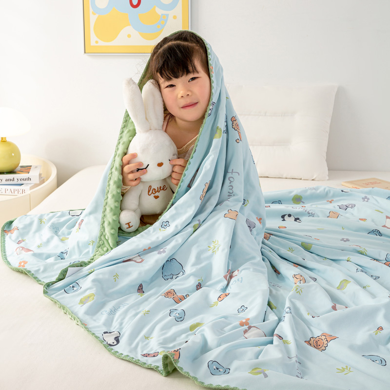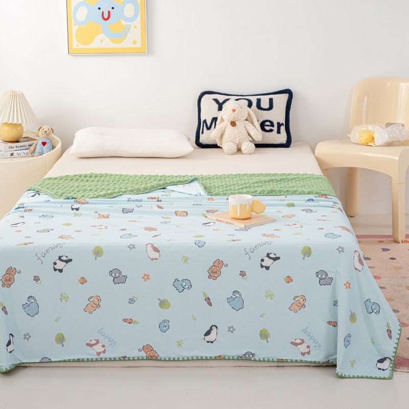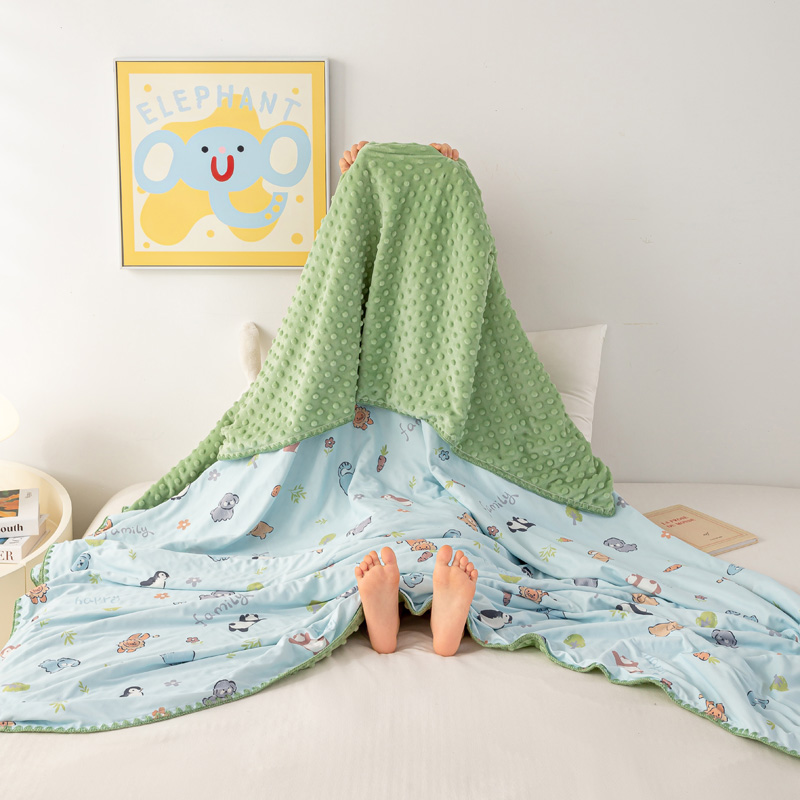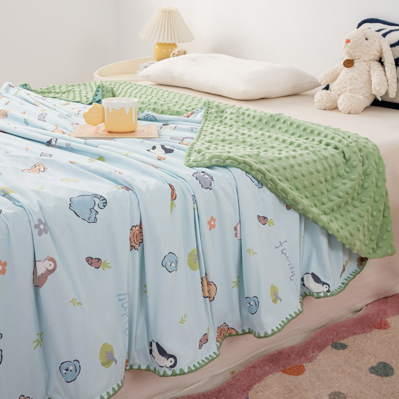 柏薇 2024新款儿童凉感针织豆豆绒盖毯 宠物乐园