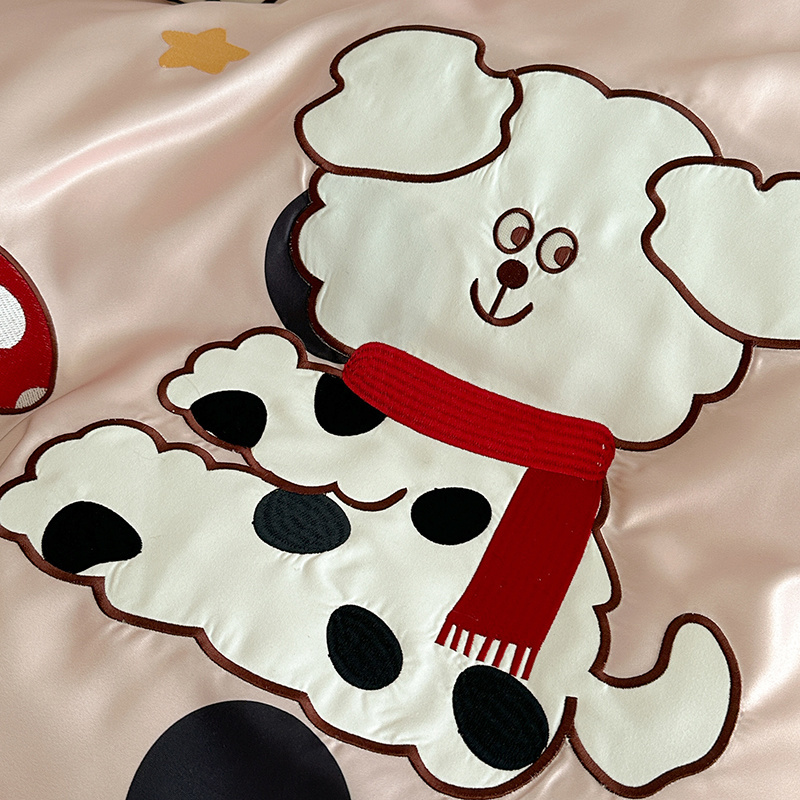 优悦2024新款冰丝卡通贴布绣四件套 围巾狗-粉