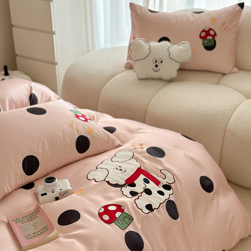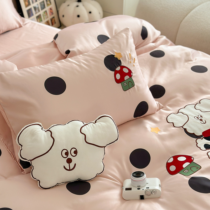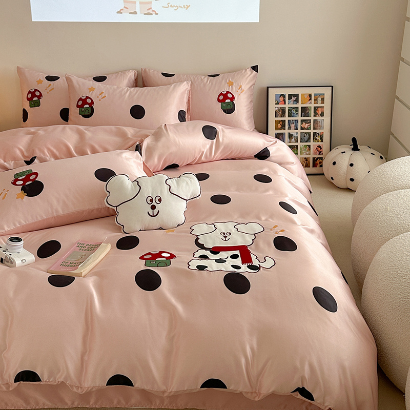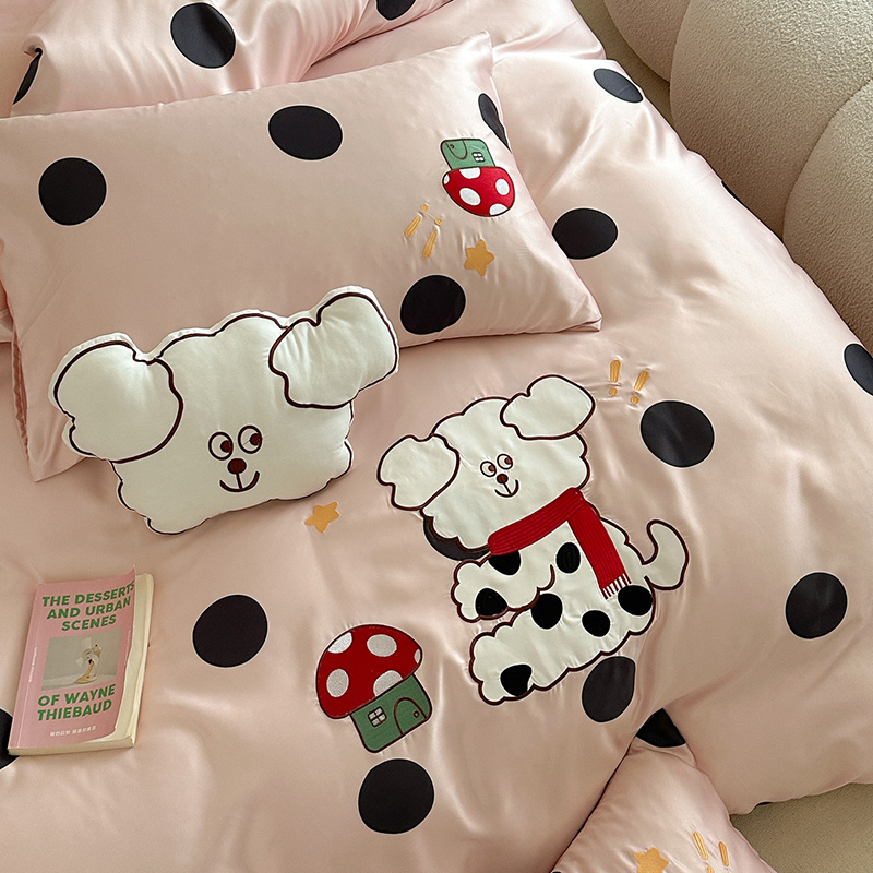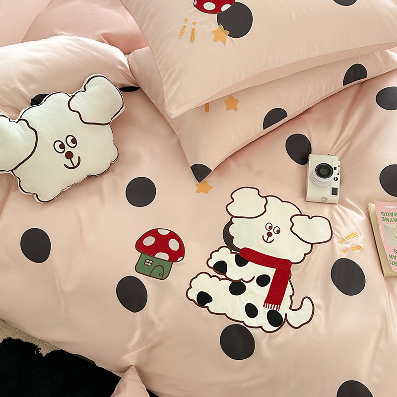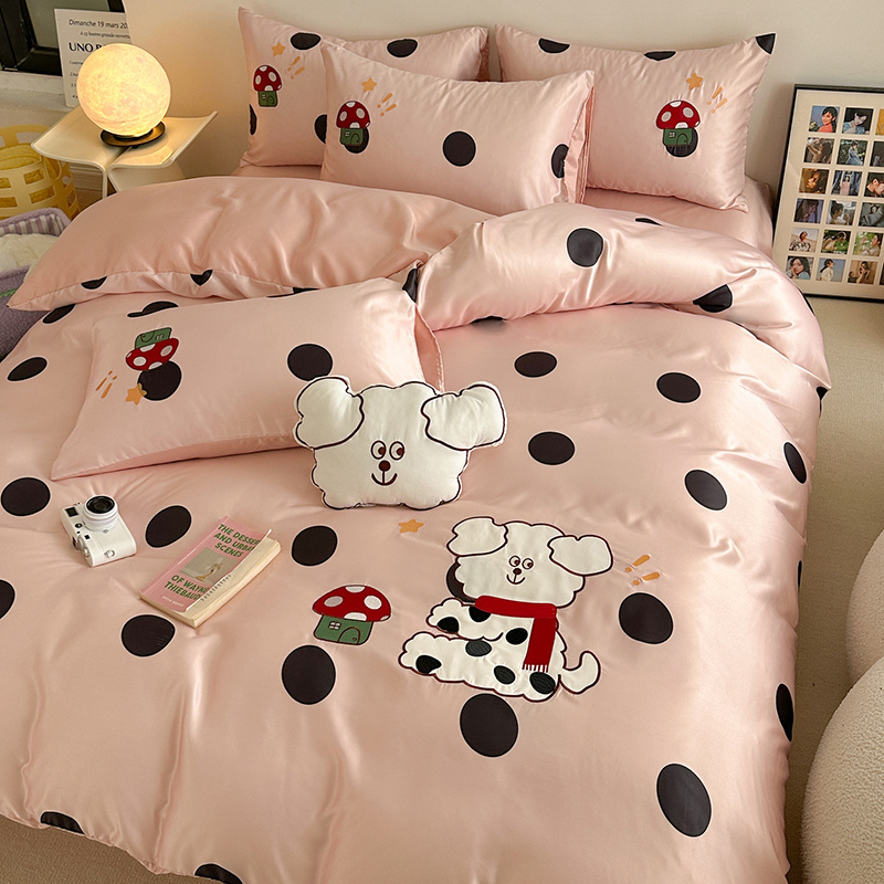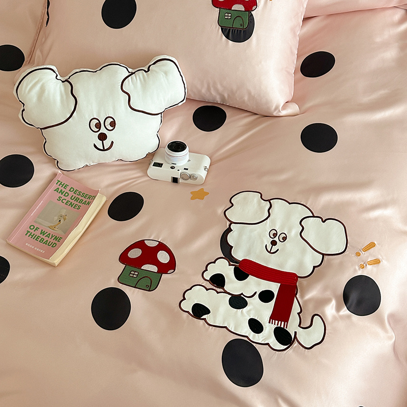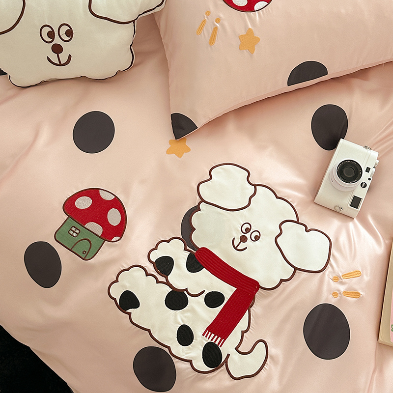 商品名称:优悦2024新款冰丝卡通贴布绣四件套 围巾狗-粉