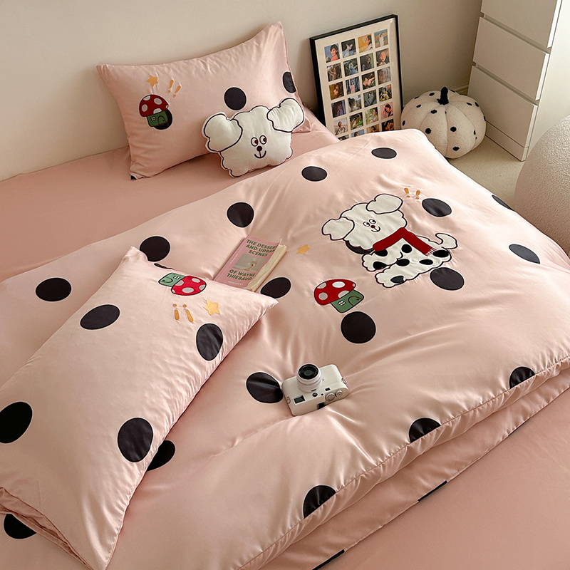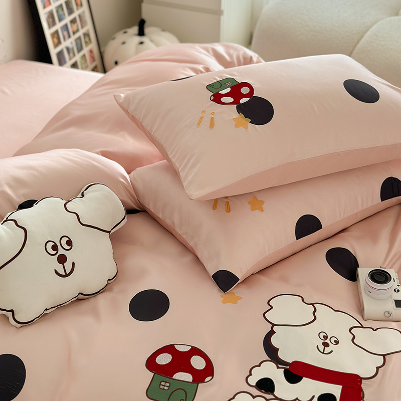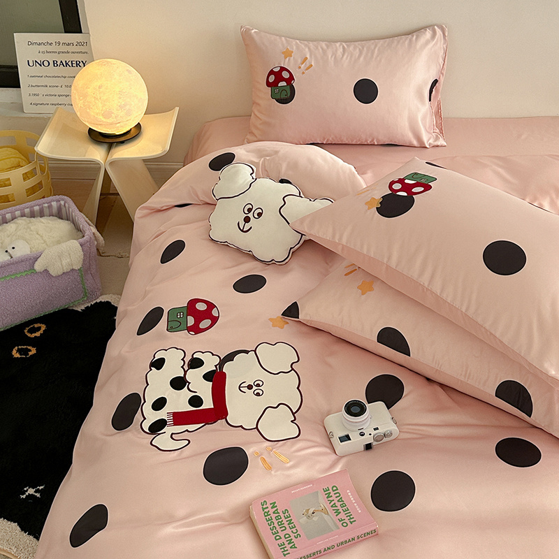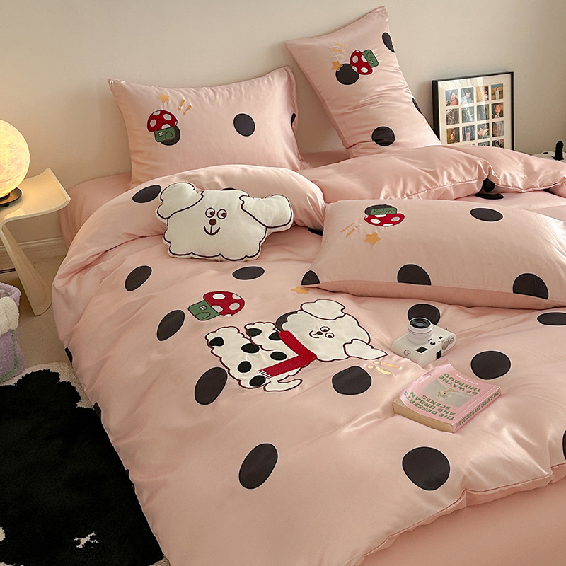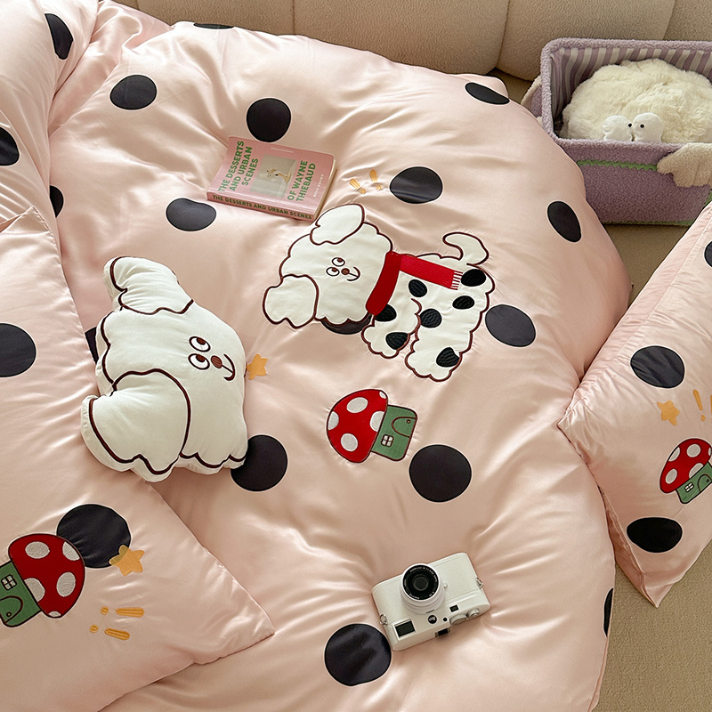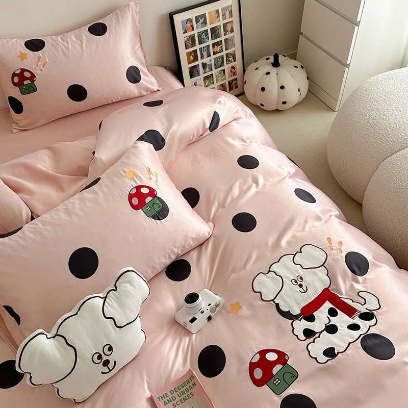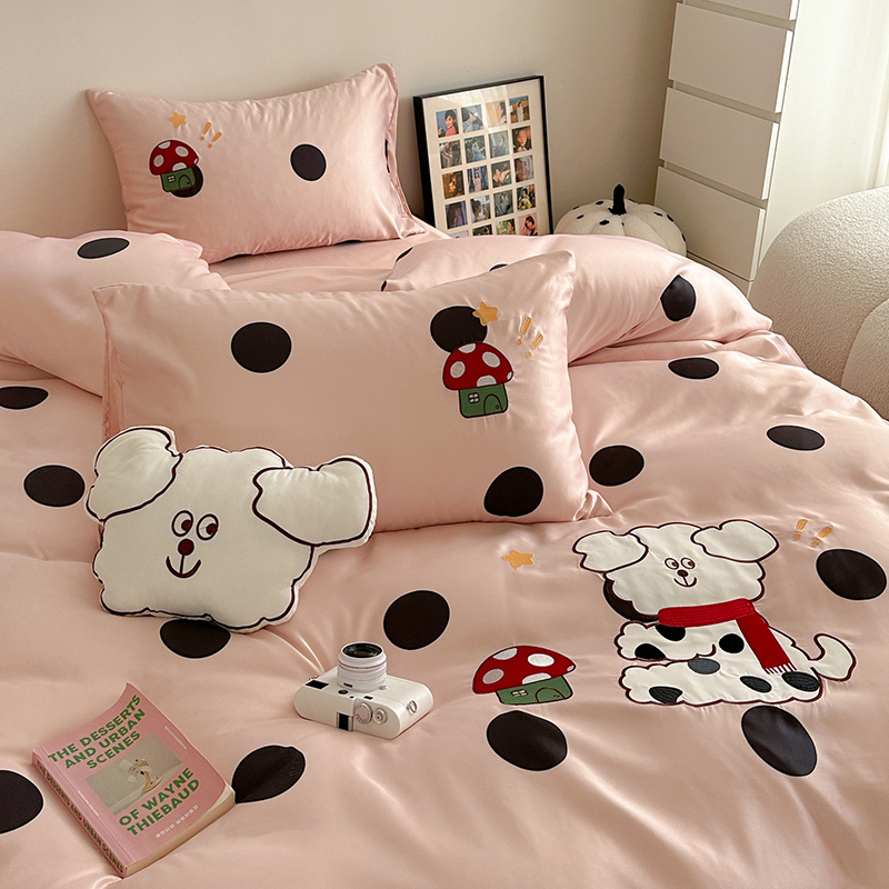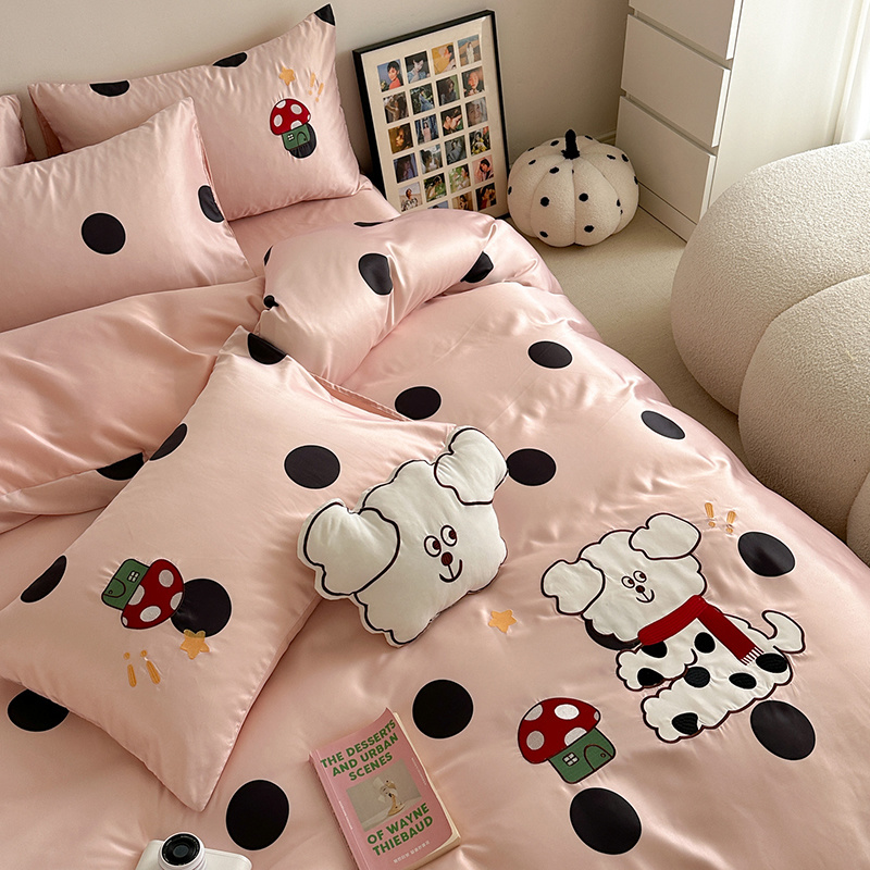 商品名称:优悦2024新款冰丝卡通贴布绣四件套 围巾狗-粉