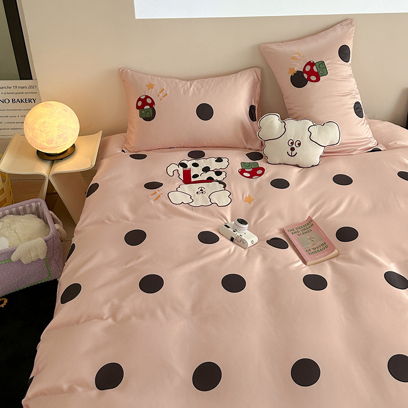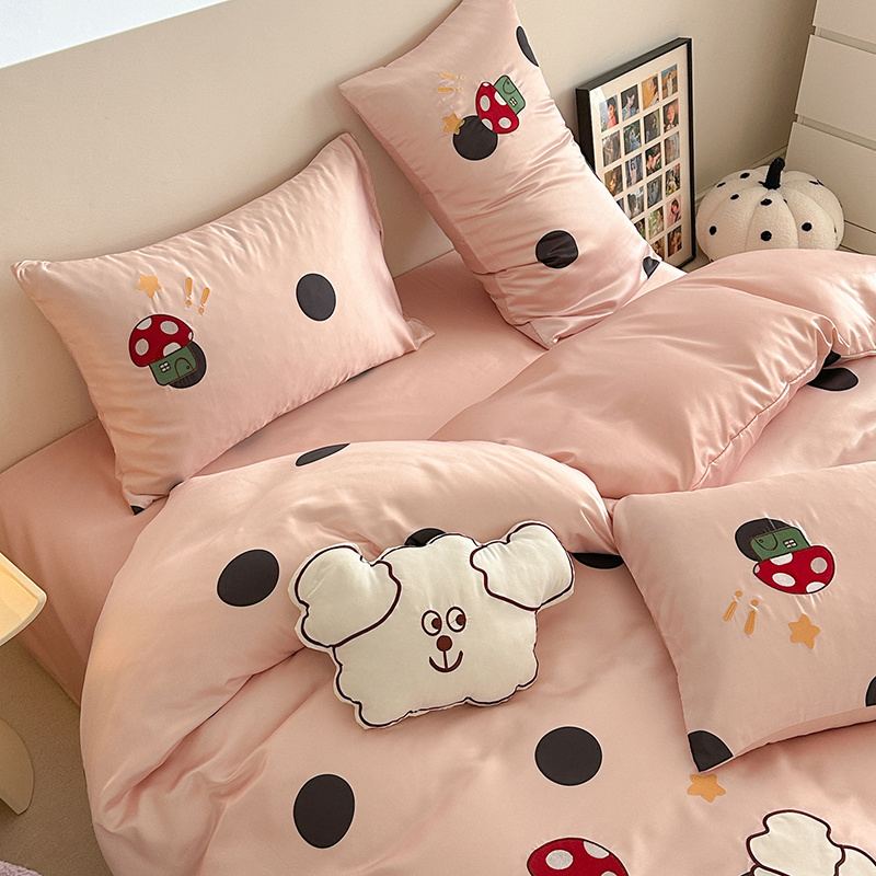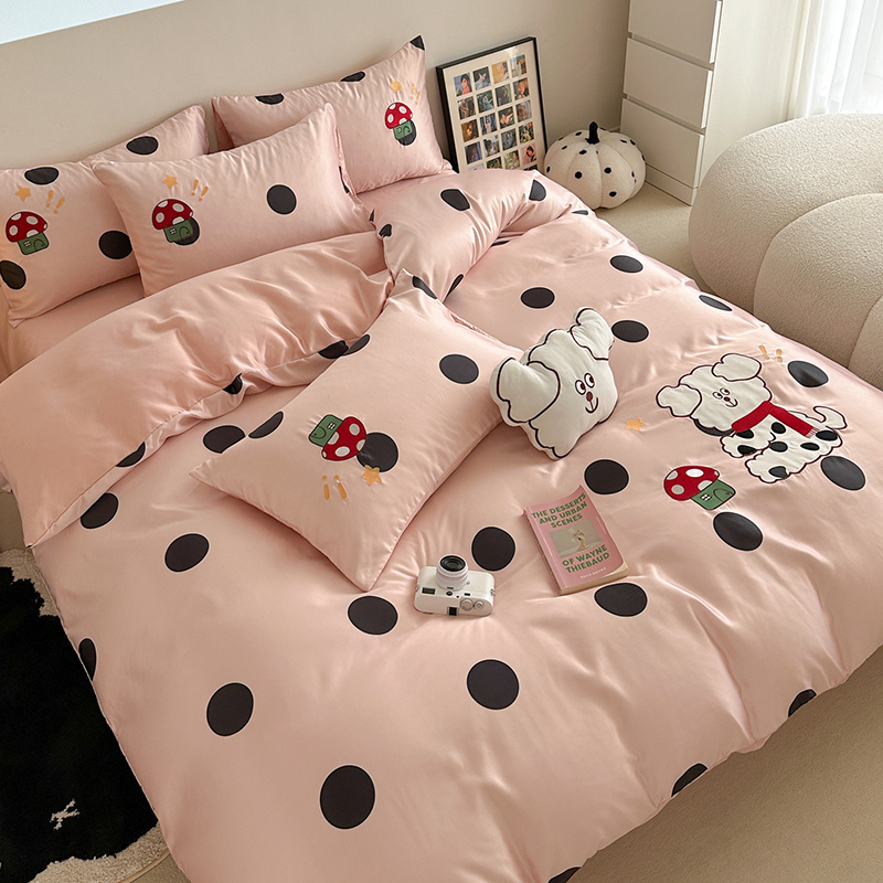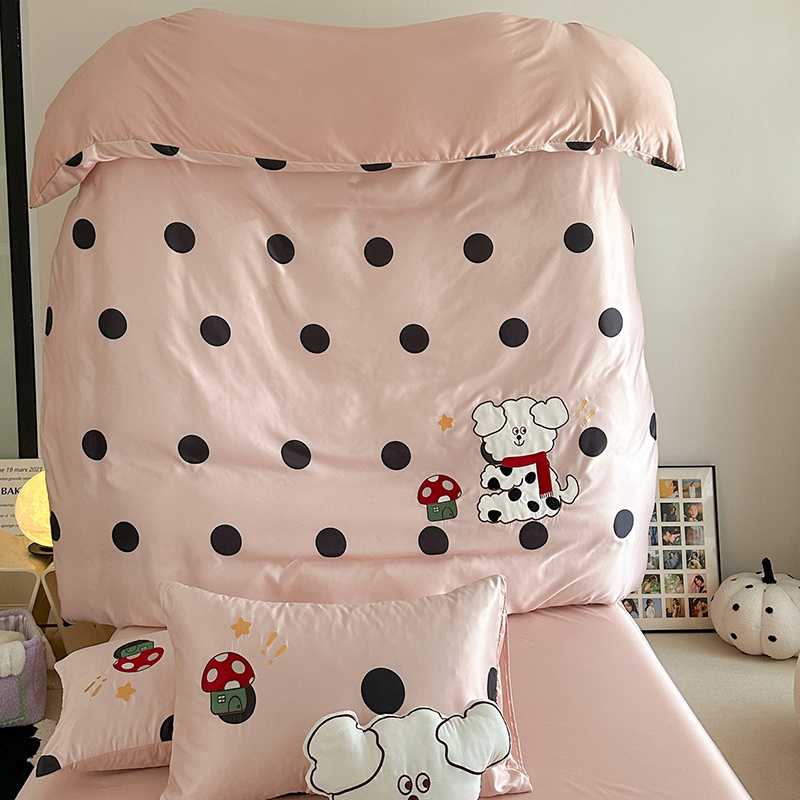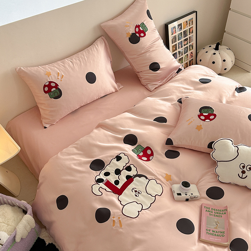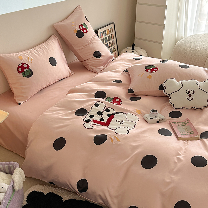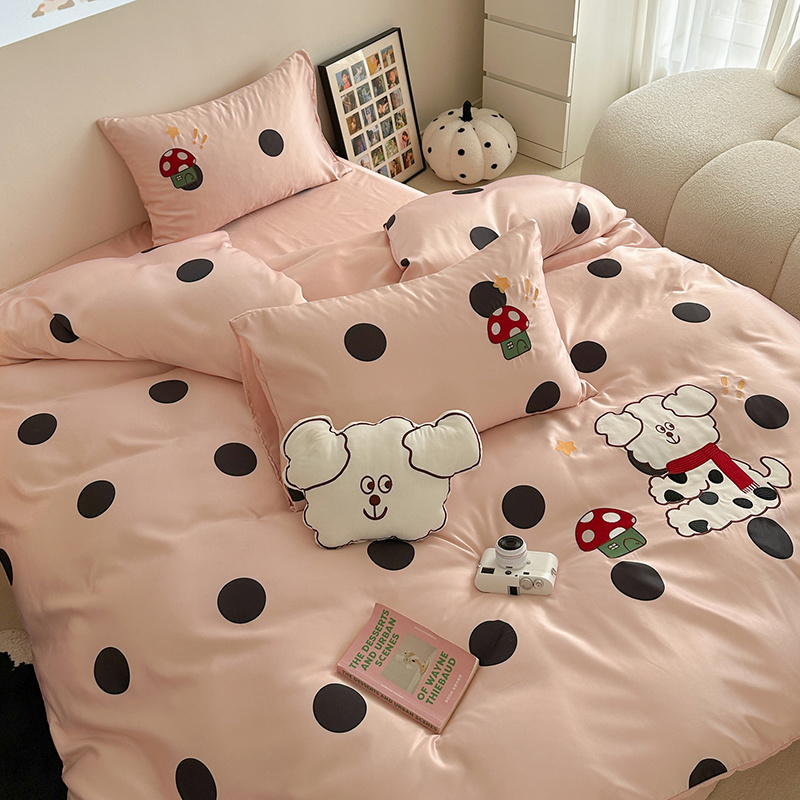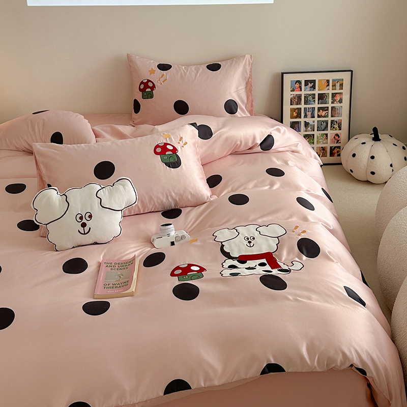 商品名称:优悦2024新款冰丝卡通贴布绣四件套 围巾狗-粉