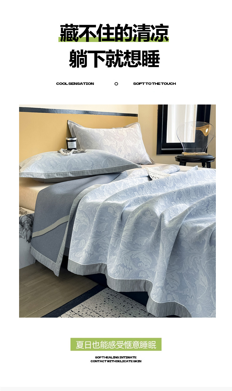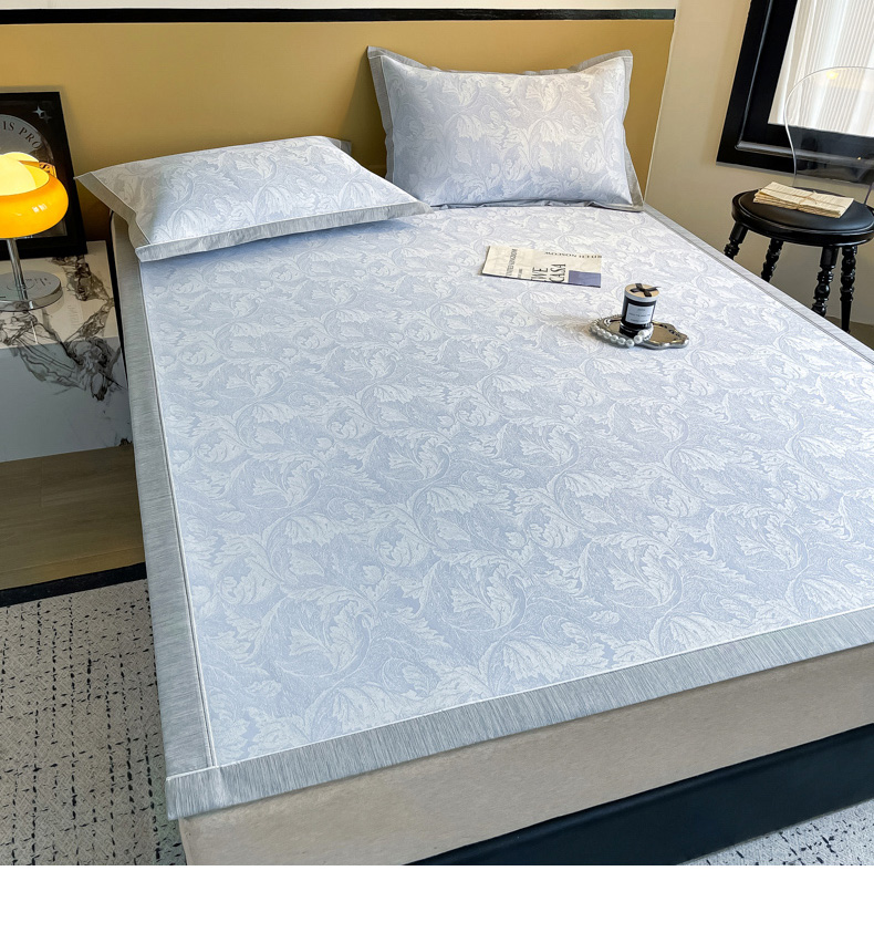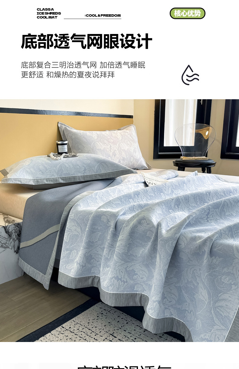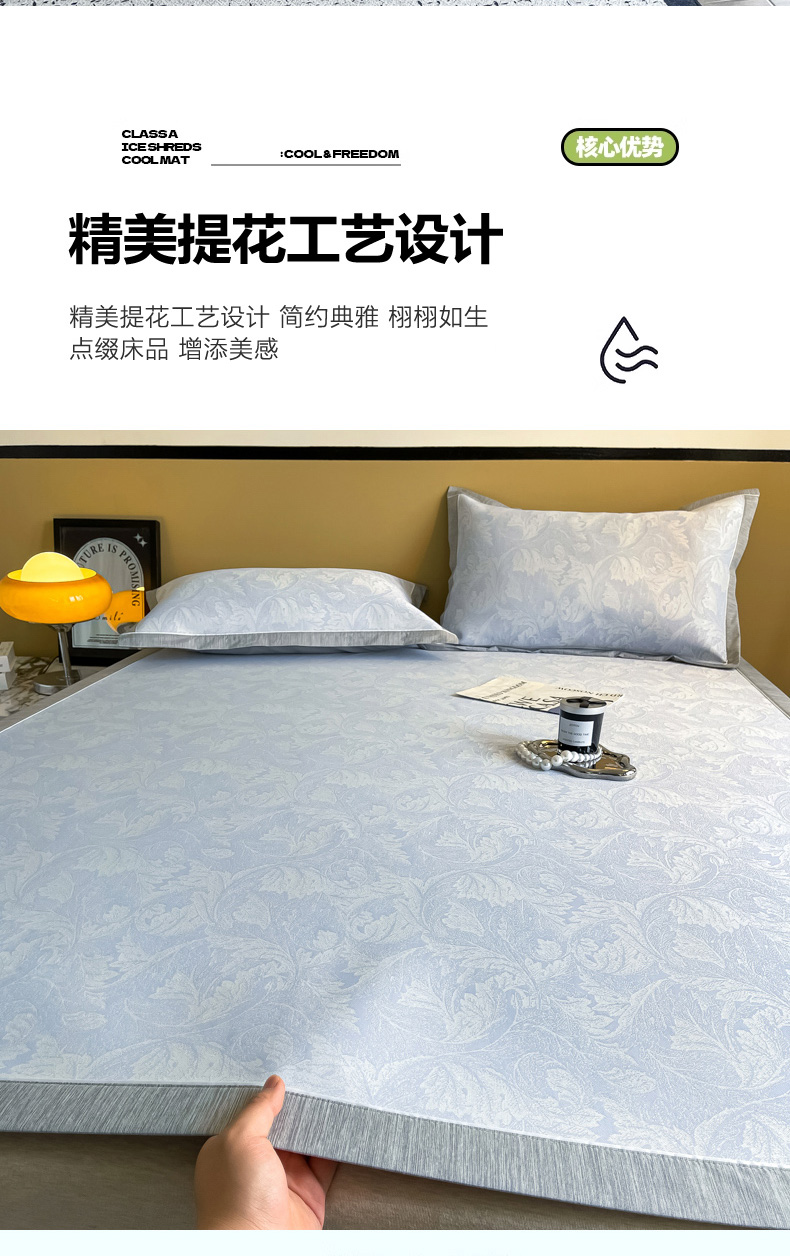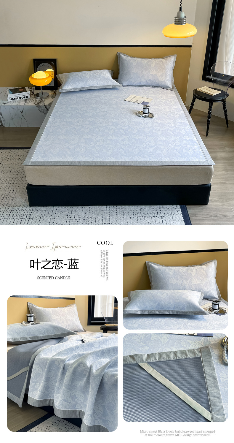 商品名称:倾慕 2024新款提花凉感凉席 床席款叶之恋-蓝