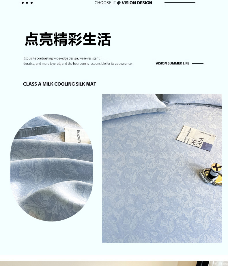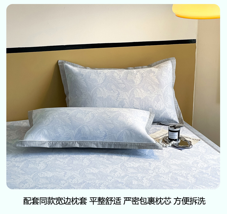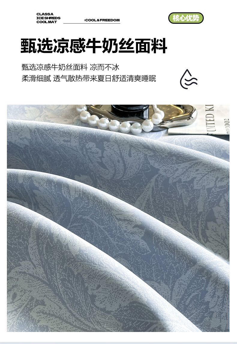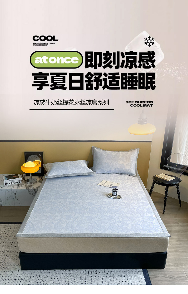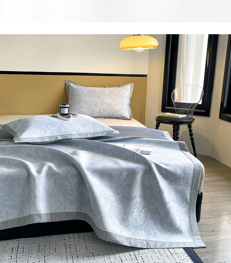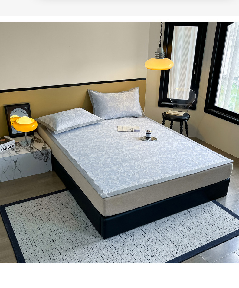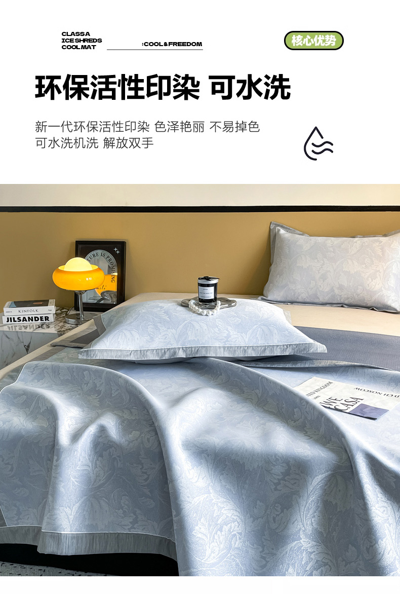 商品名称:倾慕 2024新款提花凉感凉席 床席款叶之恋-蓝