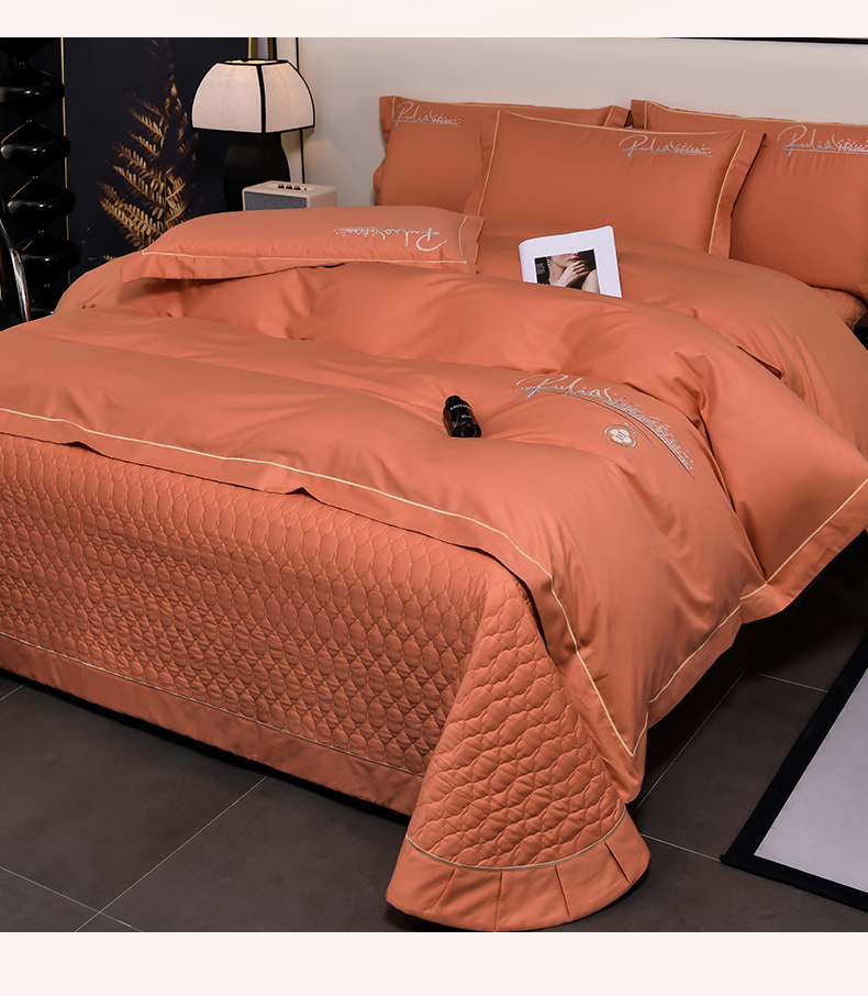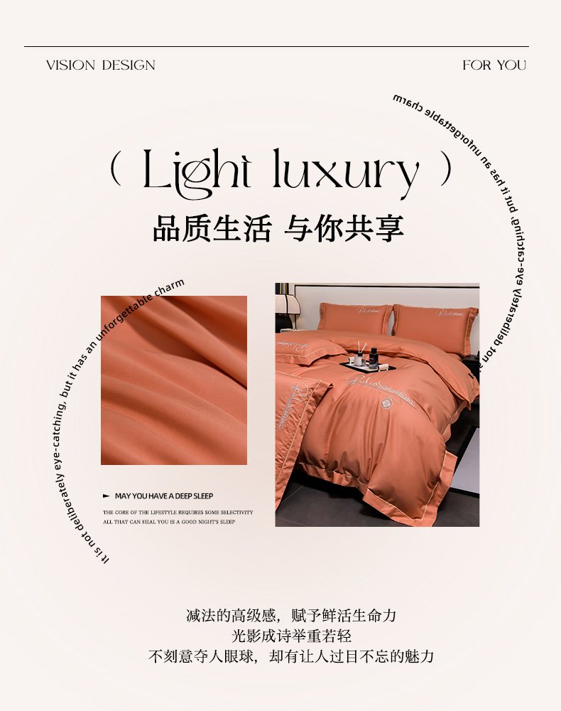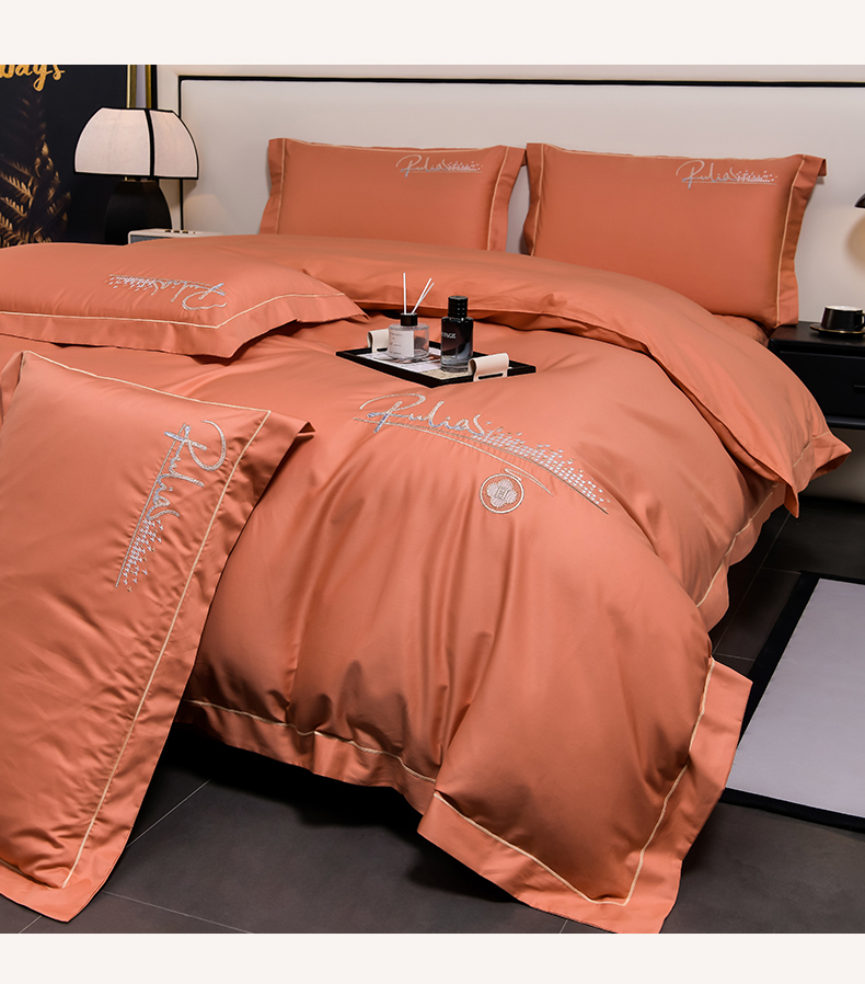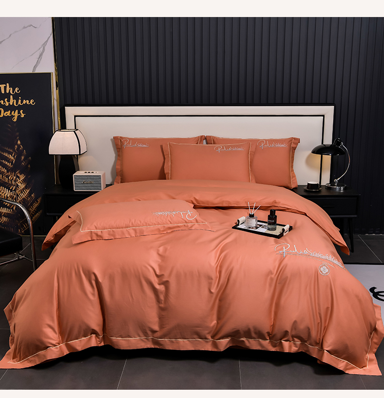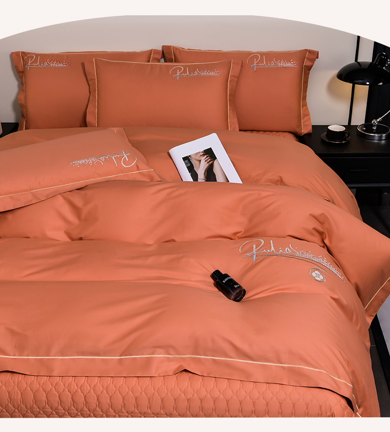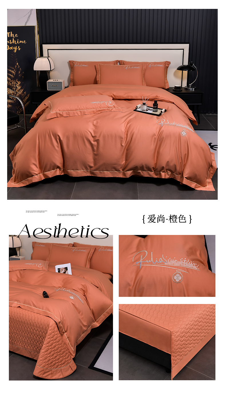 商品名称:小时代家纺 2024新款加密全棉轻奢床盖四件套 爱尚-橙色