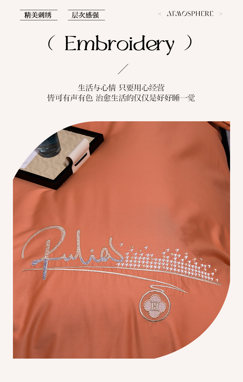 (总)小时代家纺 2025全棉活性喷气简约轻奢刺绣夹棉床盖款四件套-雅韵,雅韵-橙色,雅韵-灰兰,雅韵-青绿,雅韵-香槟,雅韵-胭粉,雅韵-紫色