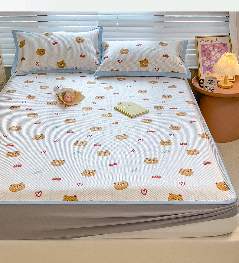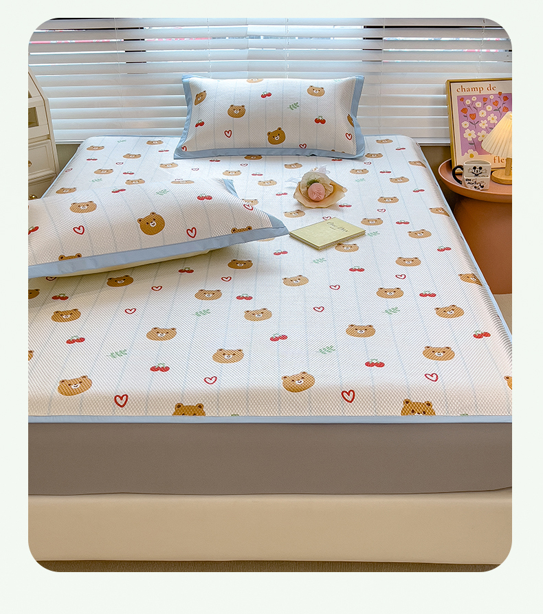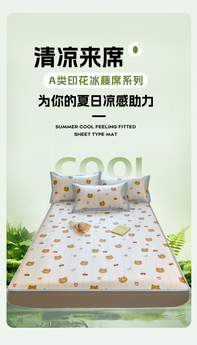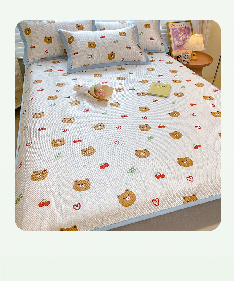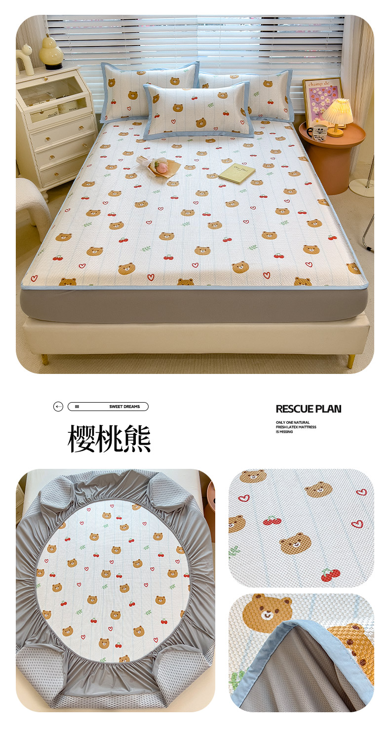 商品名称:布卢姆床垫 新款A类数码印花冰藤席夏凉席--床笠款 樱桃熊