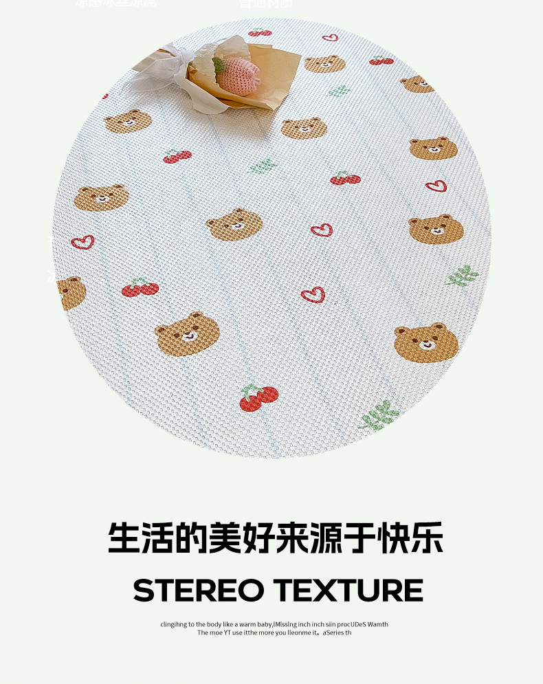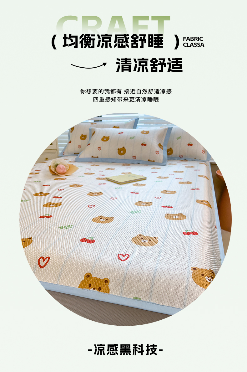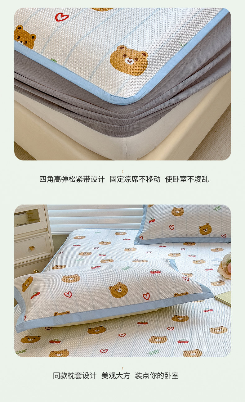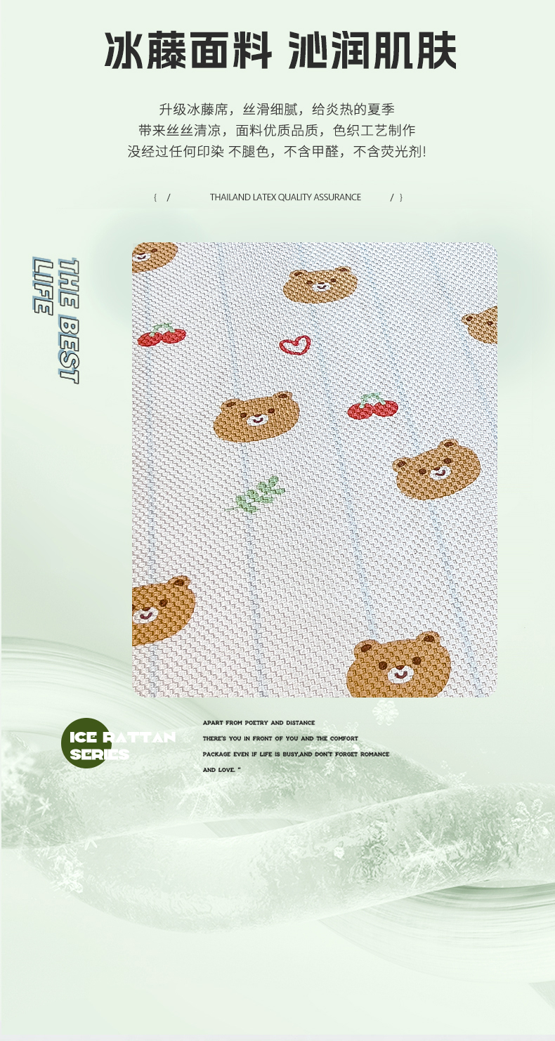 商品名称:布卢姆床垫 新款A类数码印花冰藤席夏凉席--床笠款 樱桃熊