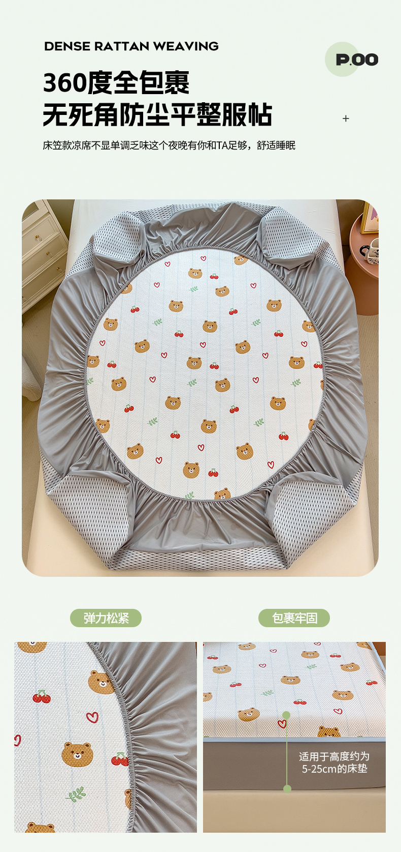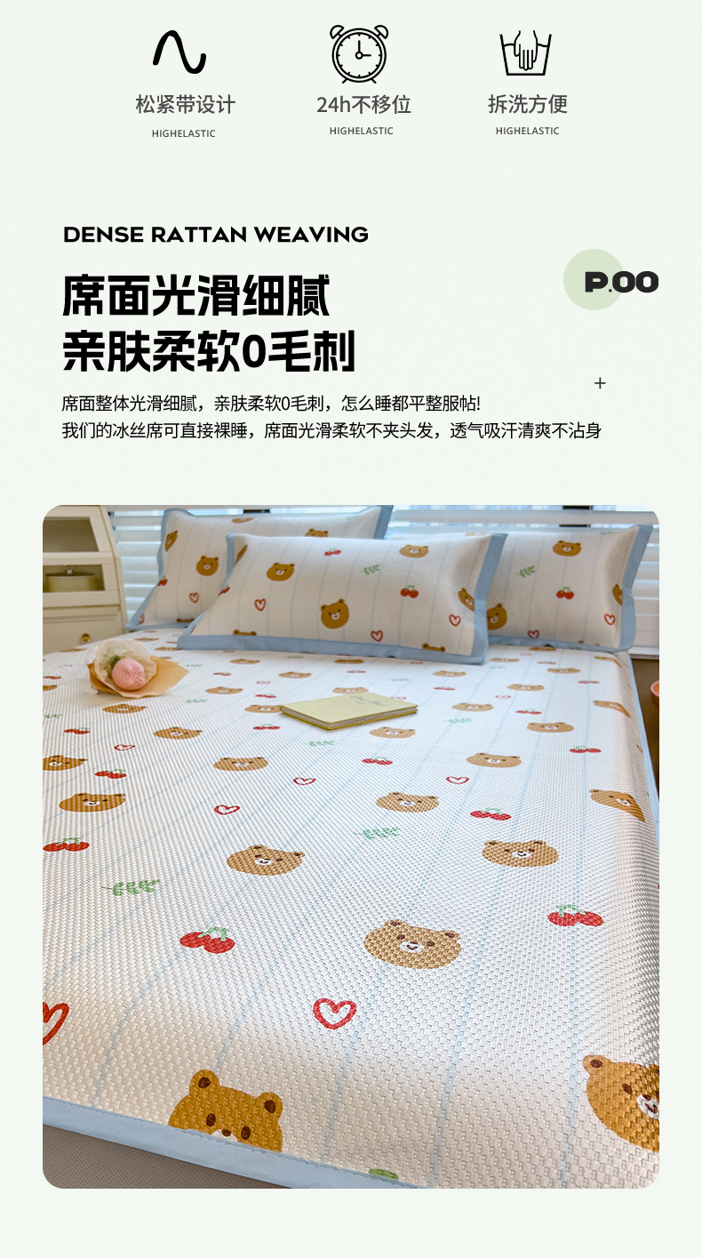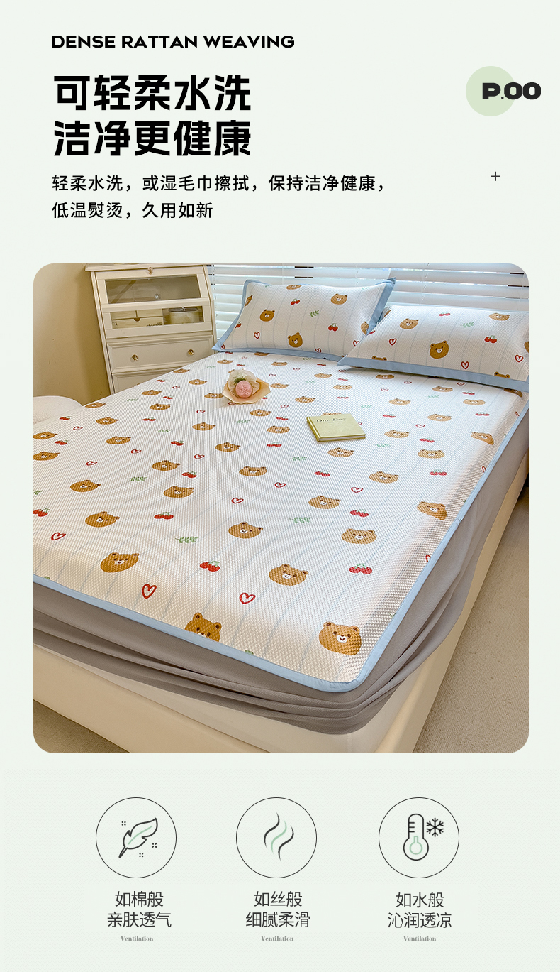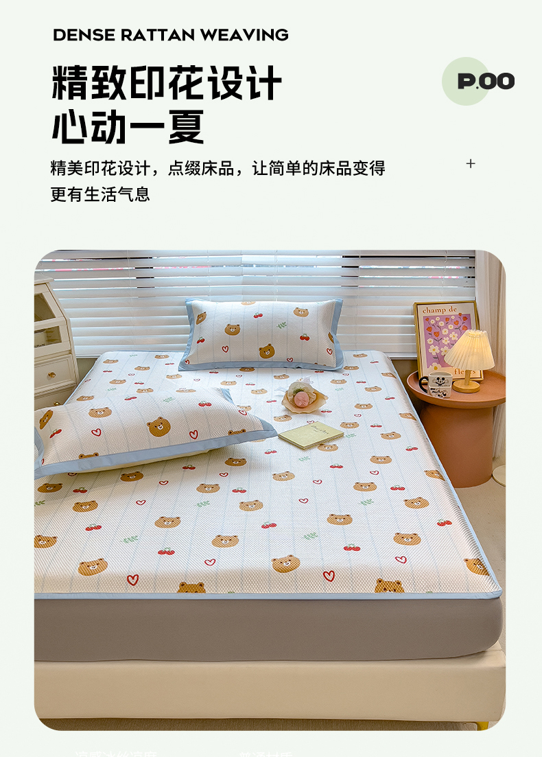 商品名称:布卢姆床垫 新款A类数码印花冰藤席夏凉席--床笠款 樱桃熊