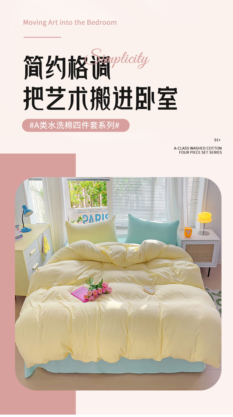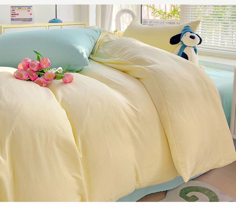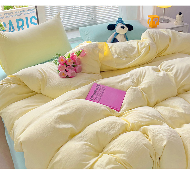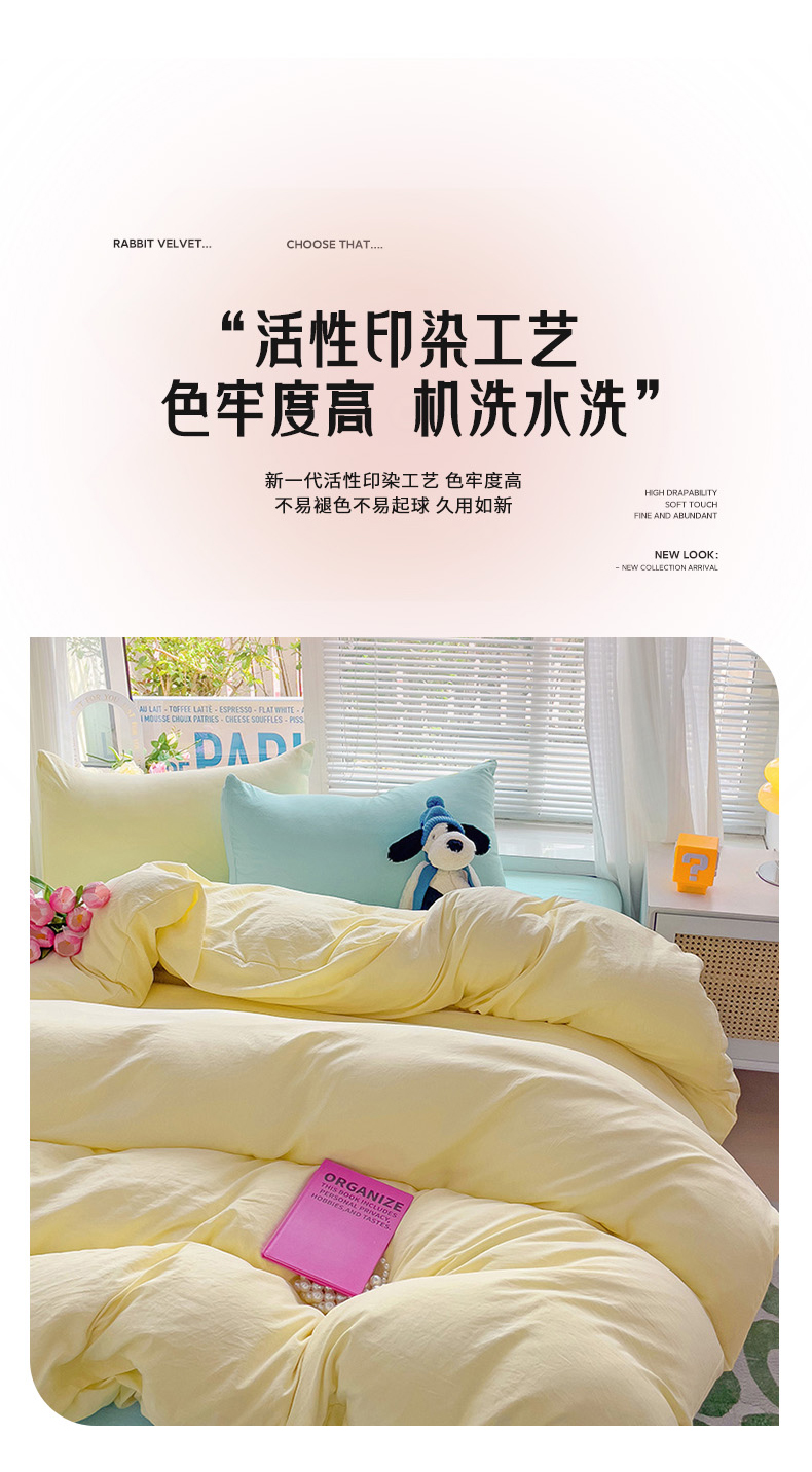 商品名称:森璐家纺 2024新款1水洗棉被套纯色被套单被套素色被套 混搭-黄水绿