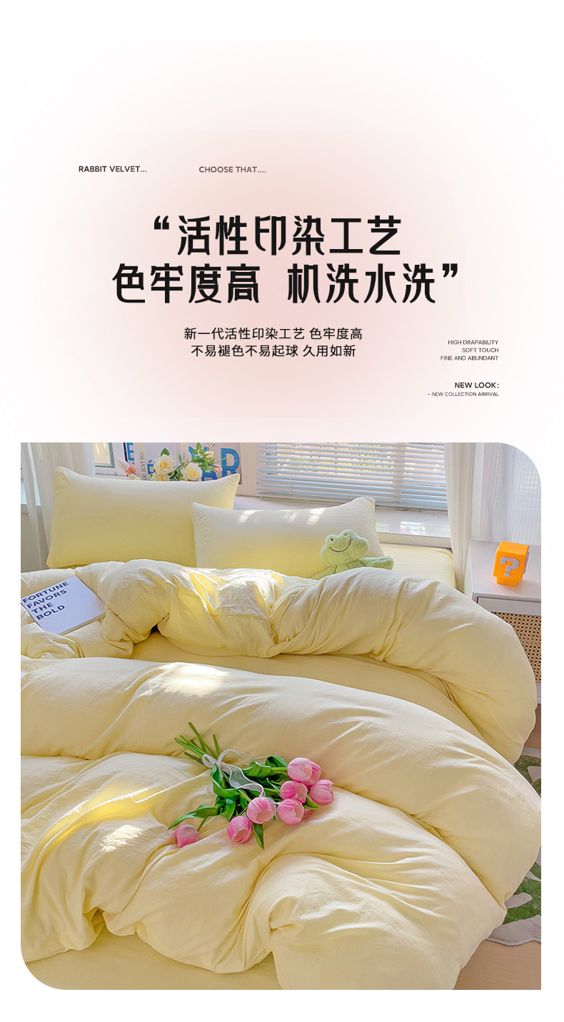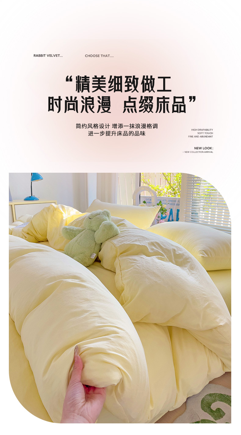 森璐家纺 2024新款1水洗棉被套纯色被套单被套素色被套 黄色
