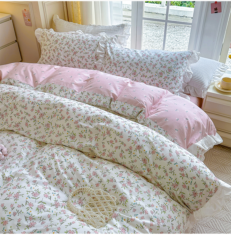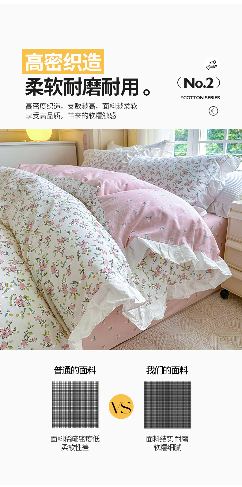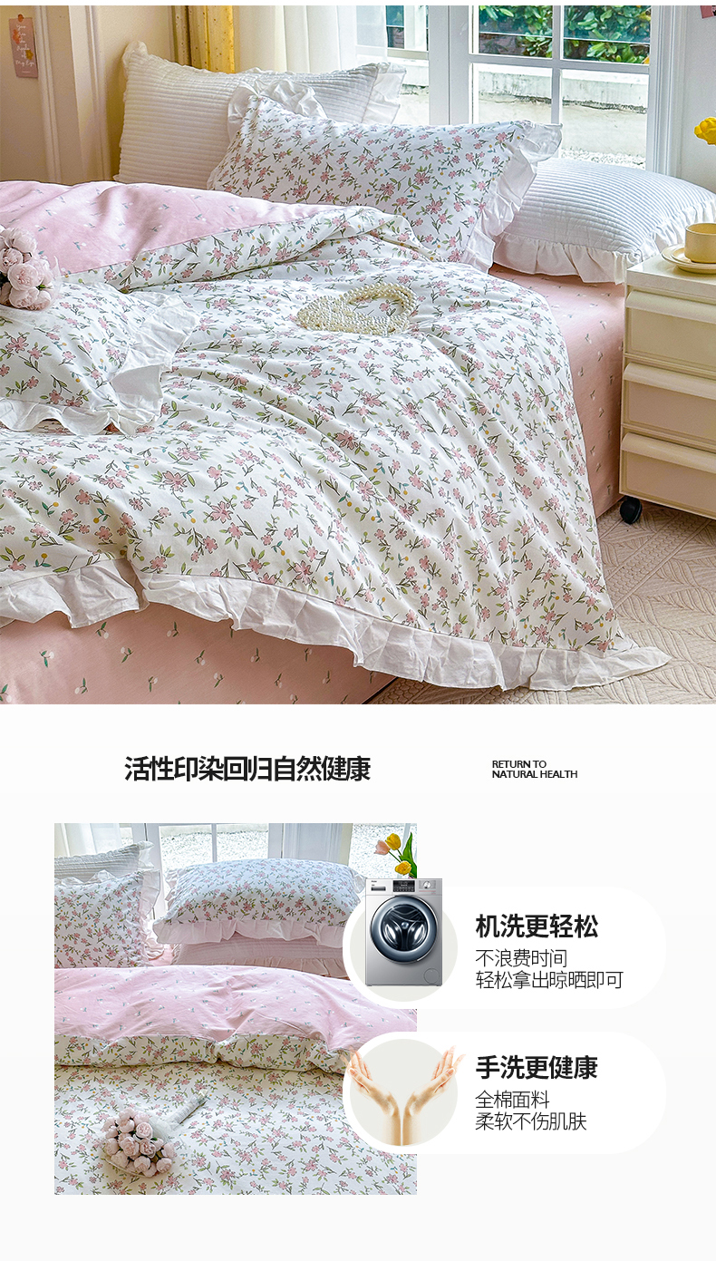 商品名称:清雅福 2024新款喷气全棉13372韩版花边款四件套 点点