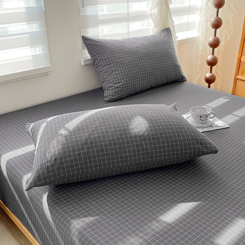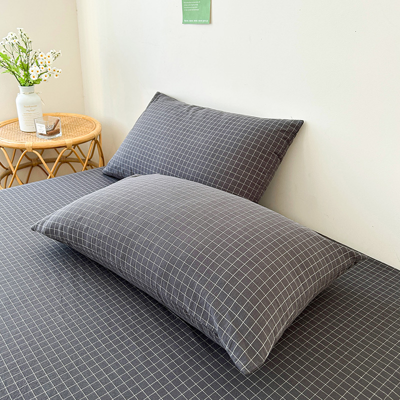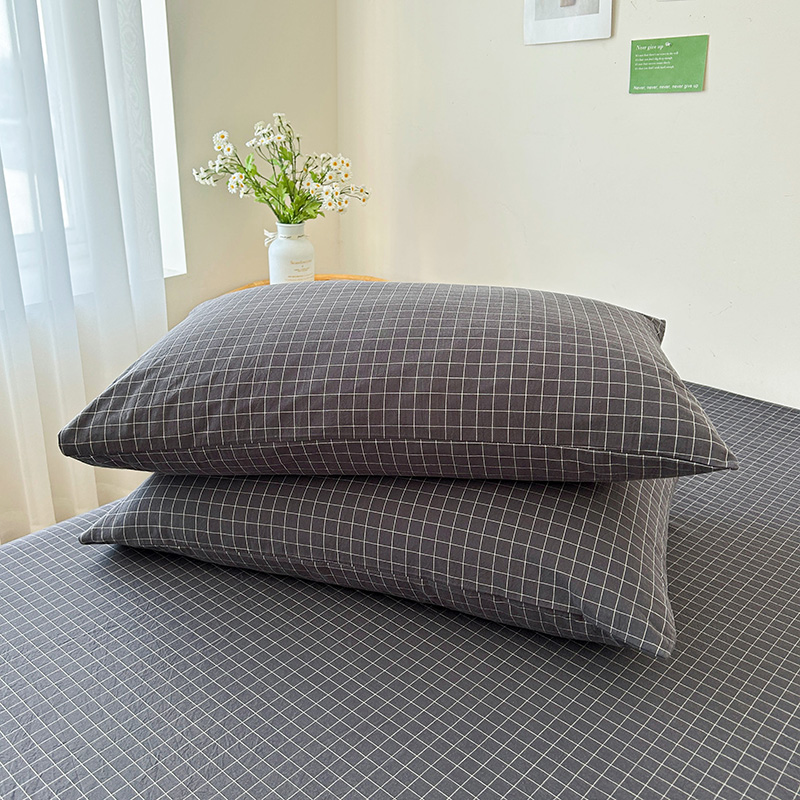 恋人优选 2024新款纯棉色织水洗枕套 小灰格