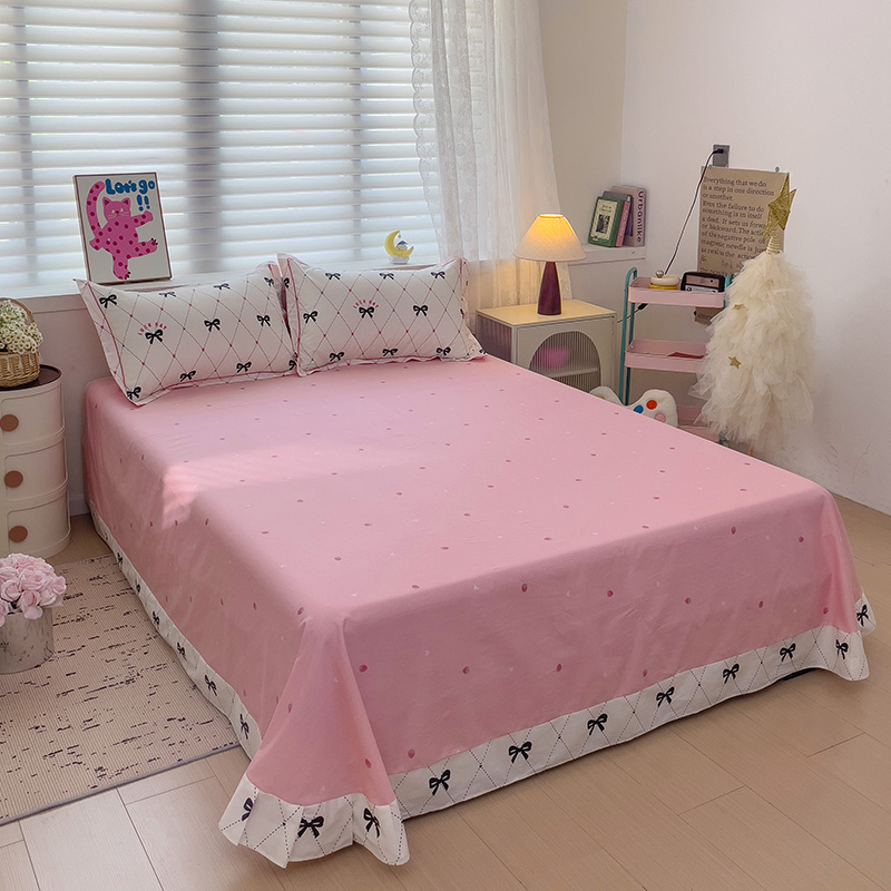 乐童 2024新款直播爆款13070纯棉印花吊边款一字绣四件套-第七波 爱心蝴蝶结