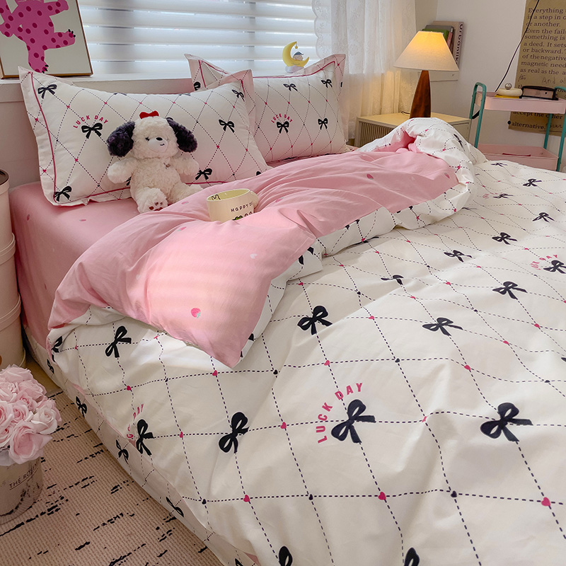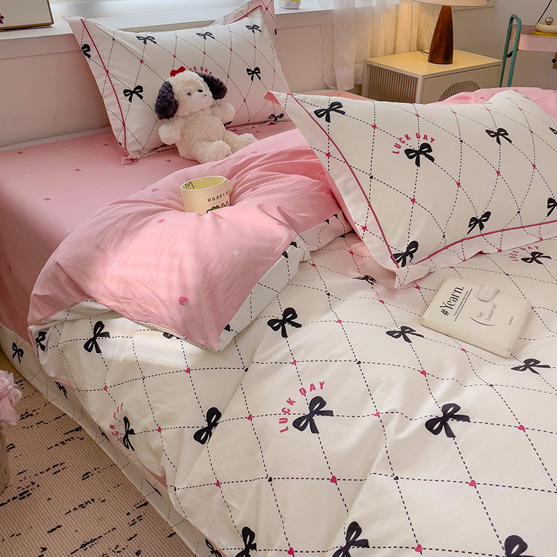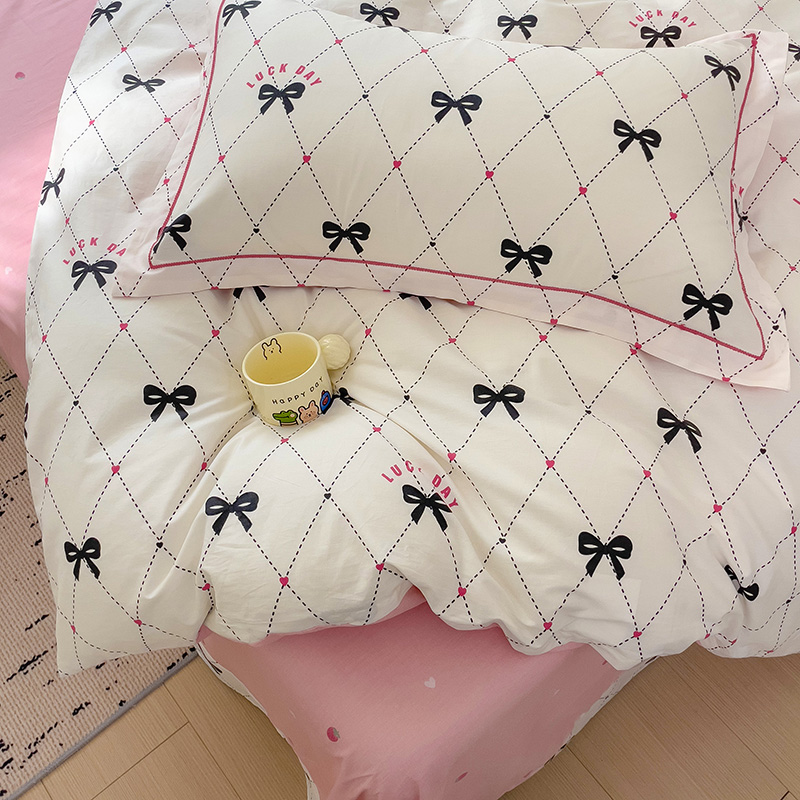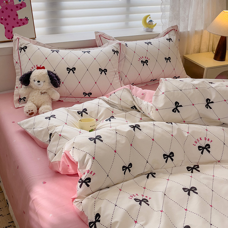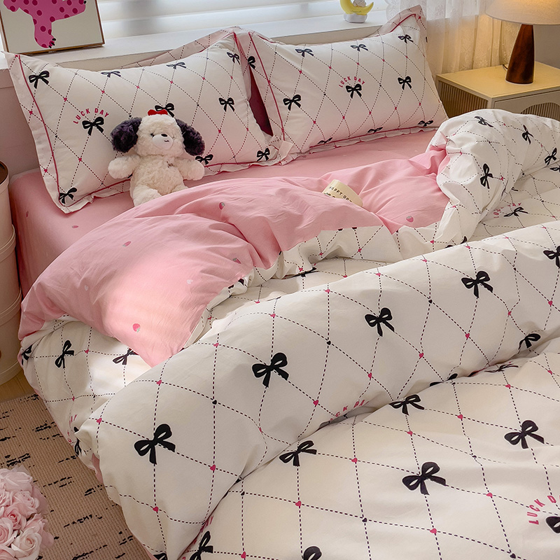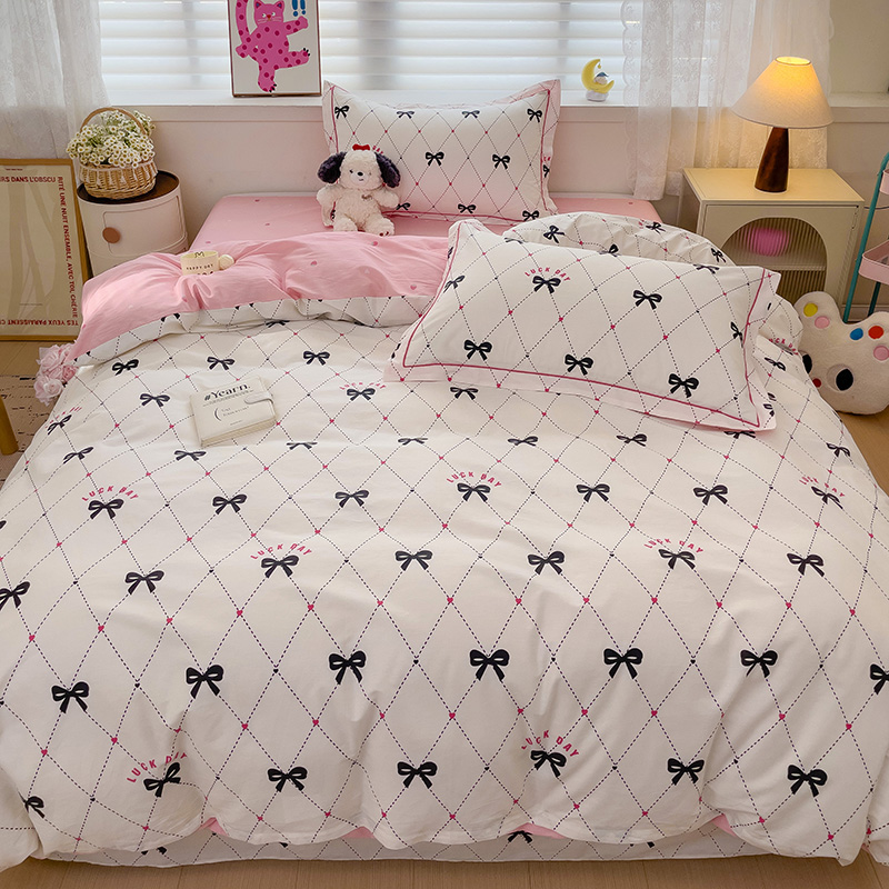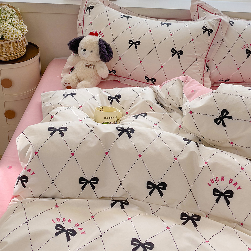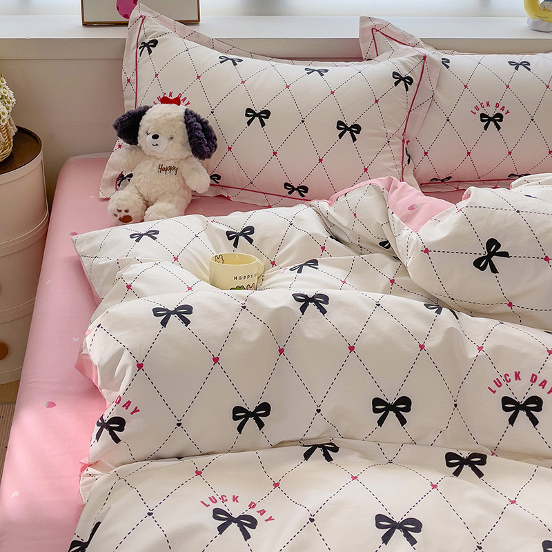 商品名称:乐童 2024新款直播爆款13070纯棉印花吊边款一字绣四件套-第七波 爱心蝴蝶结