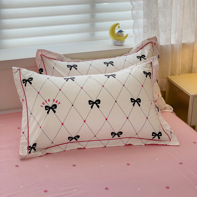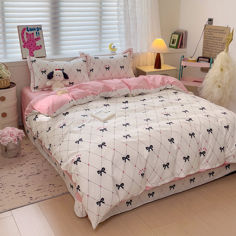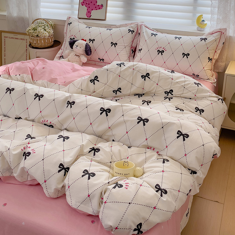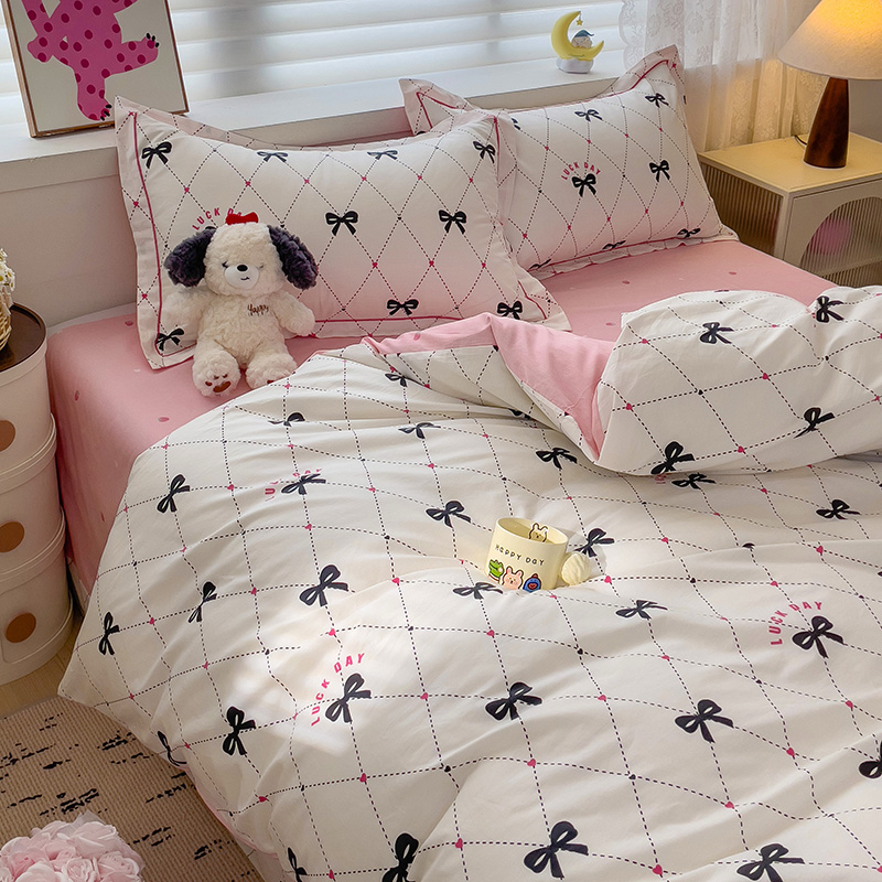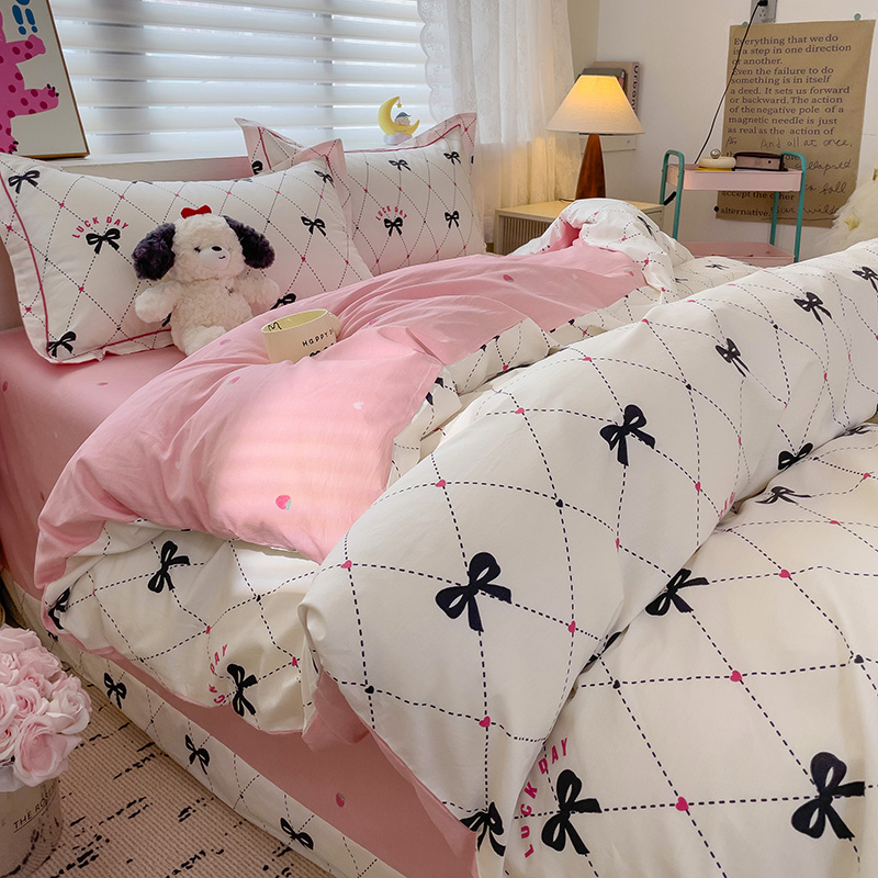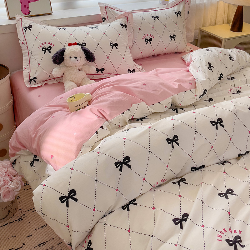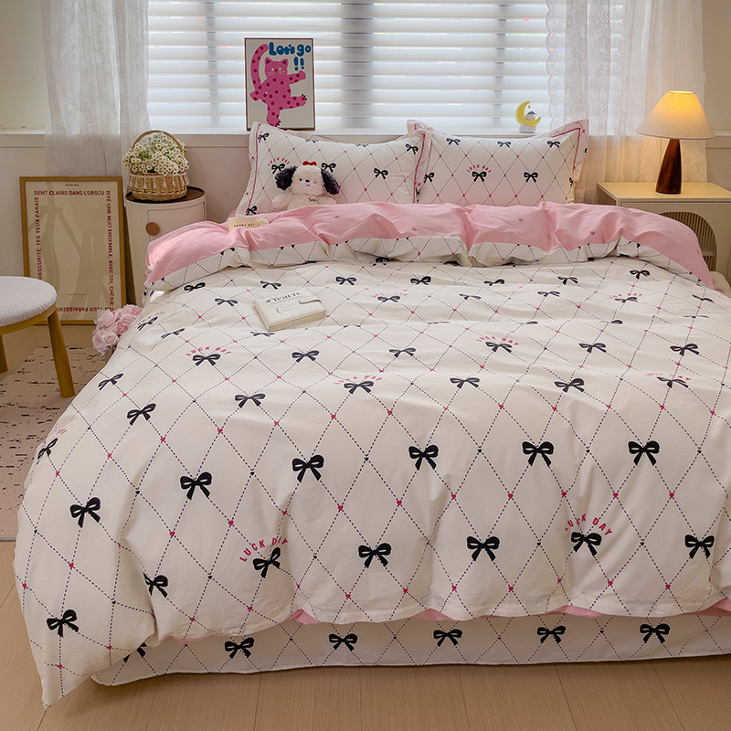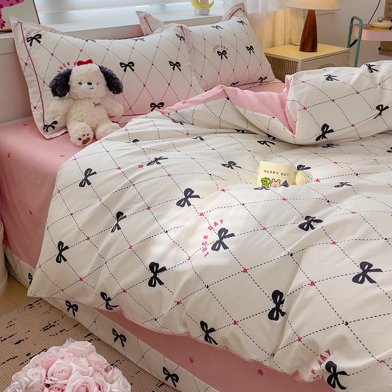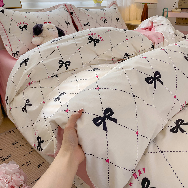 商品名称:乐童 2024新款直播爆款13070纯棉印花吊边款一字绣四件套-第七波 爱心蝴蝶结