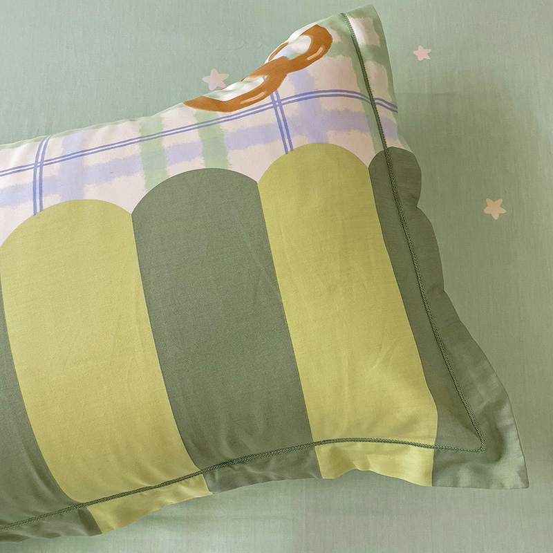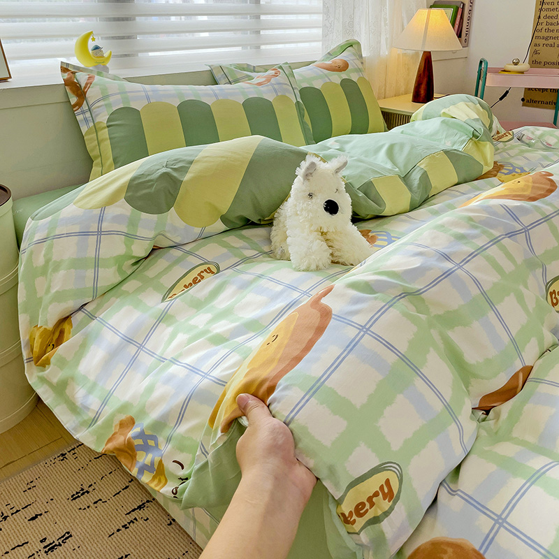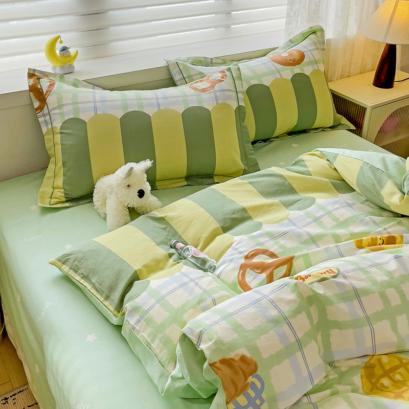乐童 2024新款直播爆款13070纯棉印花吊边款一字绣四件套-第七波 童话味蕾