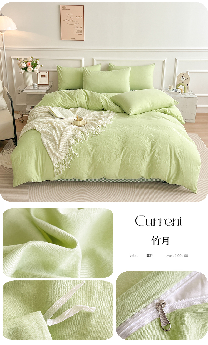 商品名称:多品家纺 2024新款日式无印风纯色双拼全棉单被套 竹月