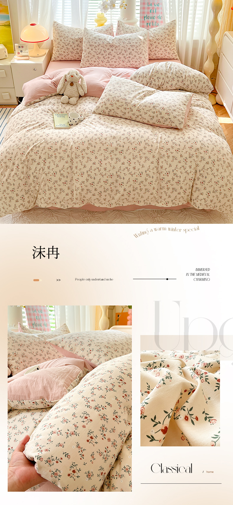 (总)多品家纺 2025新款云感双层纱高克重牛奶绒四件套,甜甜草莓,黛西紫,可爱新新,空谷兰香,蓝大格,猫猫小姐,木兰蝶,七里花香,十里春风,珍妮公主,紫大格