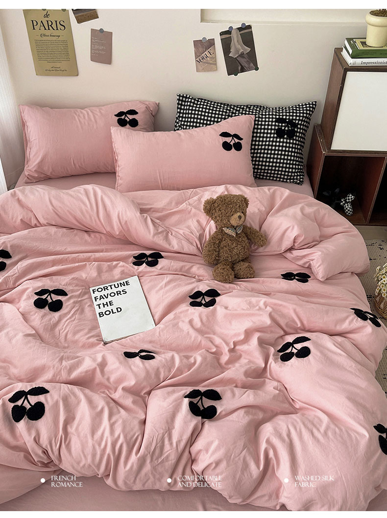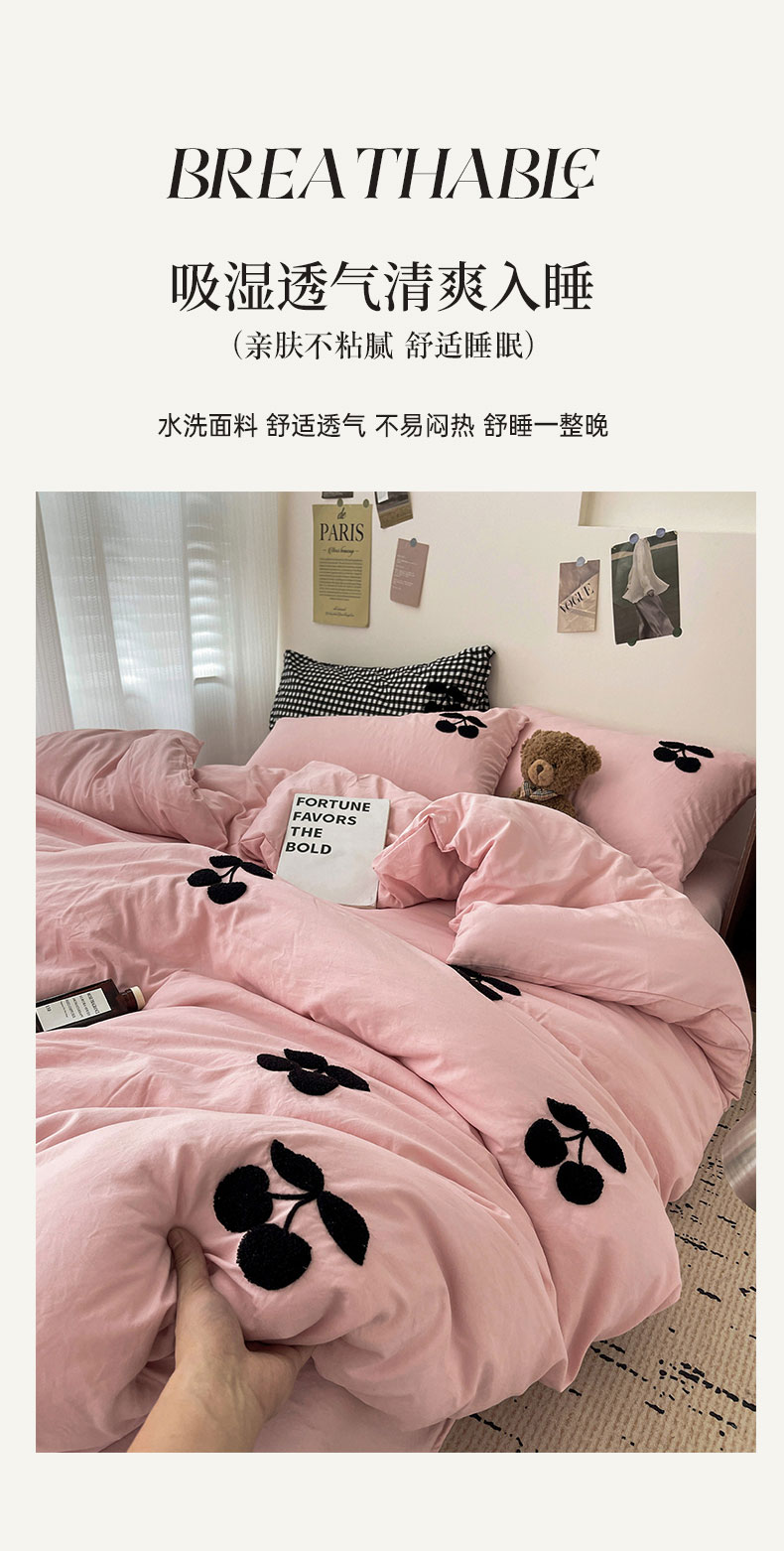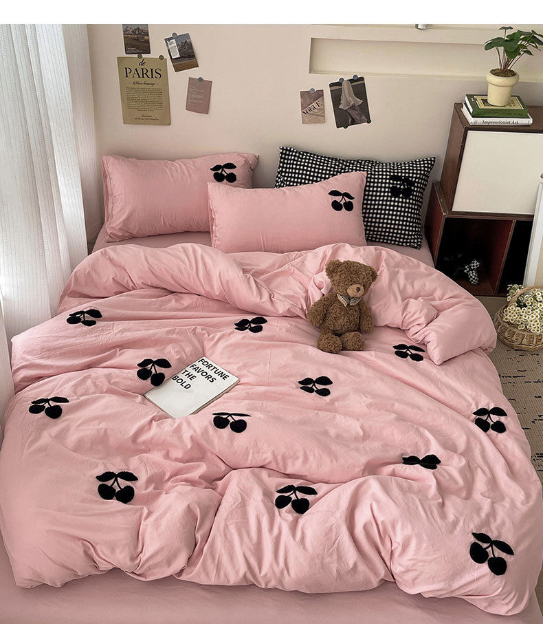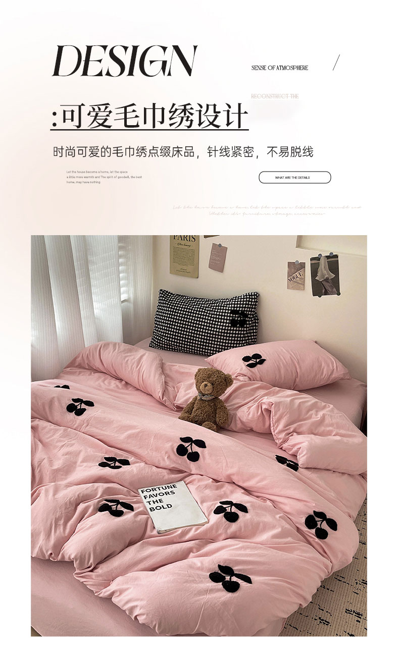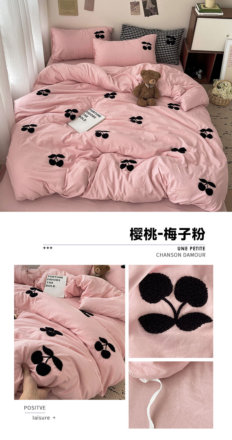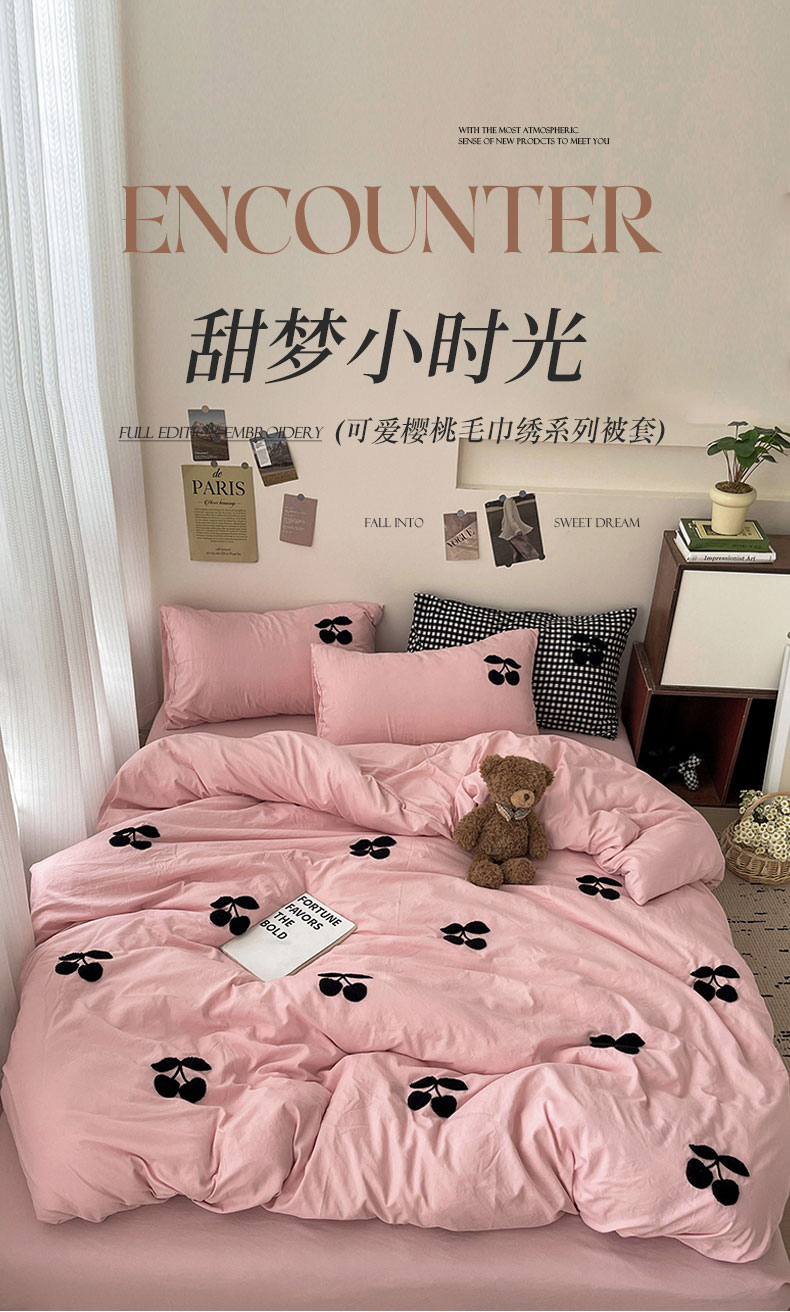 商品名称:尤米 2024新款可爱樱桃系列水洗棉毛巾绣单被套 樱桃-梅子粉