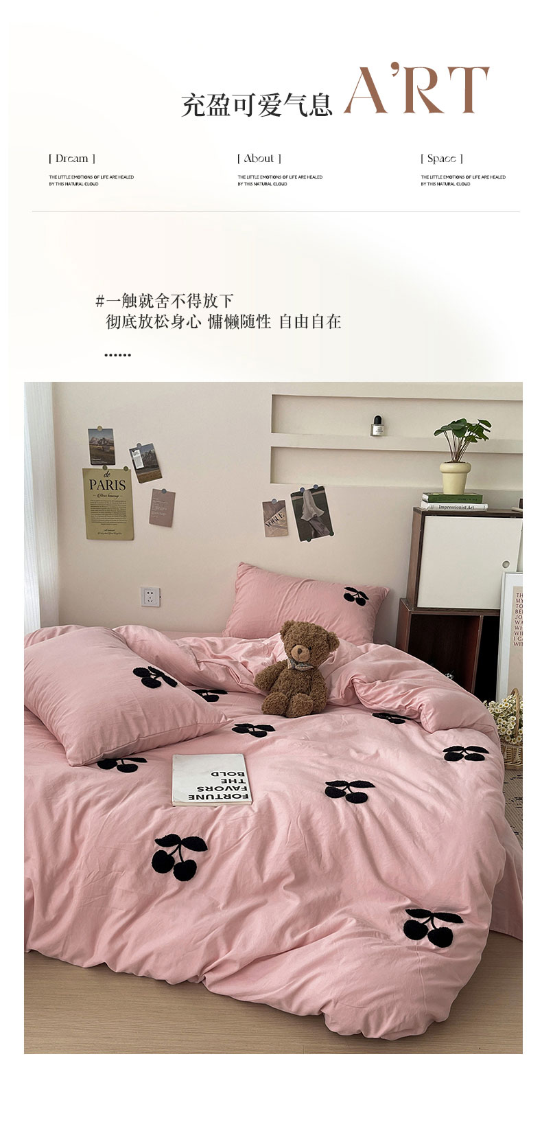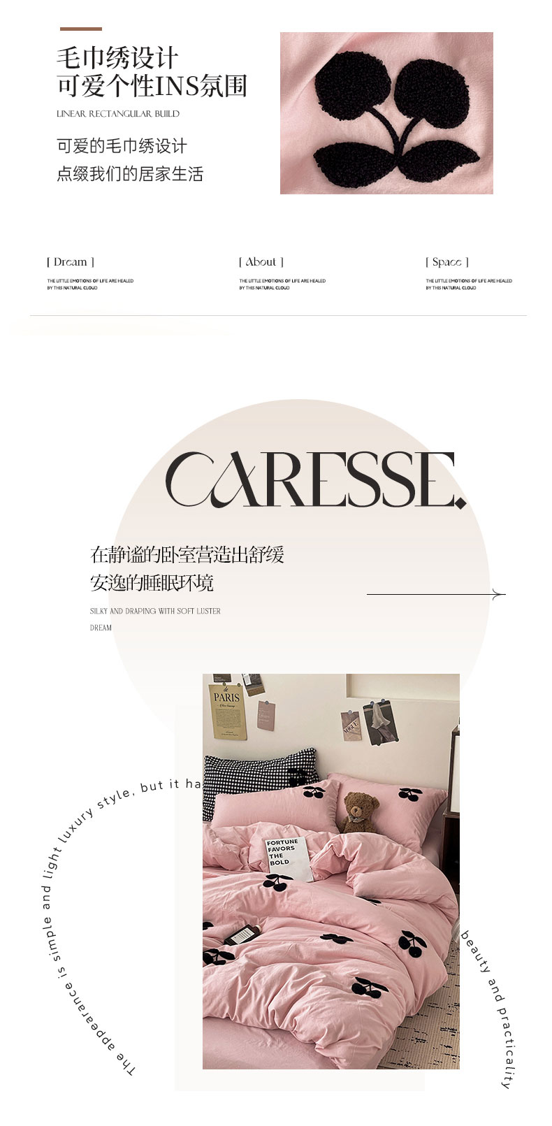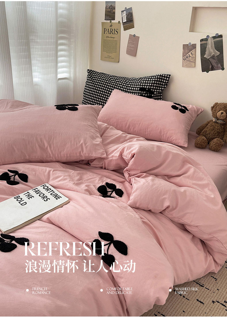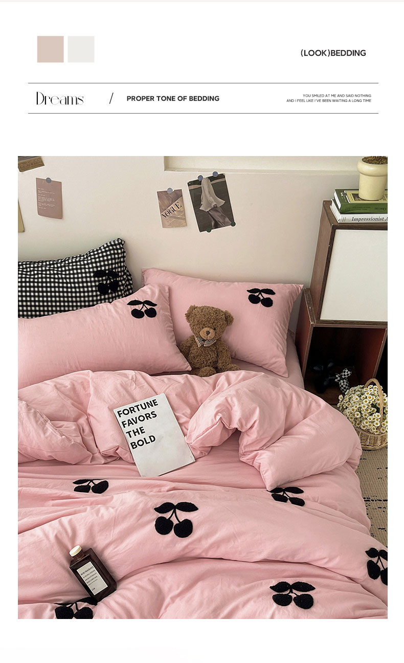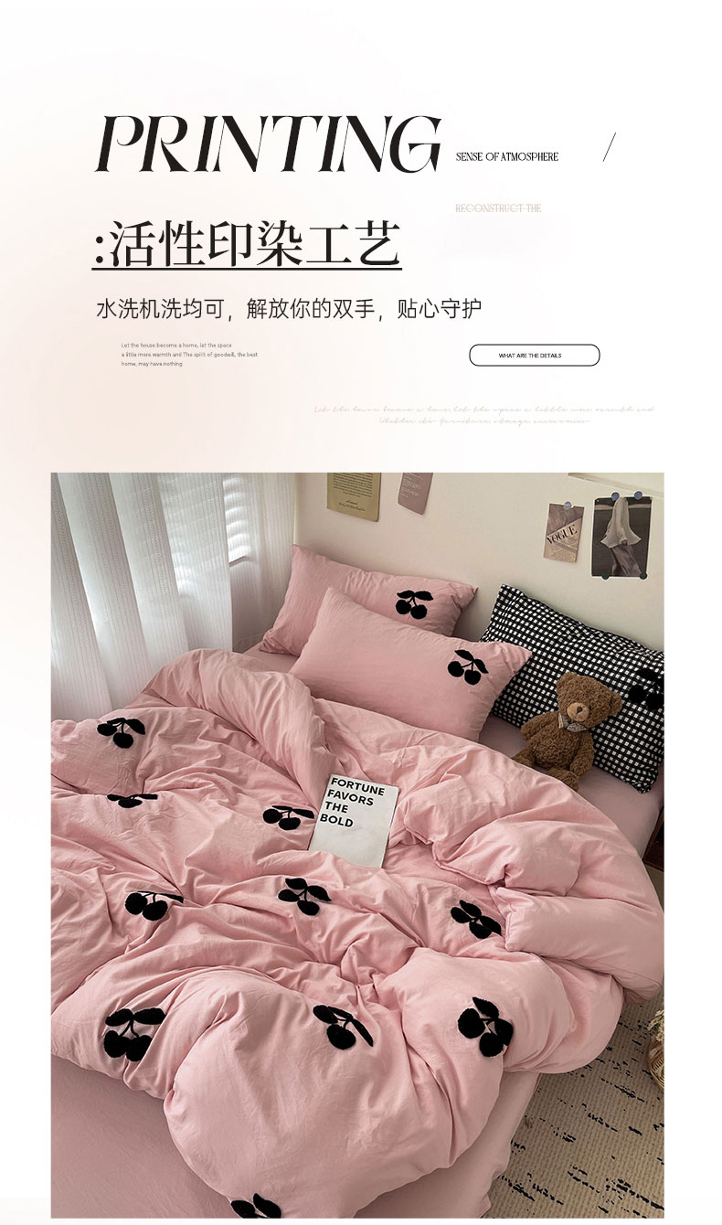 商品名称:尤米 2024新款可爱樱桃系列水洗棉毛巾绣单被套 樱桃-梅子粉