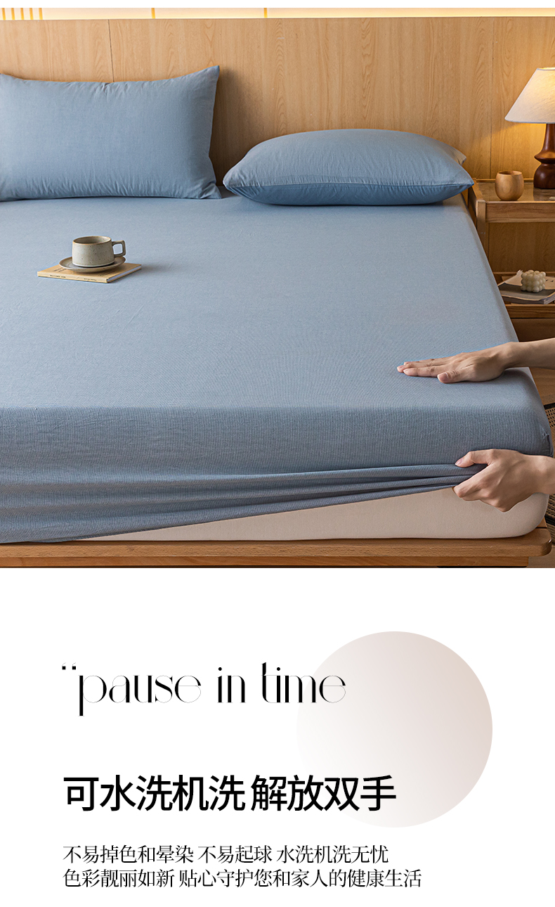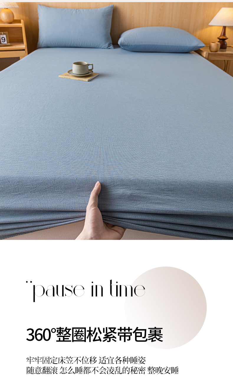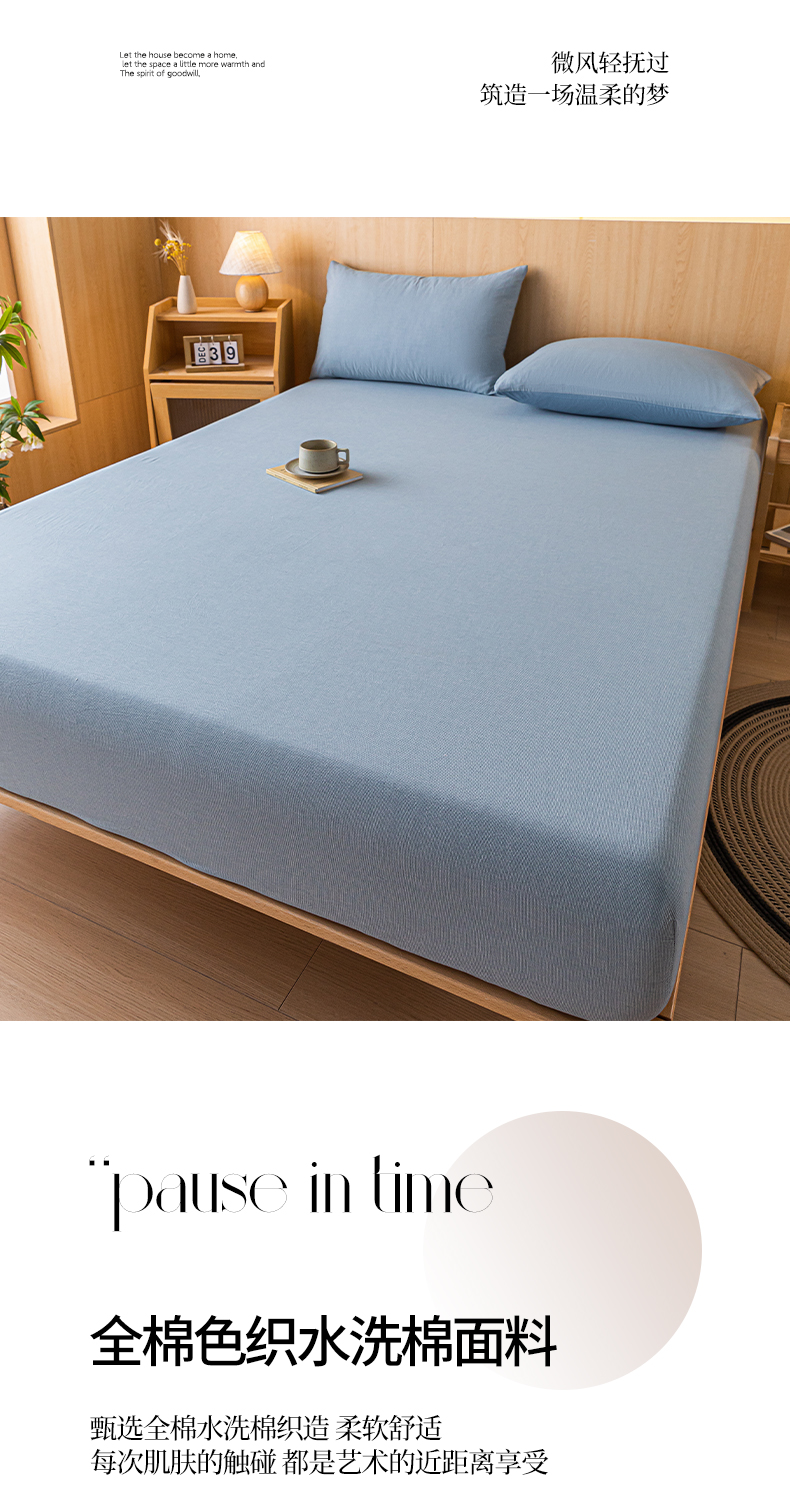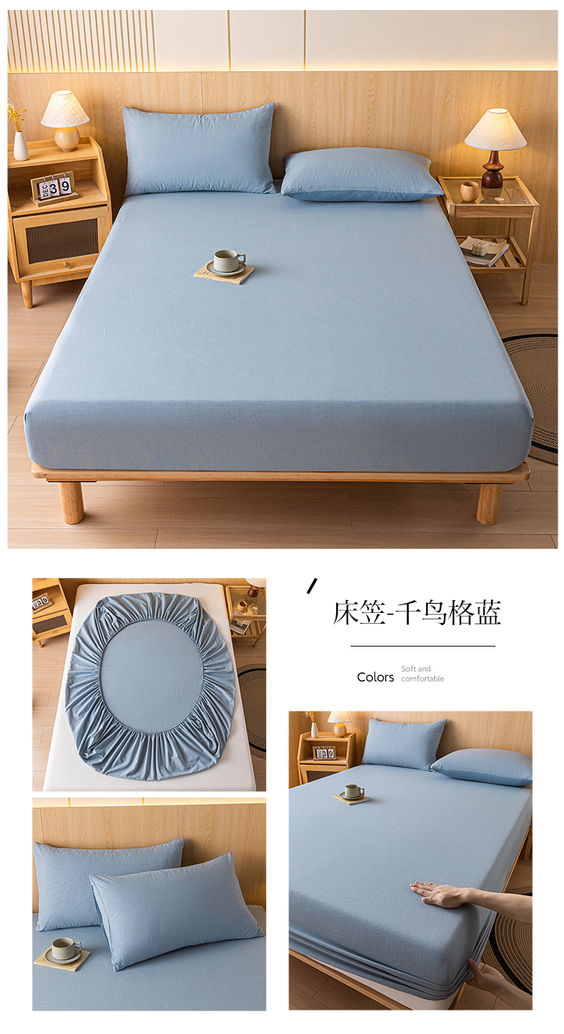 雅居纺家纺 2024新款全棉色织水洗棉床笠 床笠-千鸟格蓝