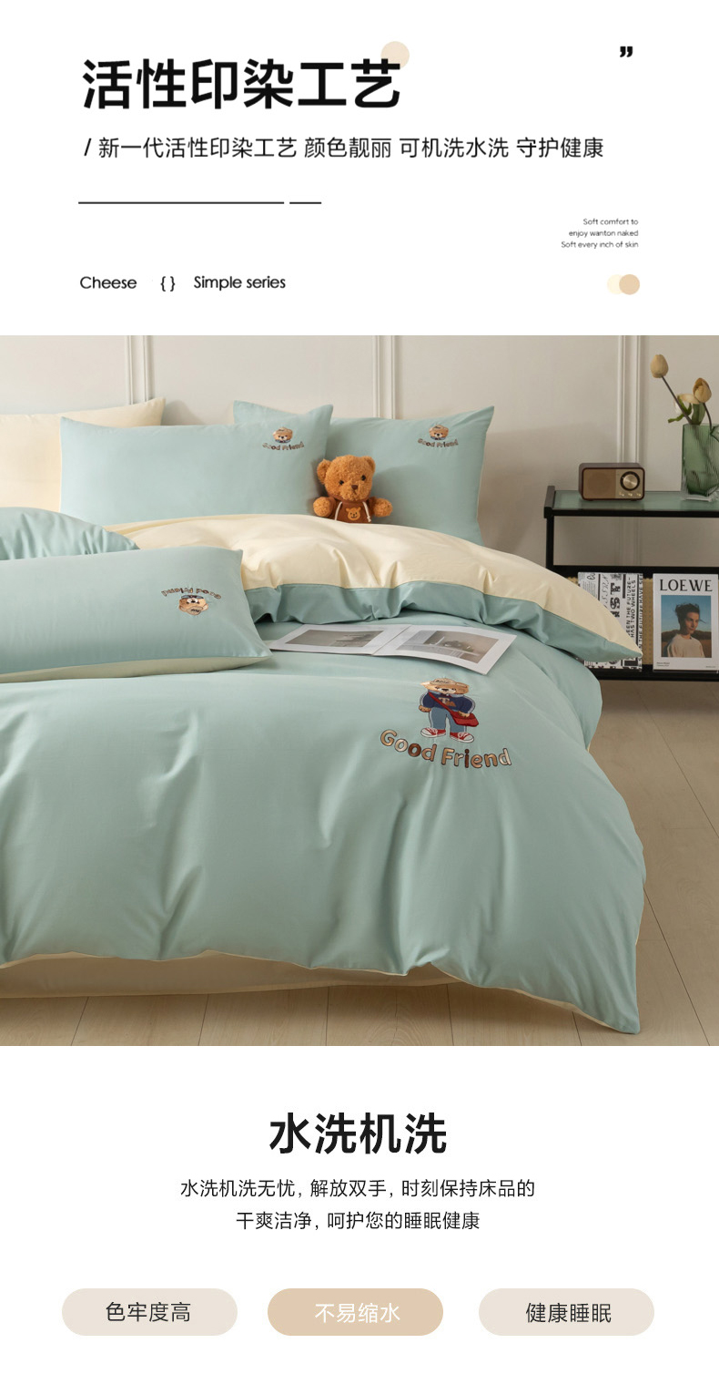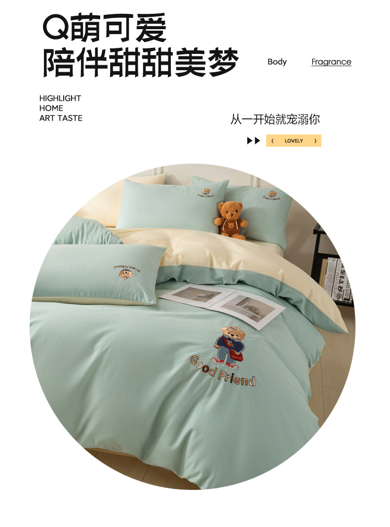 当前位置: 91家纺网 > 商品网购 > 床品套件 > 四件套 > 全棉活性四件套 > 万盛家纺 2025新款全棉喷气13372刺绣卡通四件套 fashion熊-浅蓝卡其