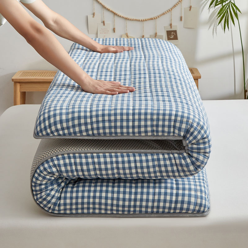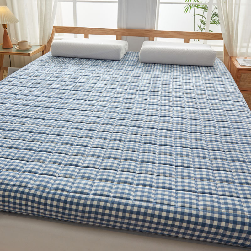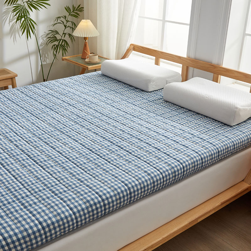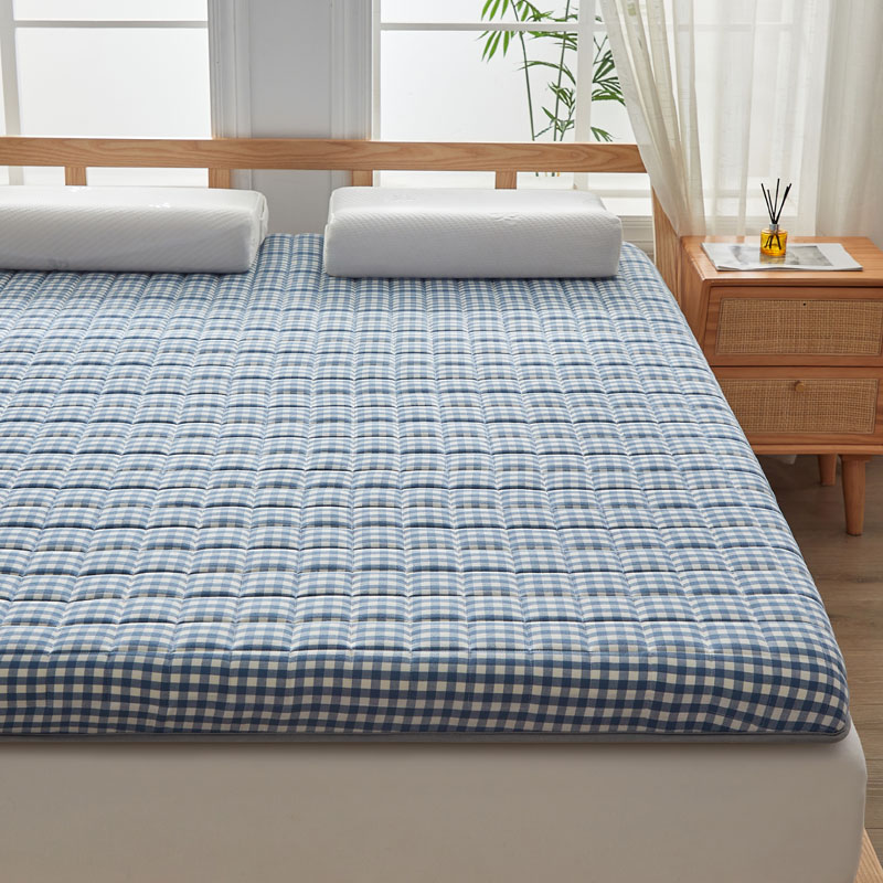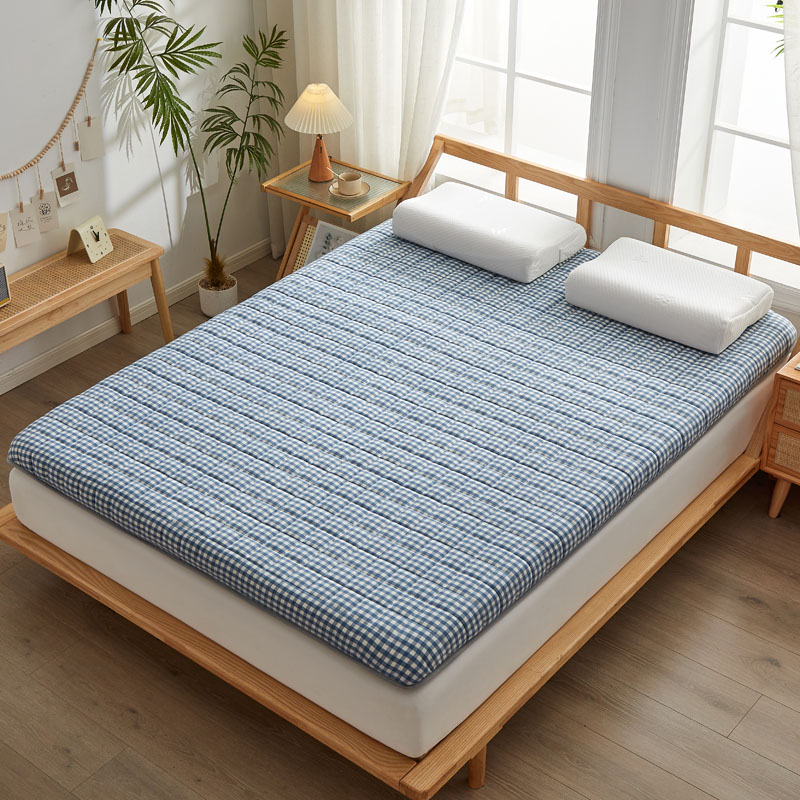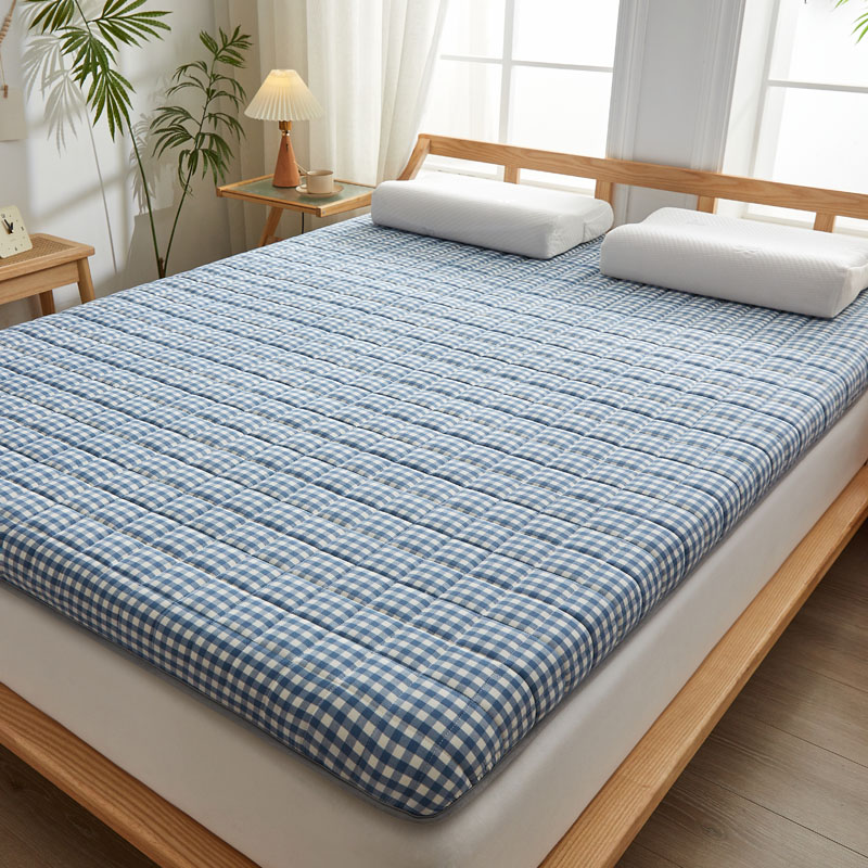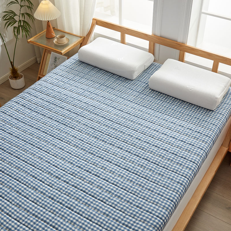 商品名称:暖季家纺 2025新款A类全棉无印风棉花床垫系列成人款 蓝小格