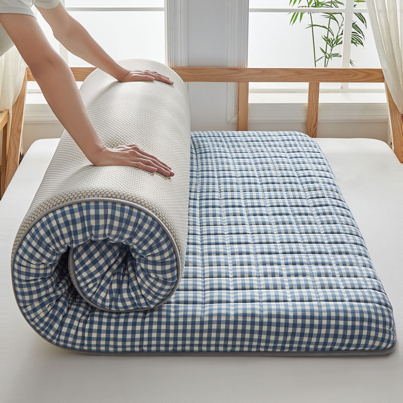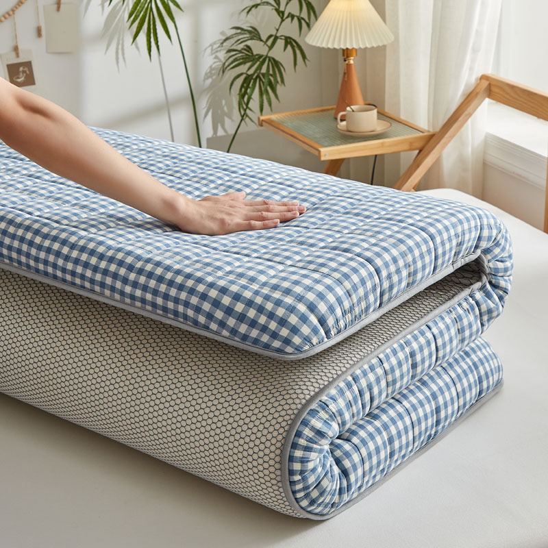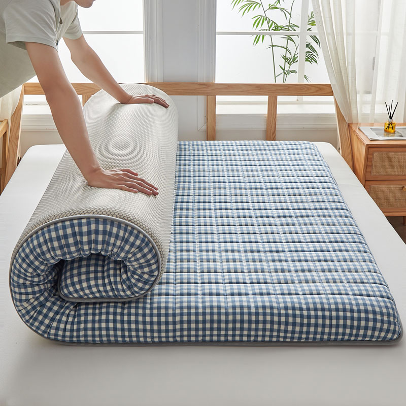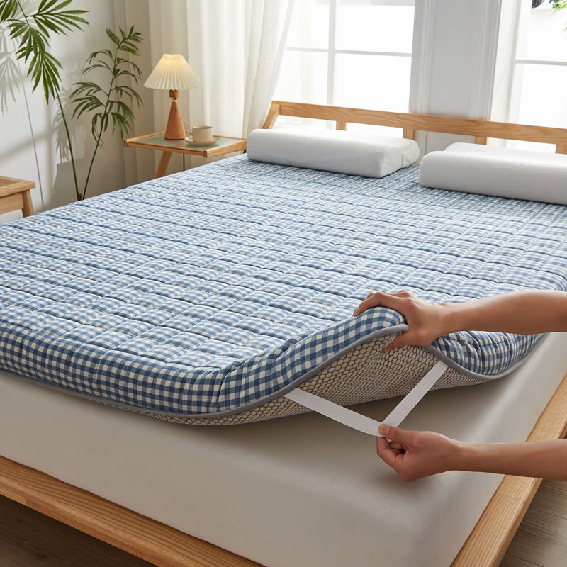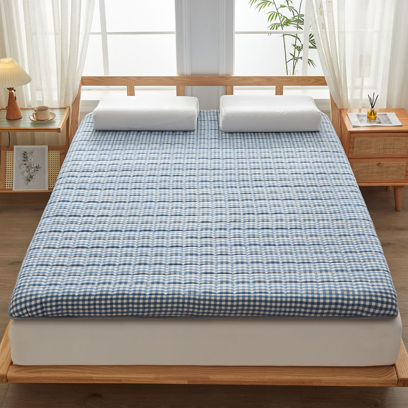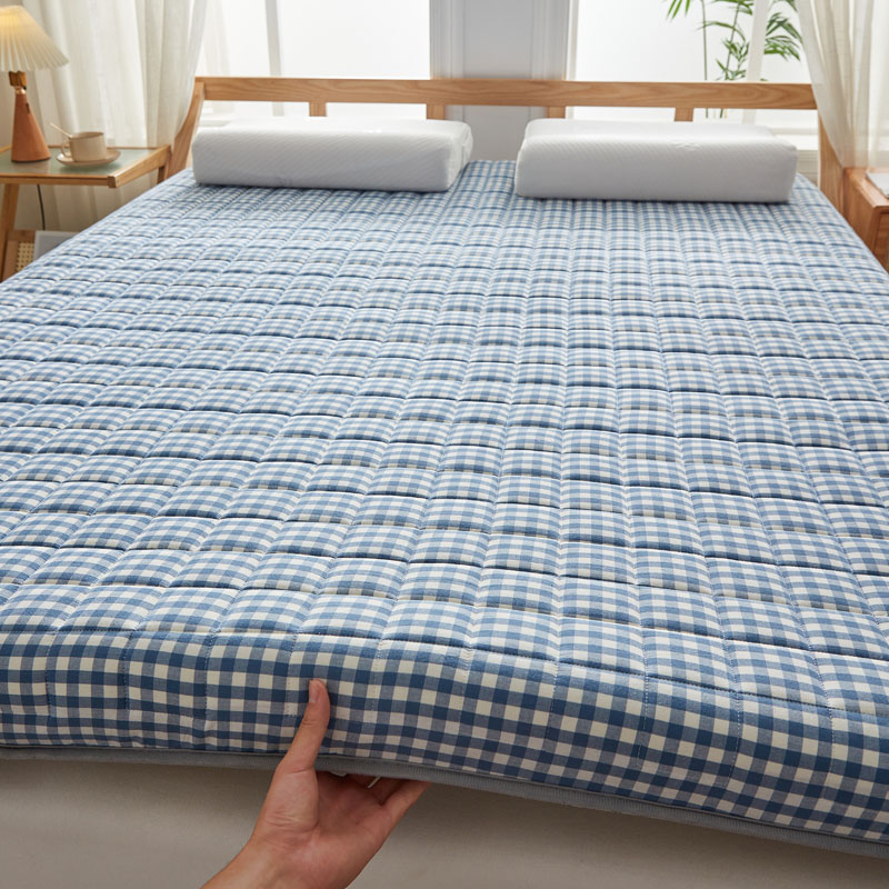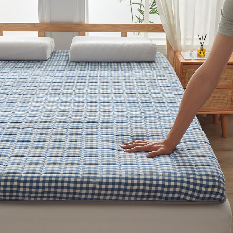 商品名称:暖季家纺 2025新款A类全棉无印风棉花床垫系列成人款 蓝小格