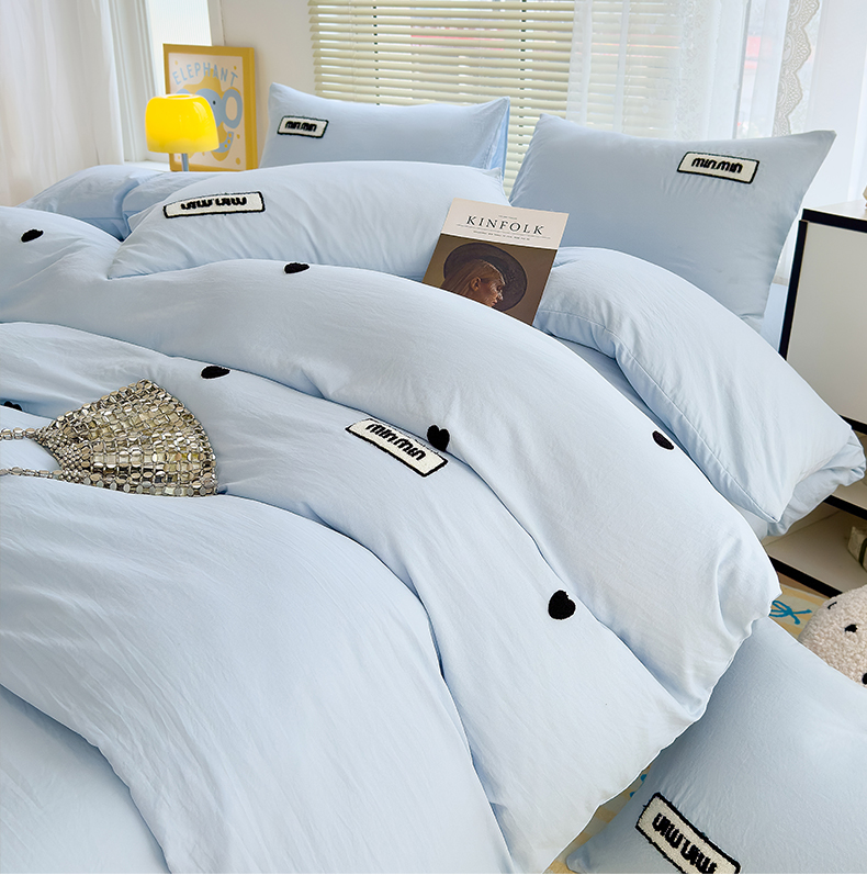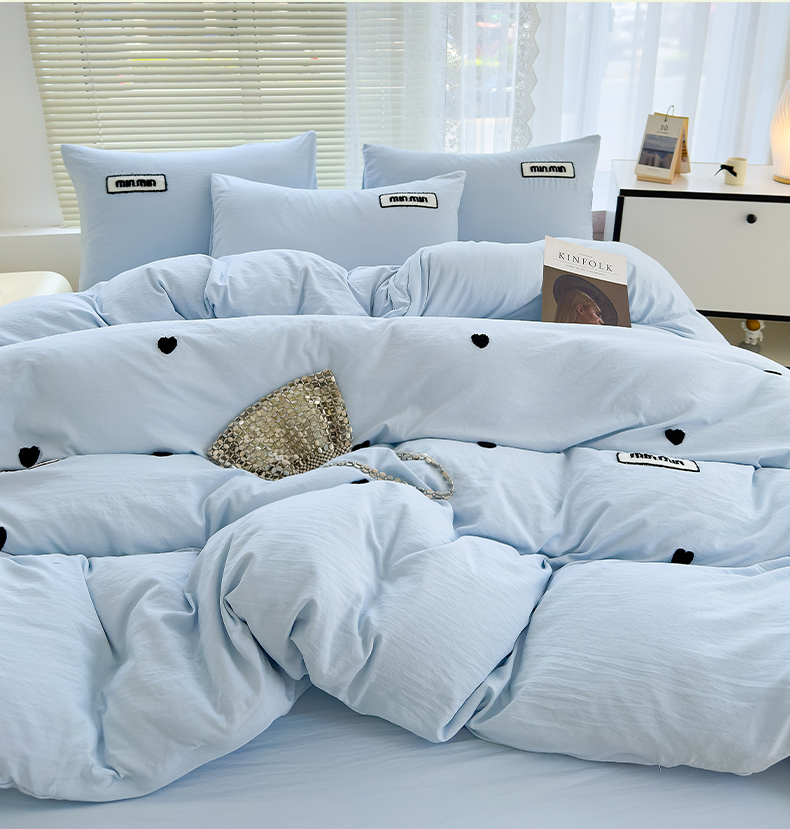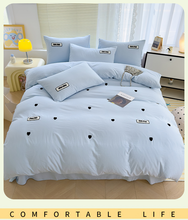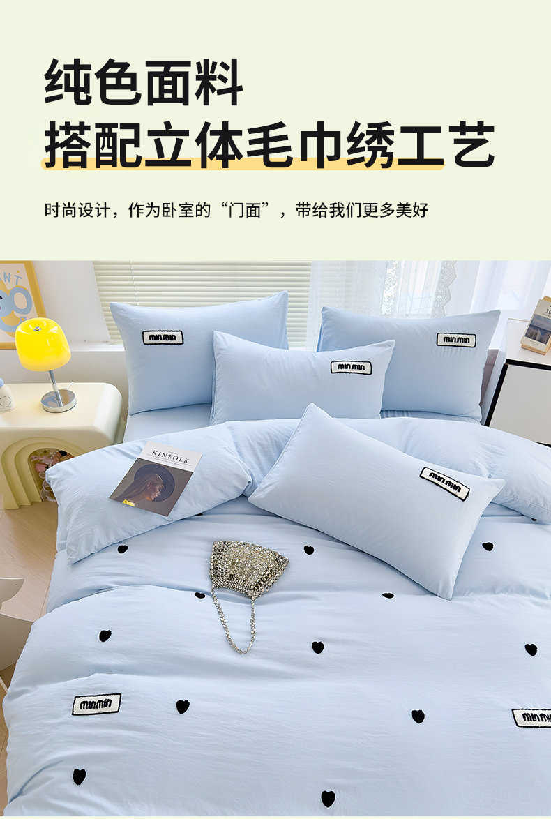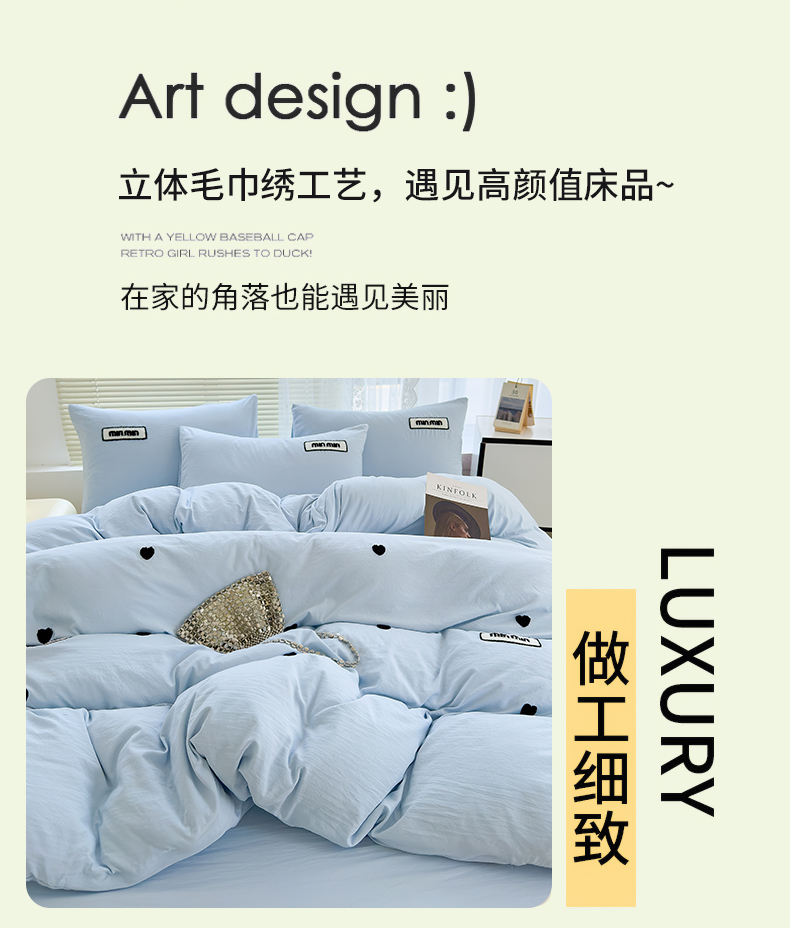 商品名称:寐时代 2024新款A类水洗亲肤立体毛巾绣四件套四季通用款 心动(蓝)