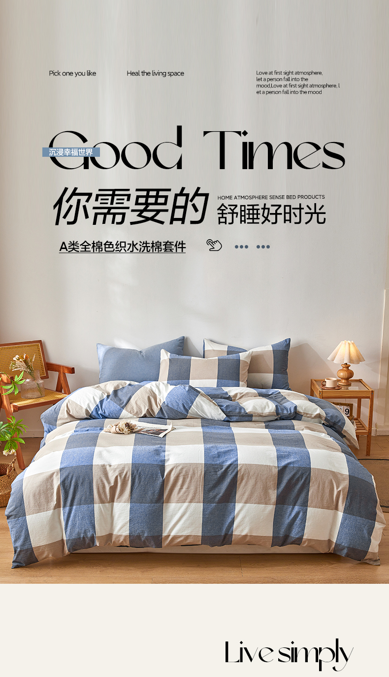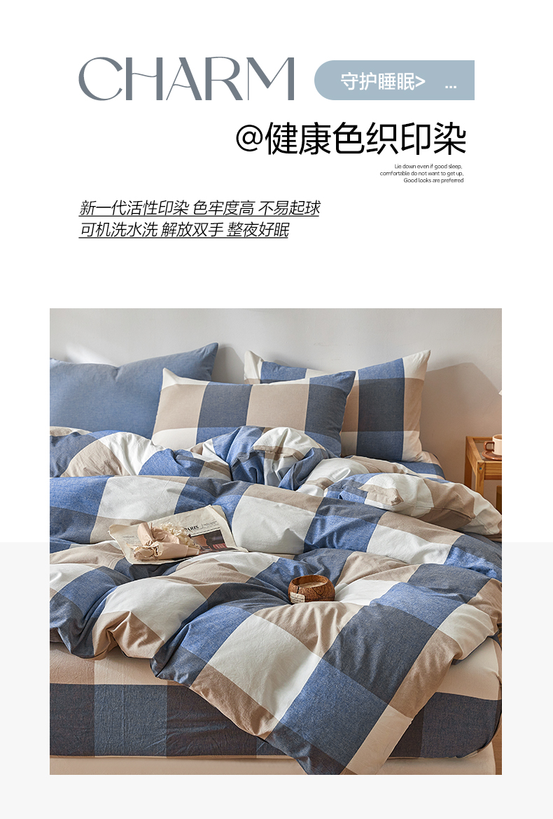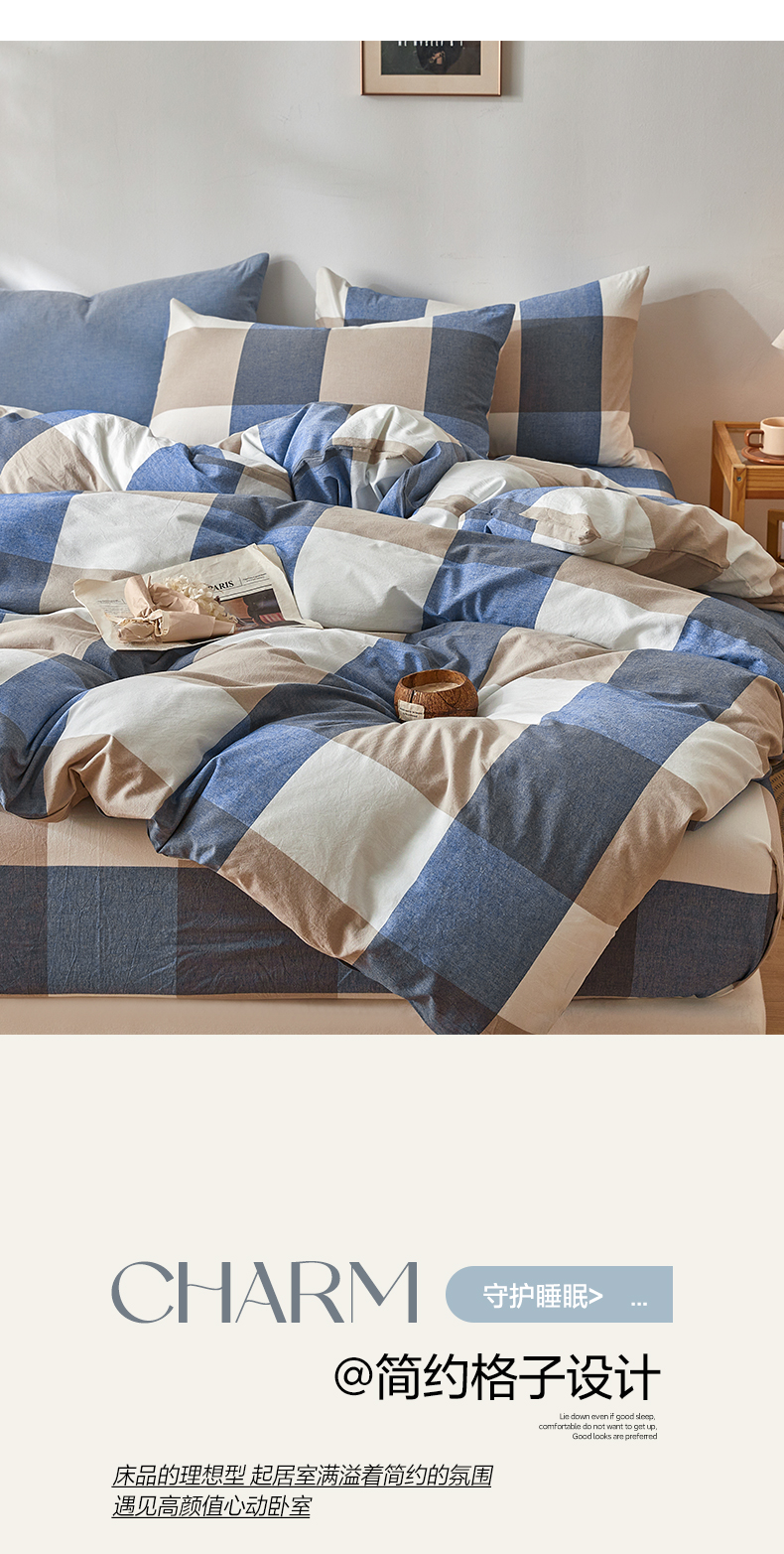 当前位置: 91家纺网 > 商品网购 > 床品套件 > 四件套 > 全棉普通四件套 > 2025新款全棉色织水洗棉四件套被套三件套系列 蓝大格