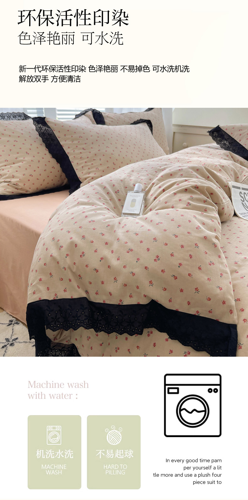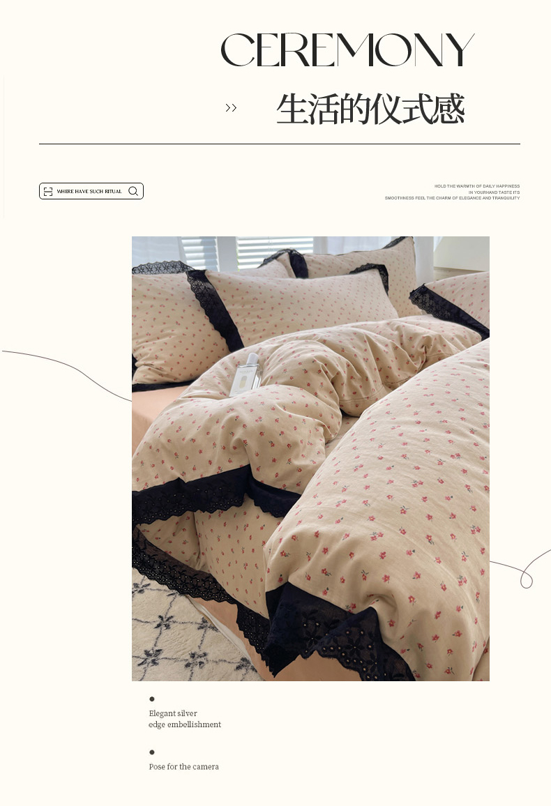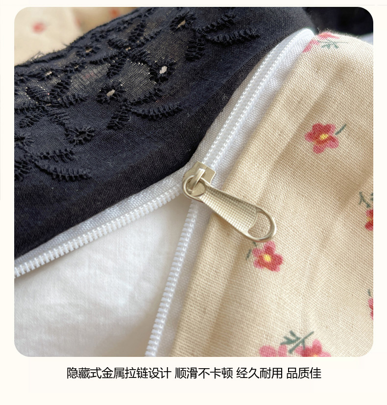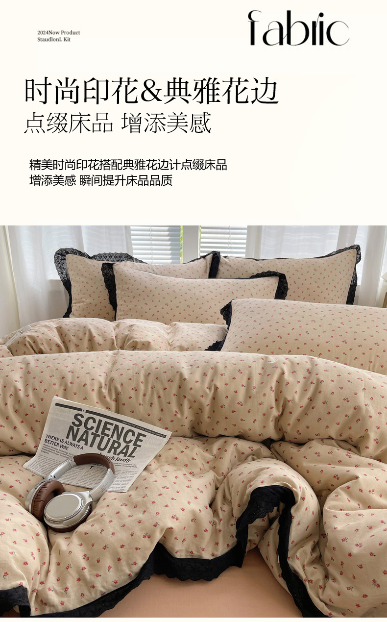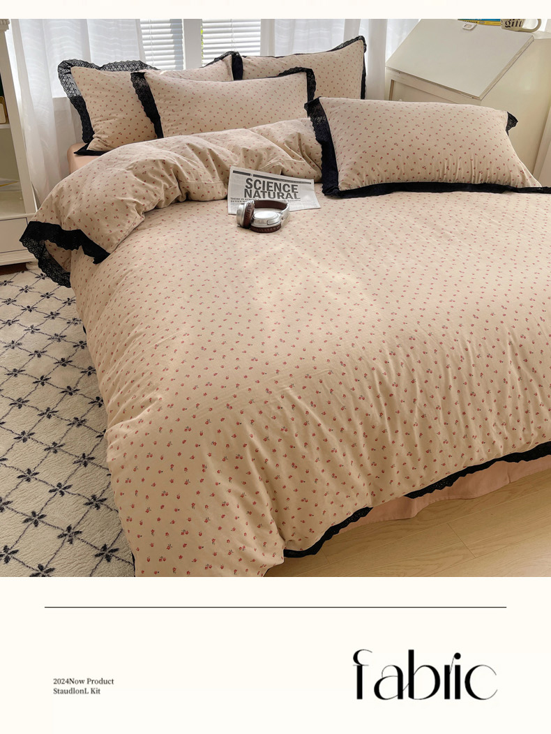 商品名称:2025新款全棉黑边双层纱花边款四件套 花边款-韩式小花