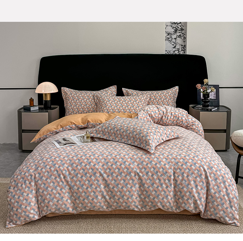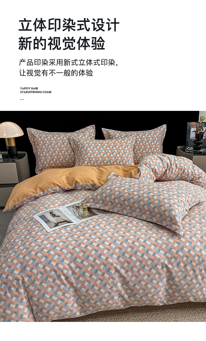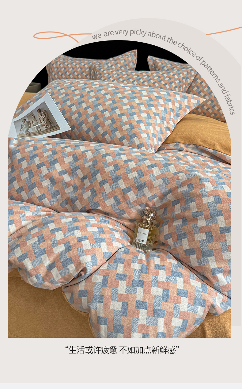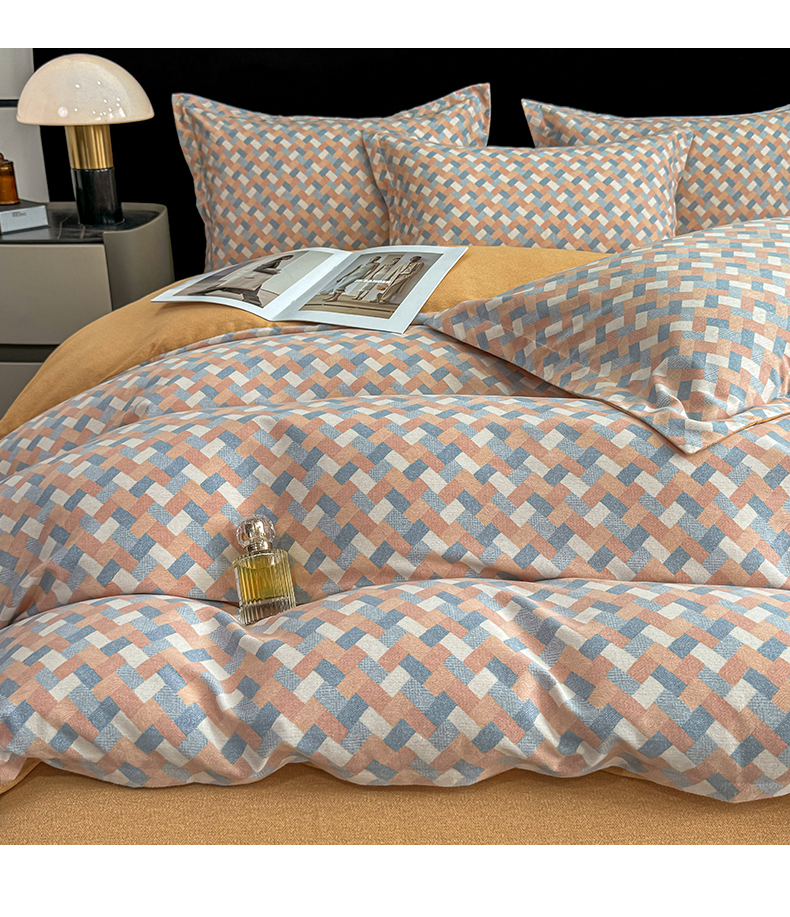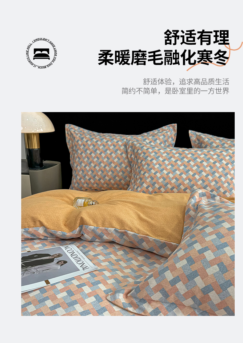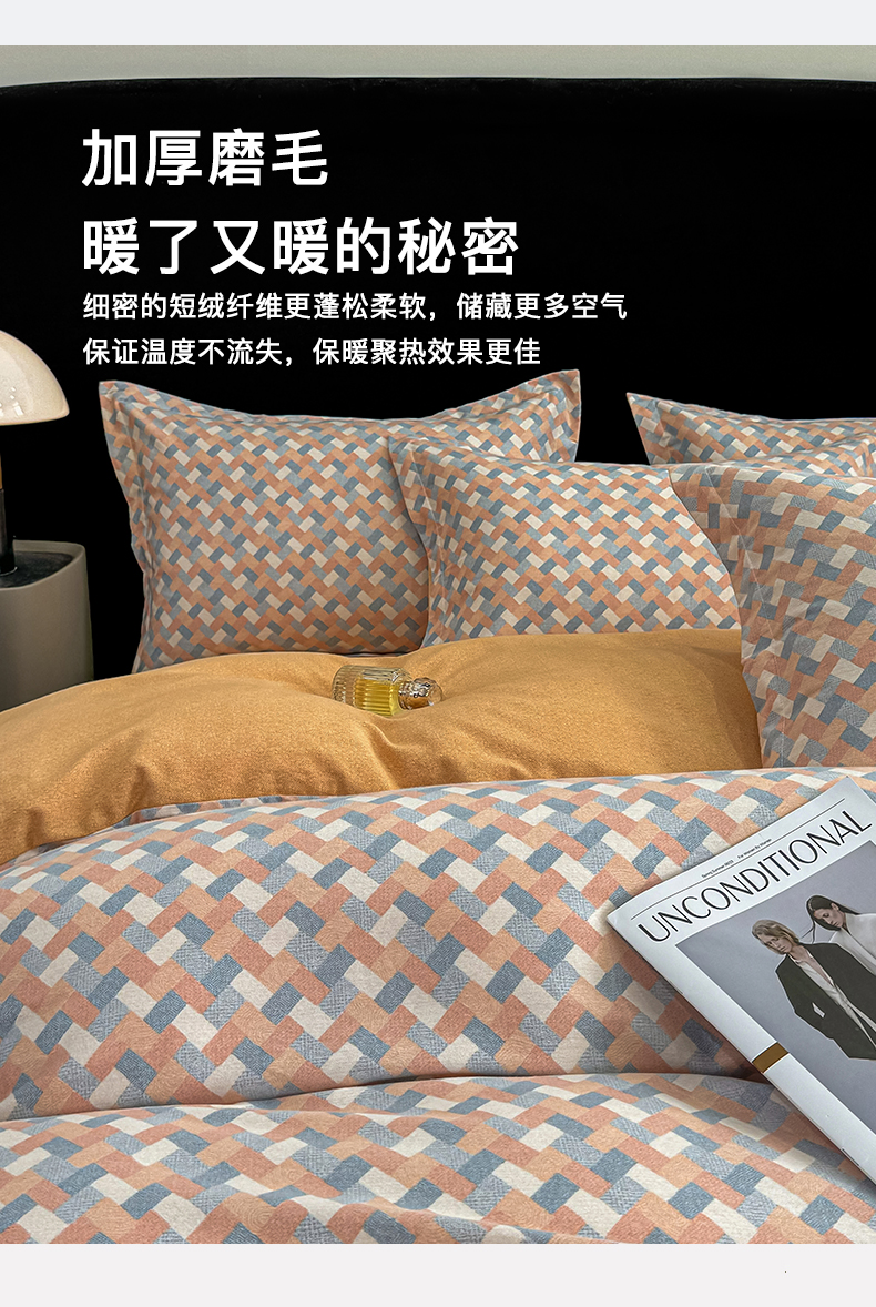 卧趣 2024秋冬新品原棉磨毛四件套北欧风系列 布拉格-桔
