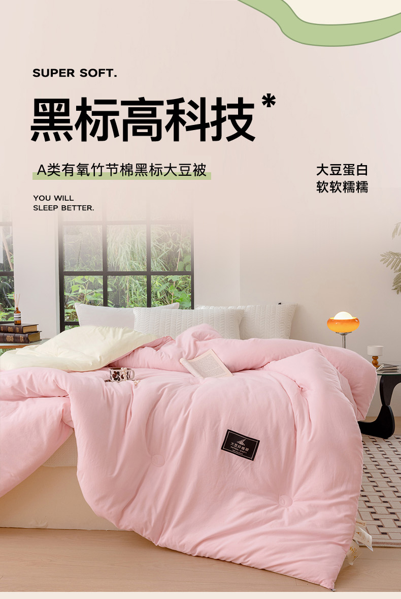 当前位置: 91家纺网 > 商品网购 > 被子 > 冬被 > 丫丫家纺 2024新款有氧竹节棉黑标双拼冬被大豆被超加厚冬被春秋被学生床单人双人被子被芯可定制超加厚冬被 黑标-双拼浅粉白