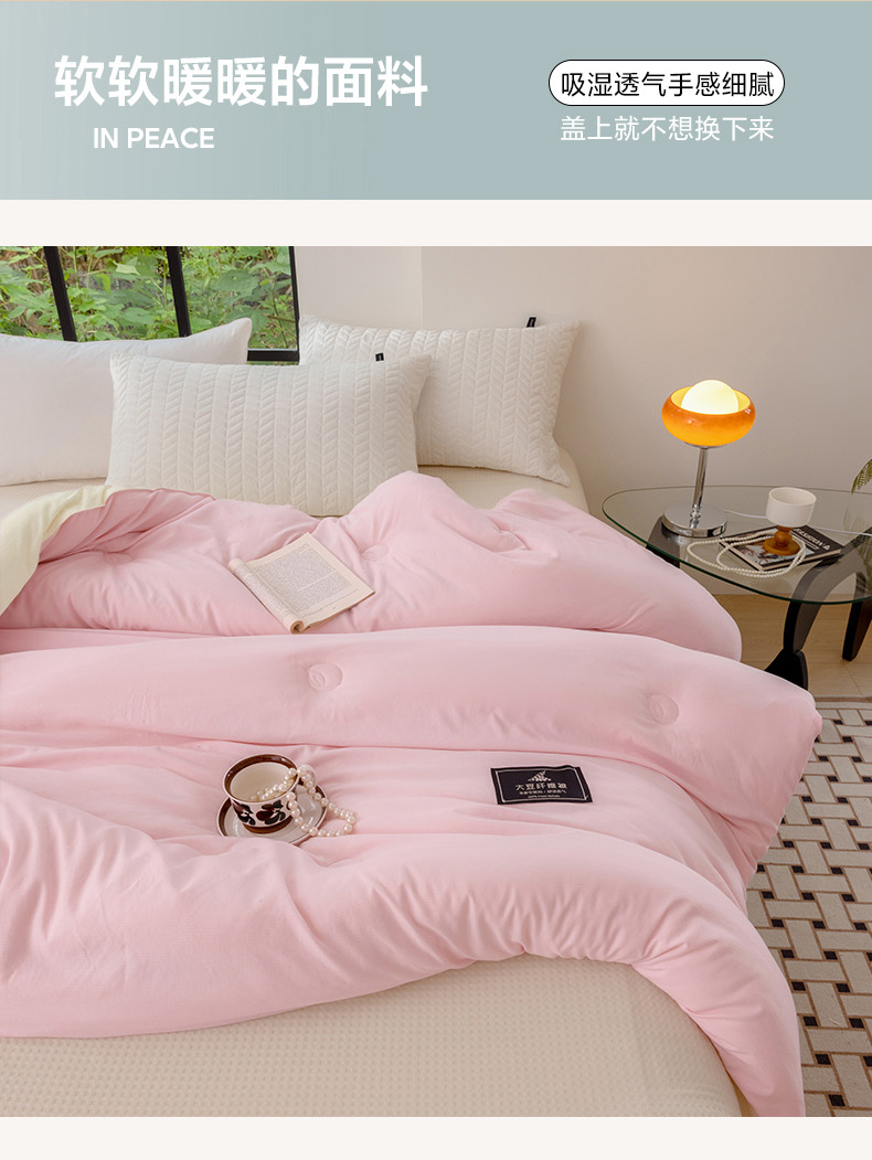 • 91家纺网 家纺一手货源 找家纺 丫丫家纺 2024新款有氧竹节棉黑标双拼冬被大豆被超加厚冬被春秋被学生床单人双人被子被芯可定制超加厚冬被 黑标-双拼浅粉白