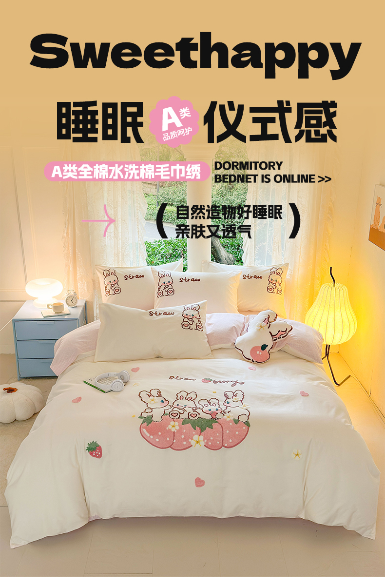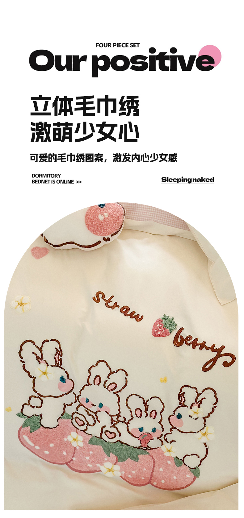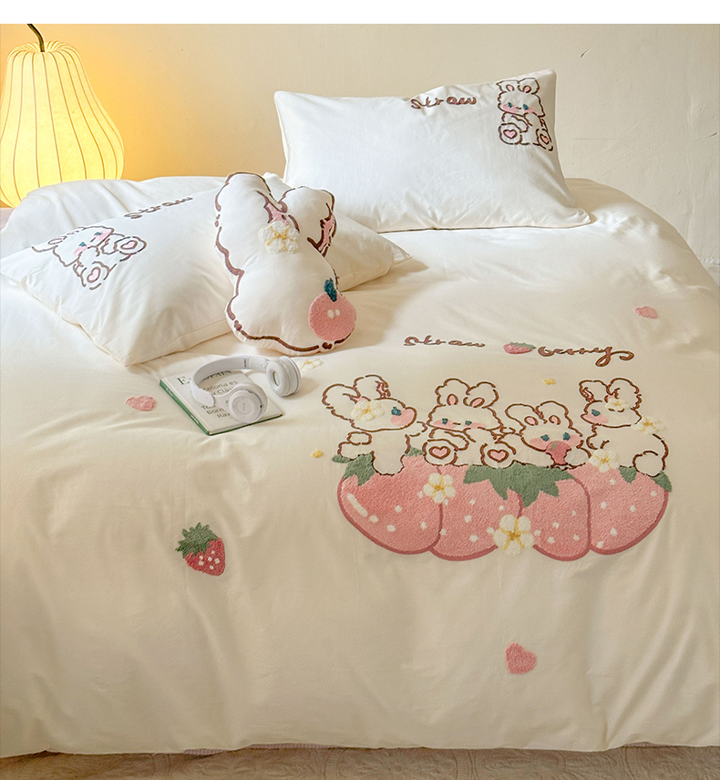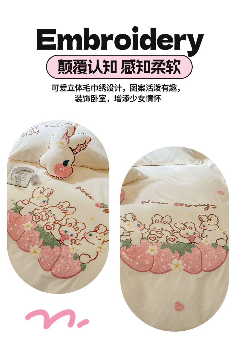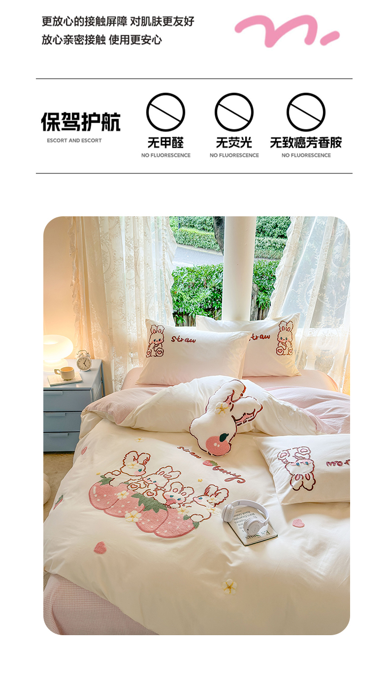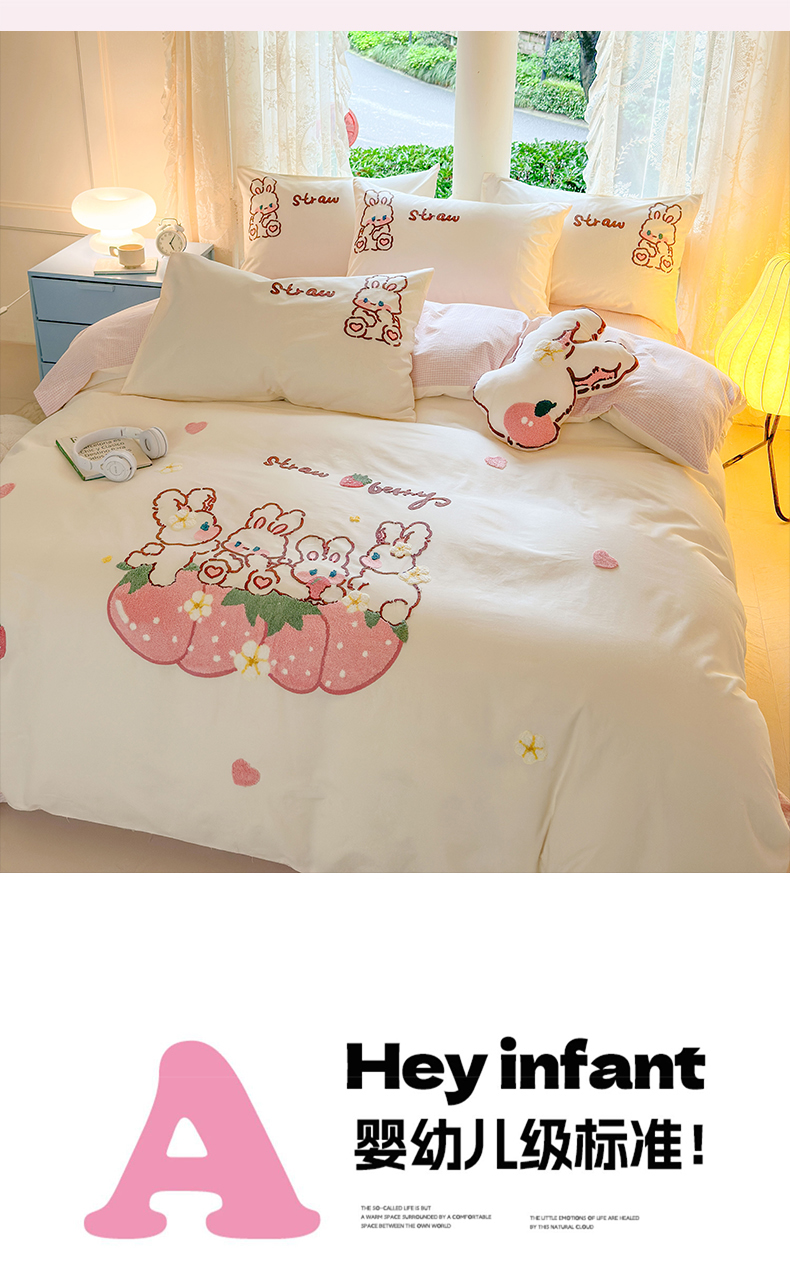 (总)红番天家居馆 2025新款A类全棉水洗棉贴布绣四件套-欢乐兔,欢乐兔