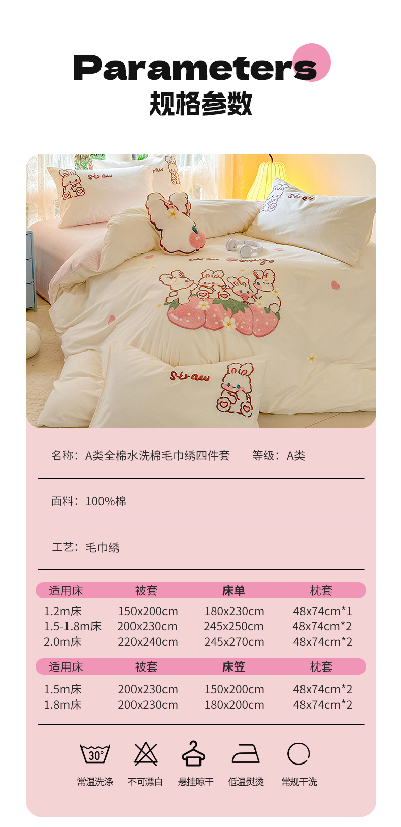 商品名称:(总)红番天家居馆 2025新款A类全棉水洗棉毛巾绣四件套-宝贝兔