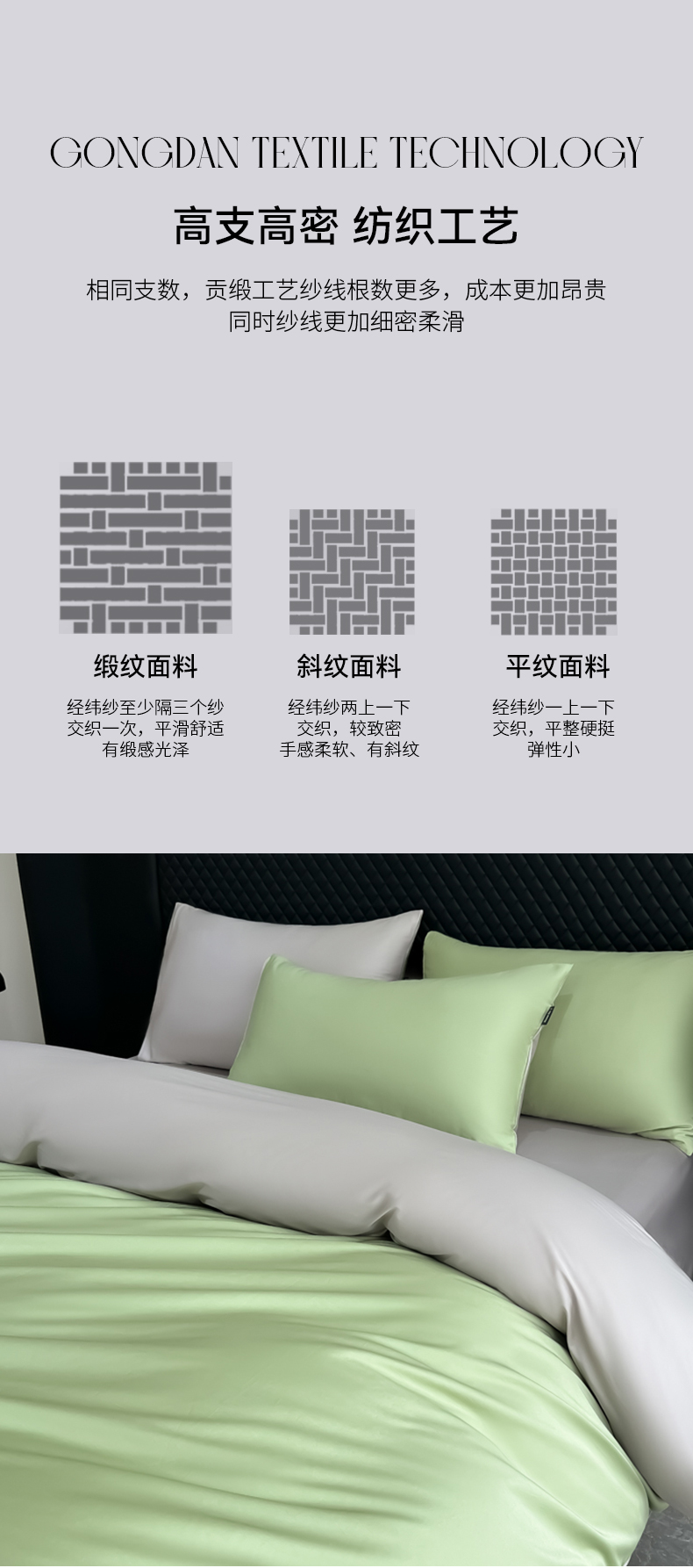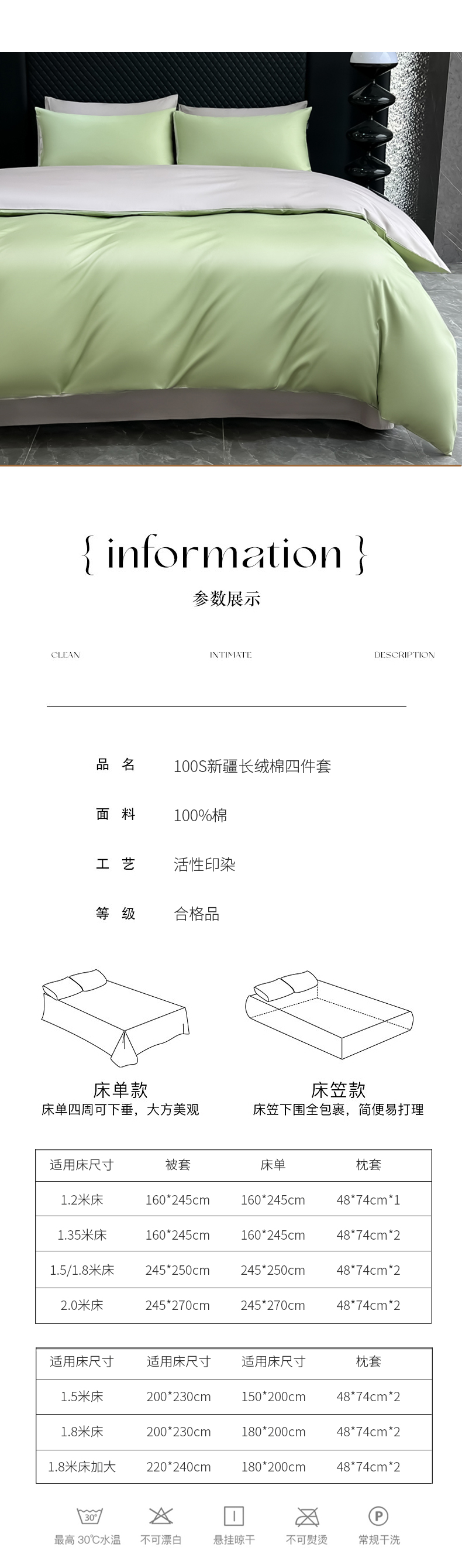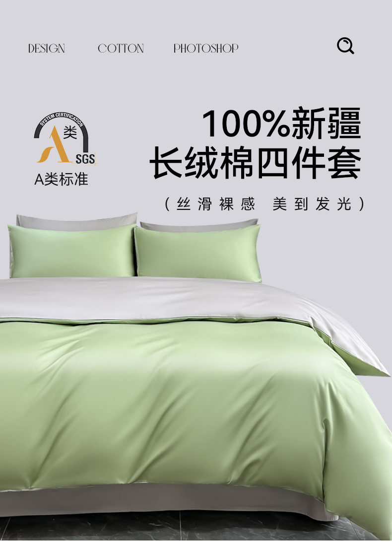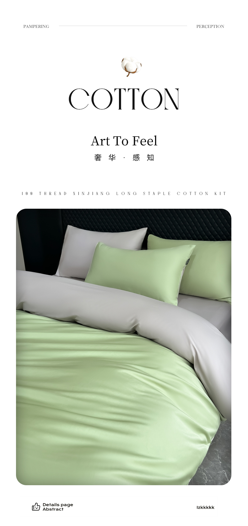 当前位置: 91家纺网 > 商品网购 > 床品套件 > 四件套 > 全棉普通四件套 > 家居1号家纺 2024新款50双股新疆长绒棉纯色四件套单品系列-四件套 共享-苹果绿+太空灰