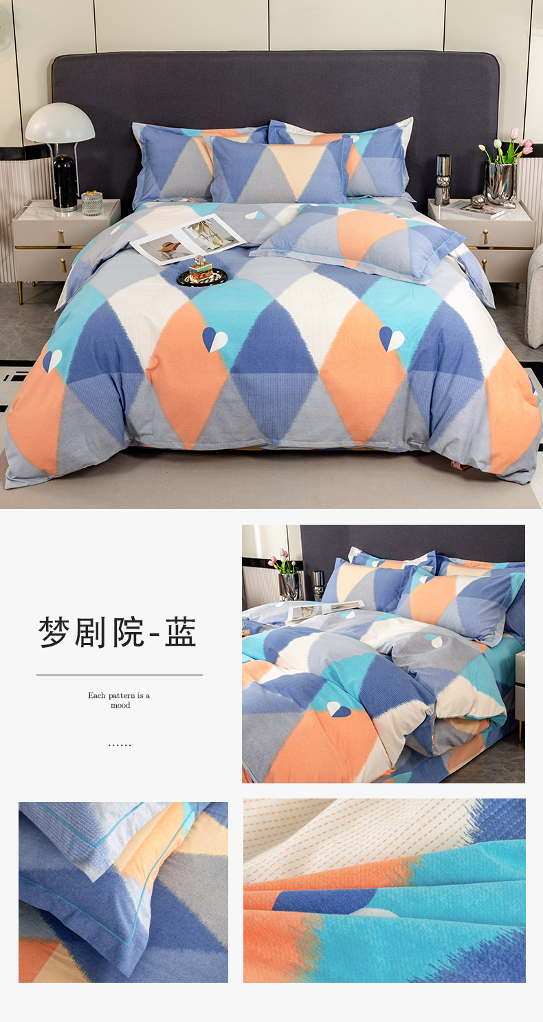 商品名称:威布斯家居 2024新款AA版全棉加厚磨毛四件套 梦剧院-蓝