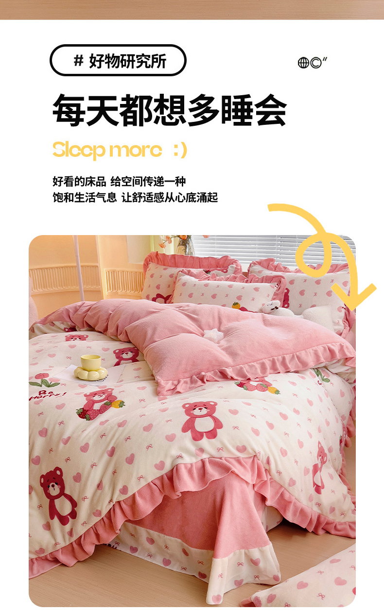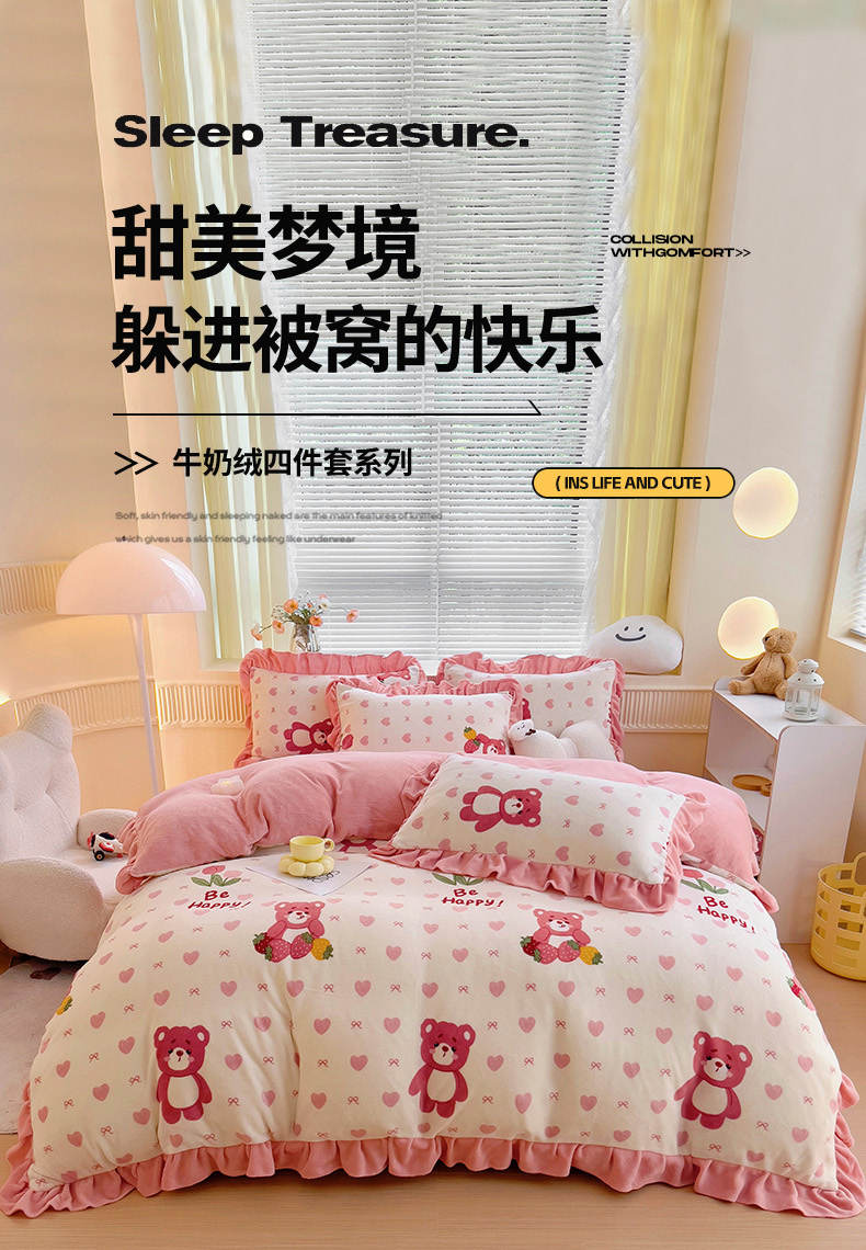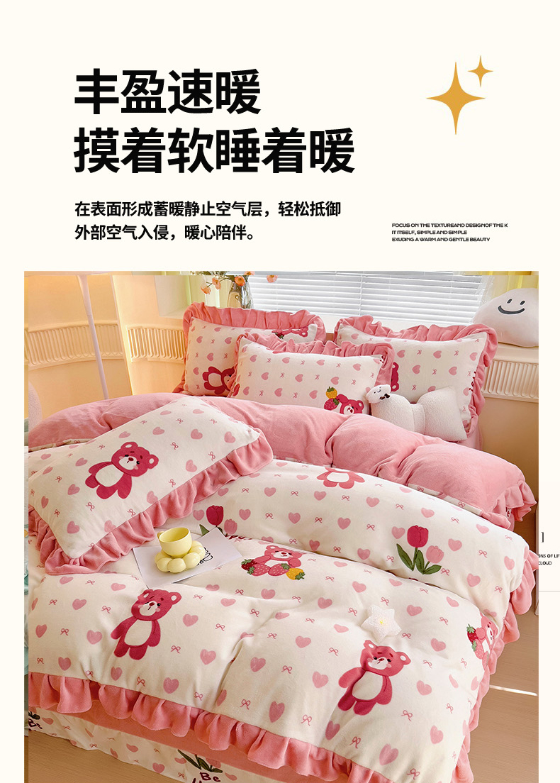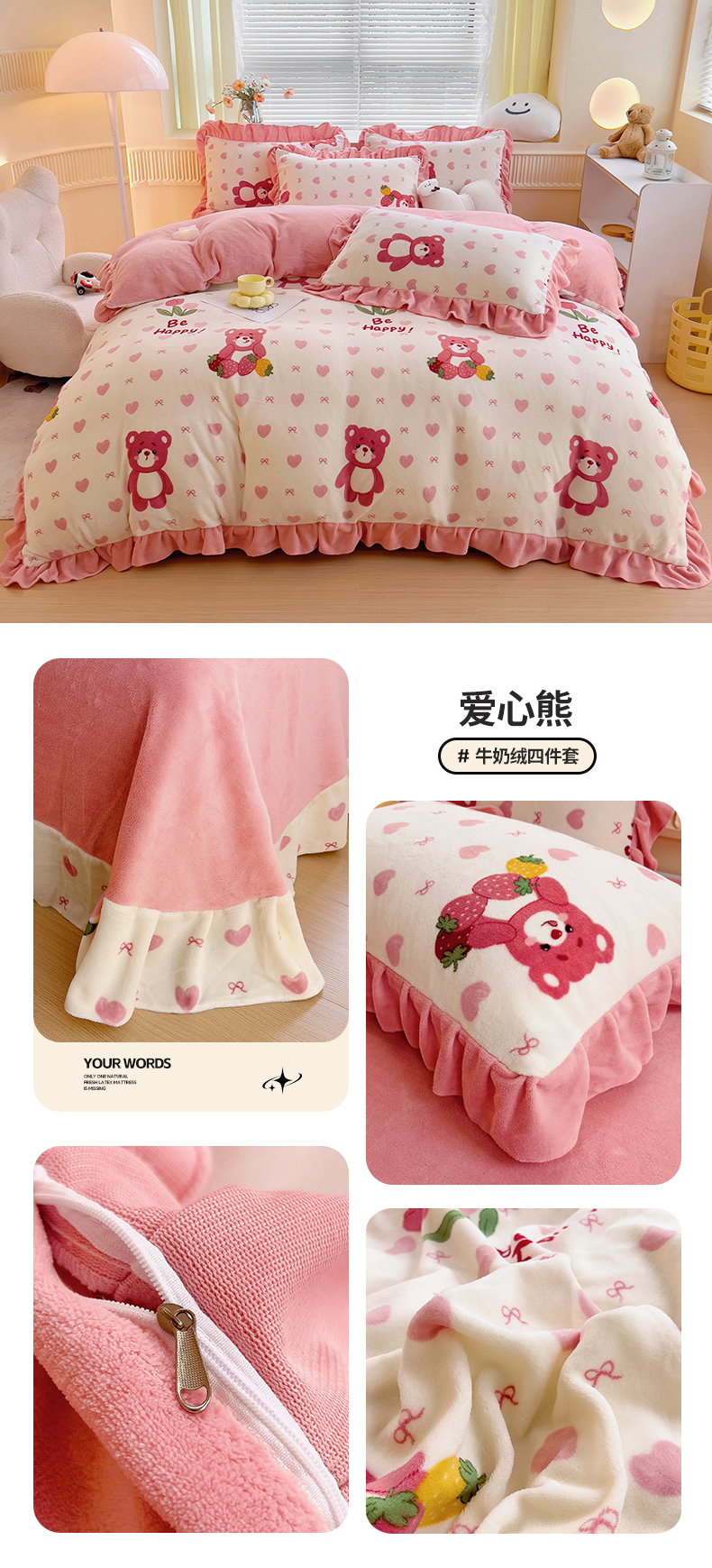 找底底家纺 2024新款牛奶绒印花四件套 爱心熊