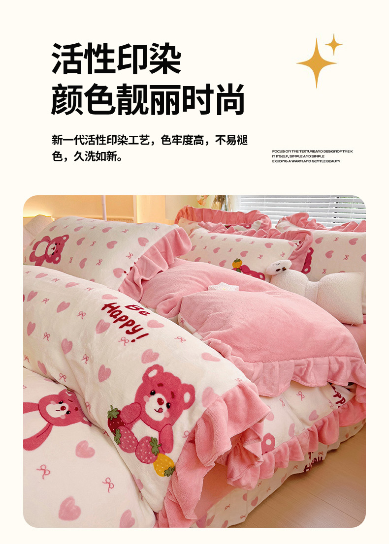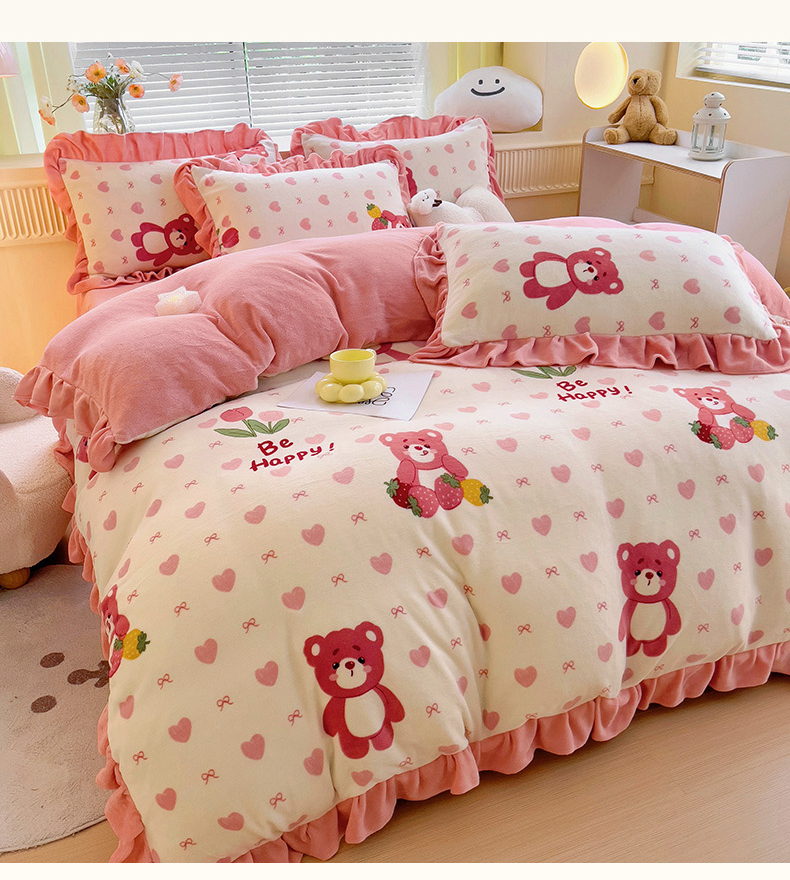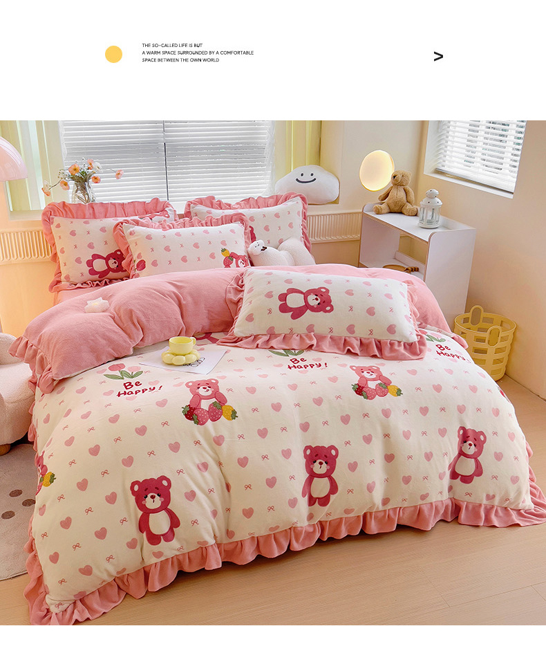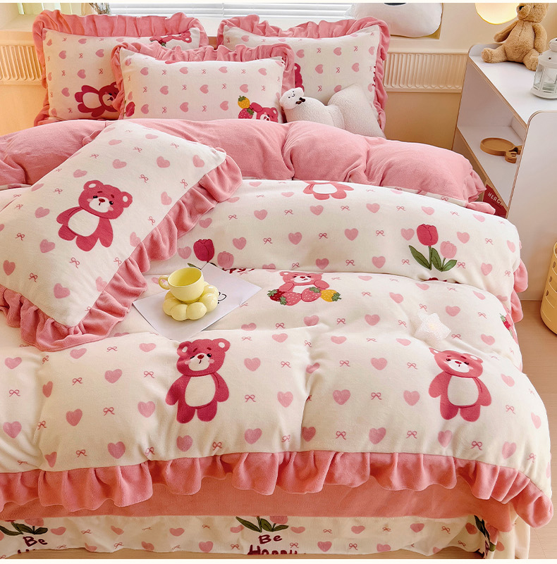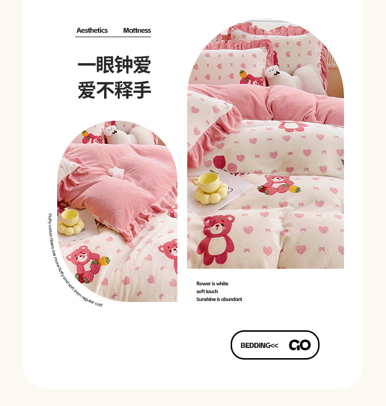 找底底家纺 2024新款牛奶绒印花四件套 爱心熊