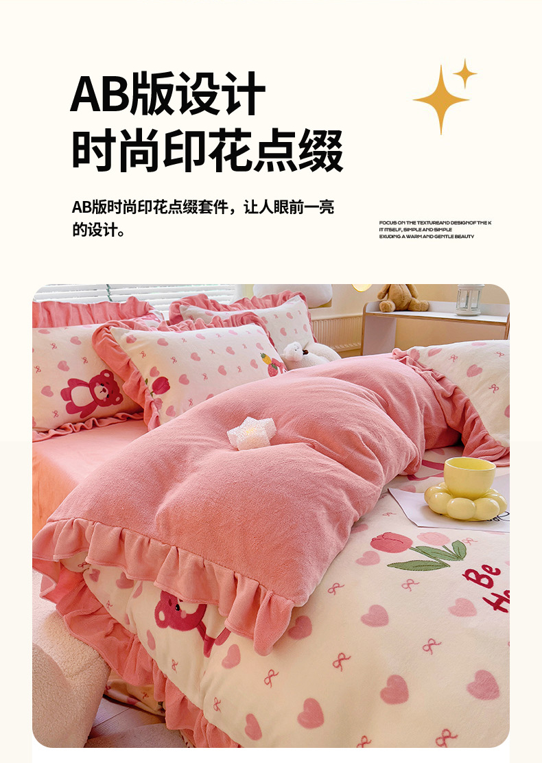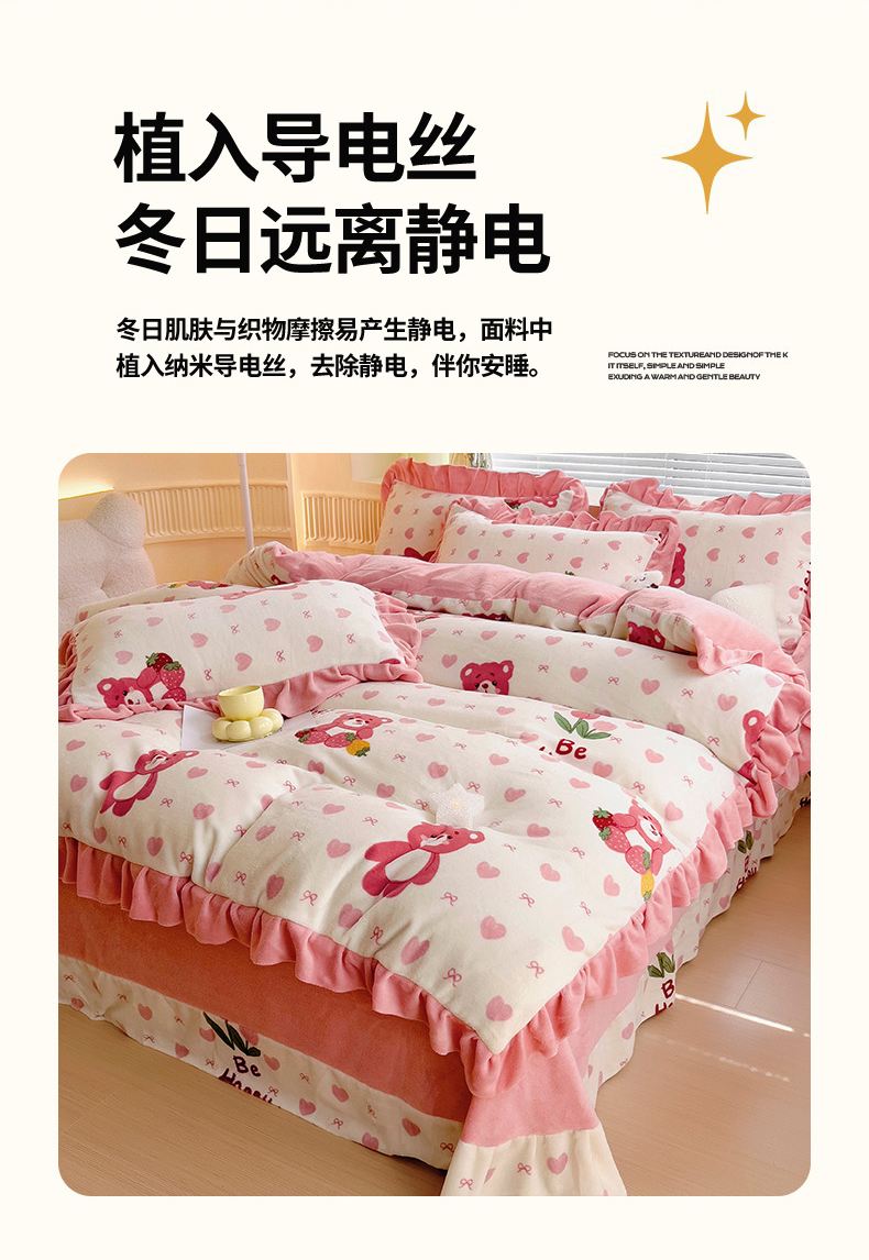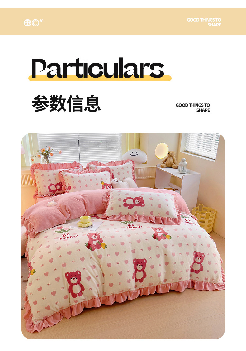 商品名称:找底底家纺 2024新款牛奶绒印花四件套 爱心熊