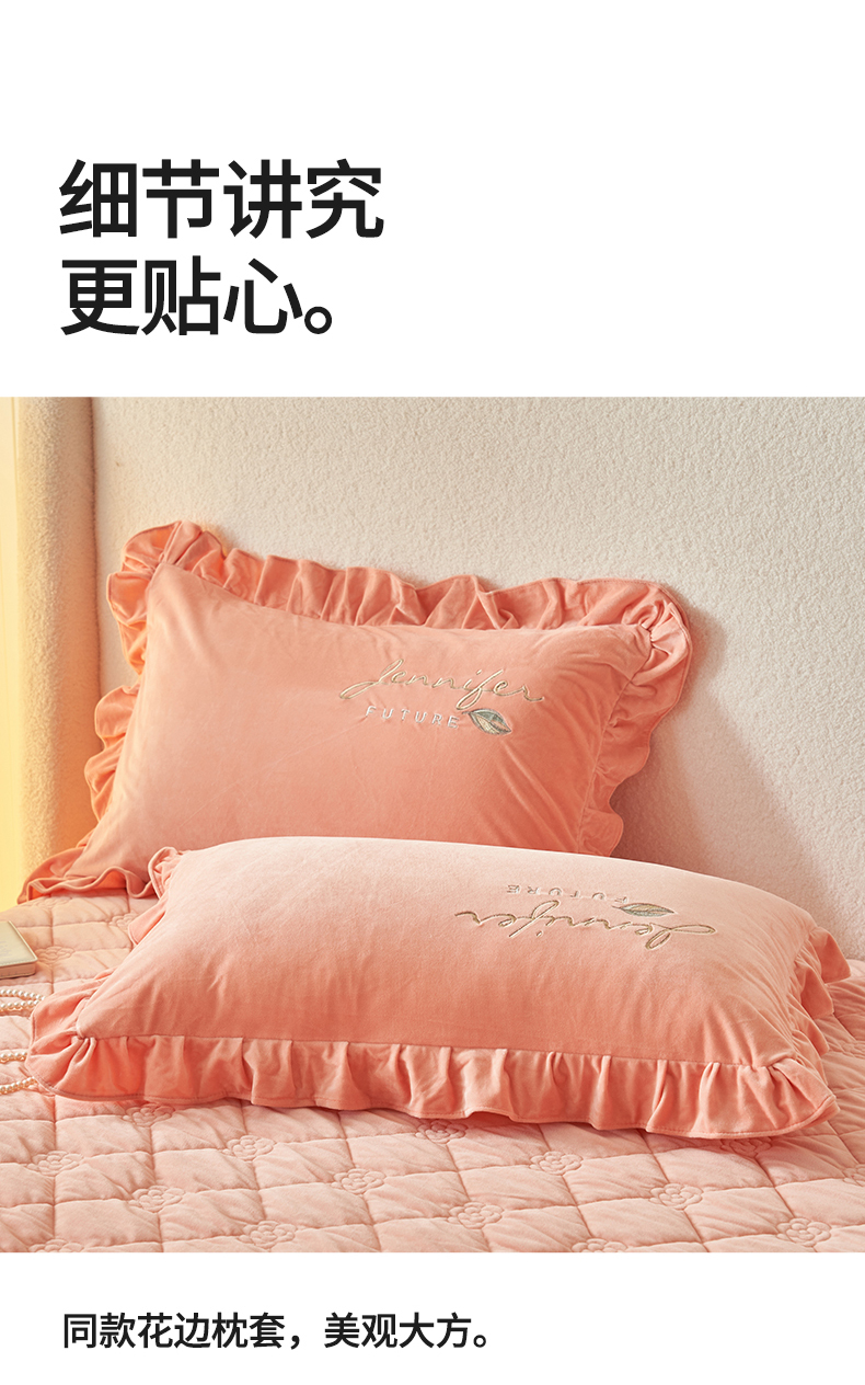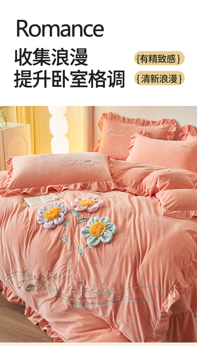 (总)恒爱家纺 2025新款牛奶绒贴布绣夹棉床裙四件套,豆沙红,浪漫紫,天空蓝,温馨粉,象牙白