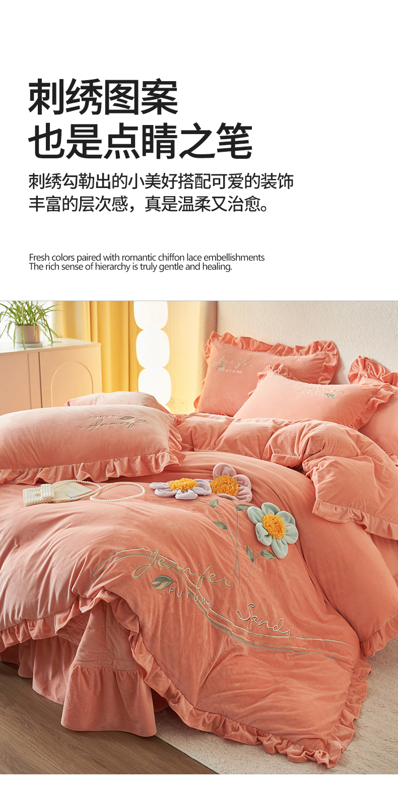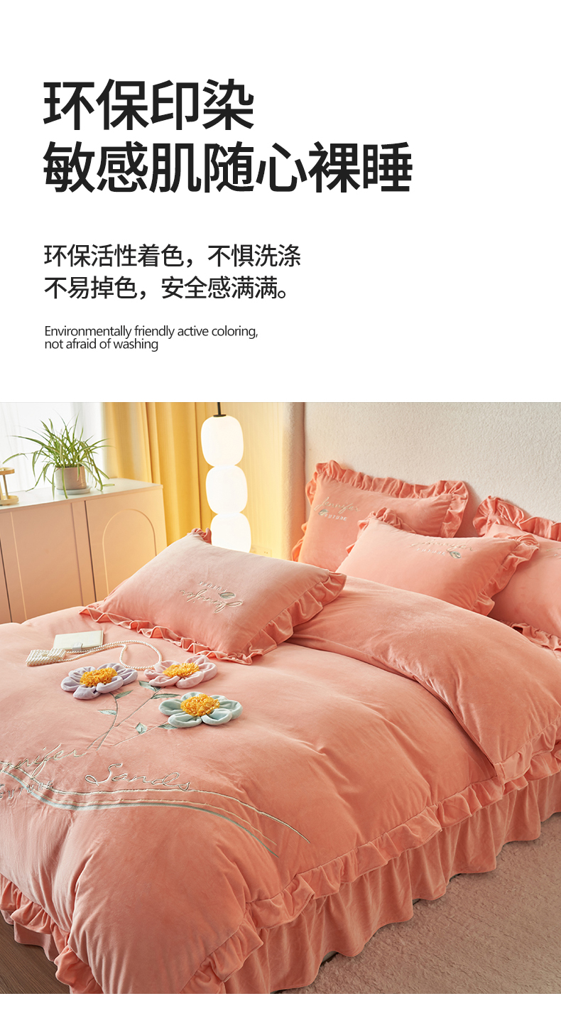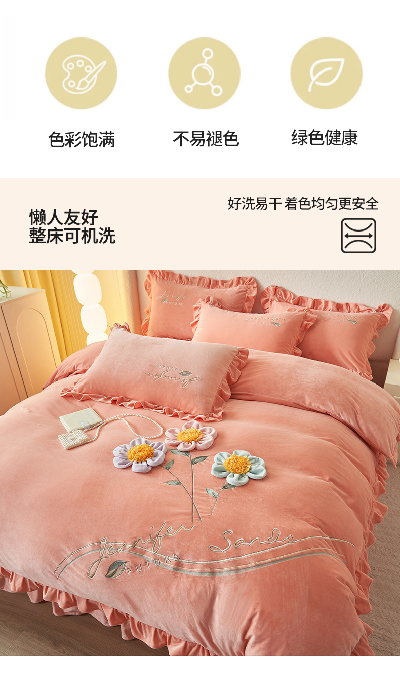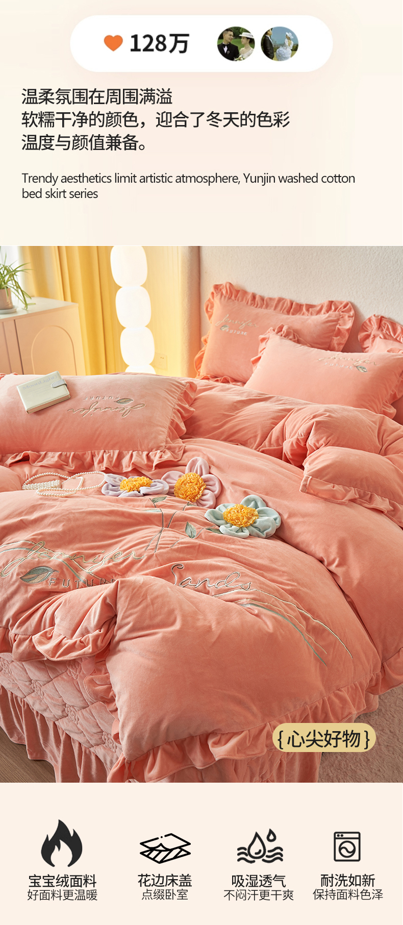 (总)恒爱 2022秋冬水晶绒翩翩花舞夹棉床裙四件套,大红色,豆沙红,橄榄绿,公主粉,桔色,咖啡色,孔雀绿,拉菲红,罗兰紫,玫红色,美人玉,米白色,米驼色,抹茶绿,浅灰色,紫色