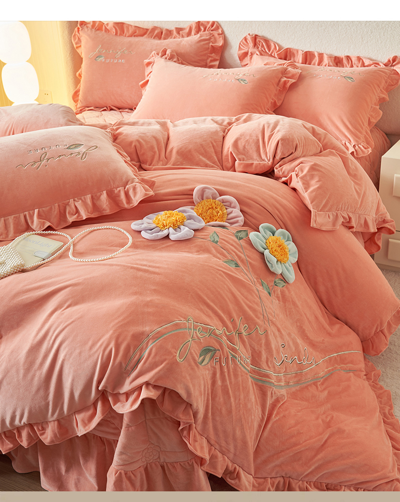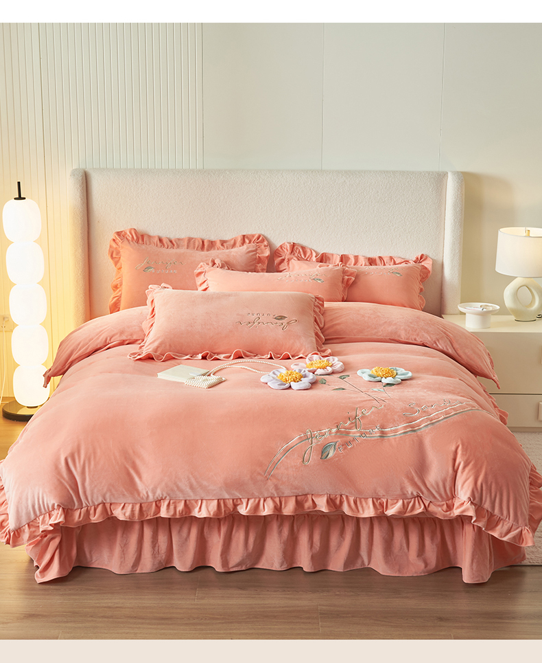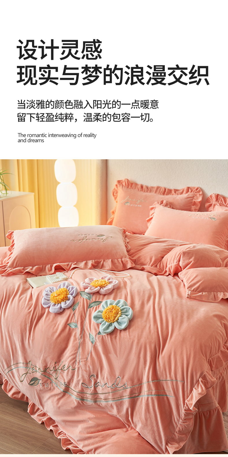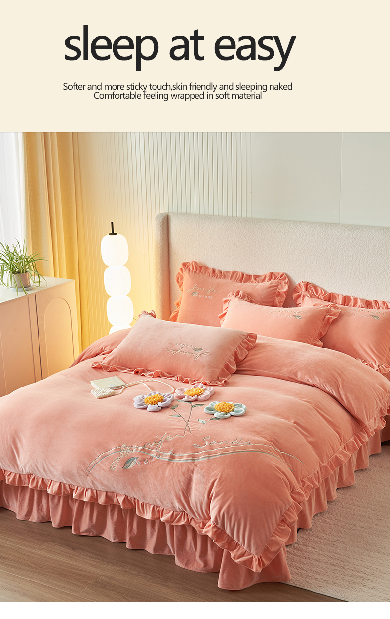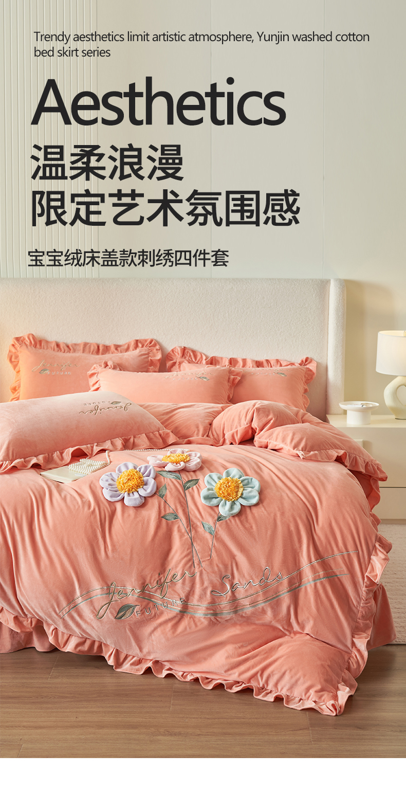 (总)恒爱 2022秋冬水晶绒翩翩花舞夹棉床裙四件套,大红色,豆沙红,橄榄绿,公主粉,桔色,咖啡色,孔雀绿,拉菲红,罗兰紫,玫红色,美人玉,米白色,米驼色,抹茶绿,浅灰色,紫色