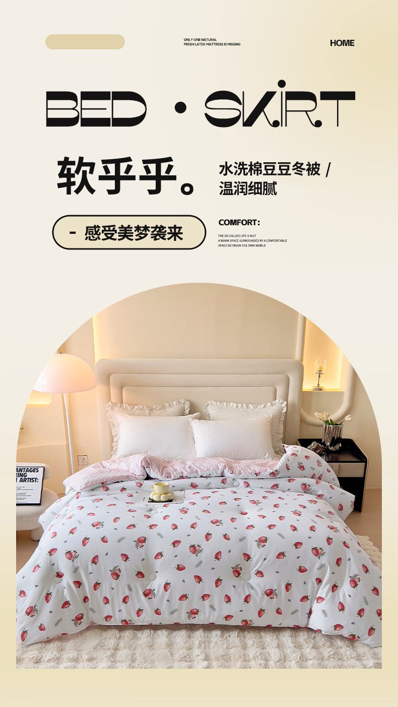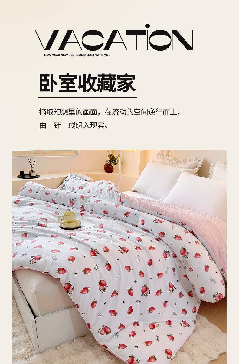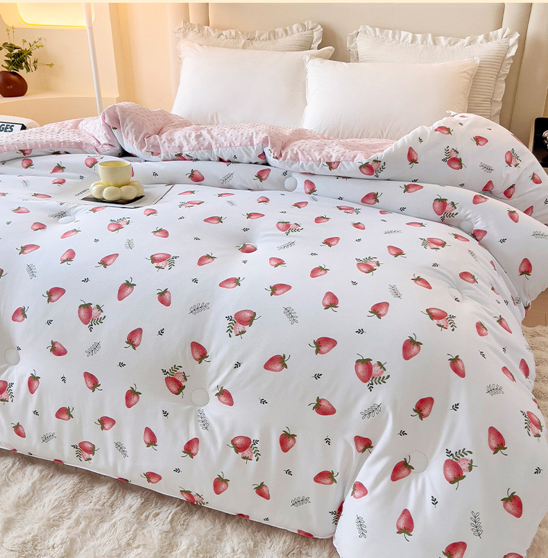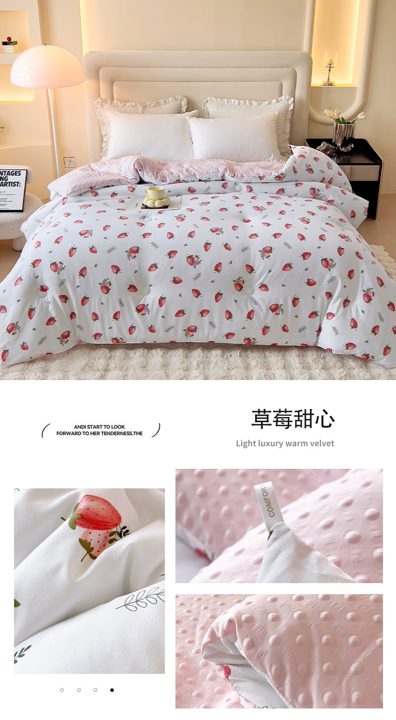 • 91家纺网 家纺一手货源 找家纺 暖阁 2025新款A类水洗棉豆豆被冬被春秋被被子被芯 草莓甜心