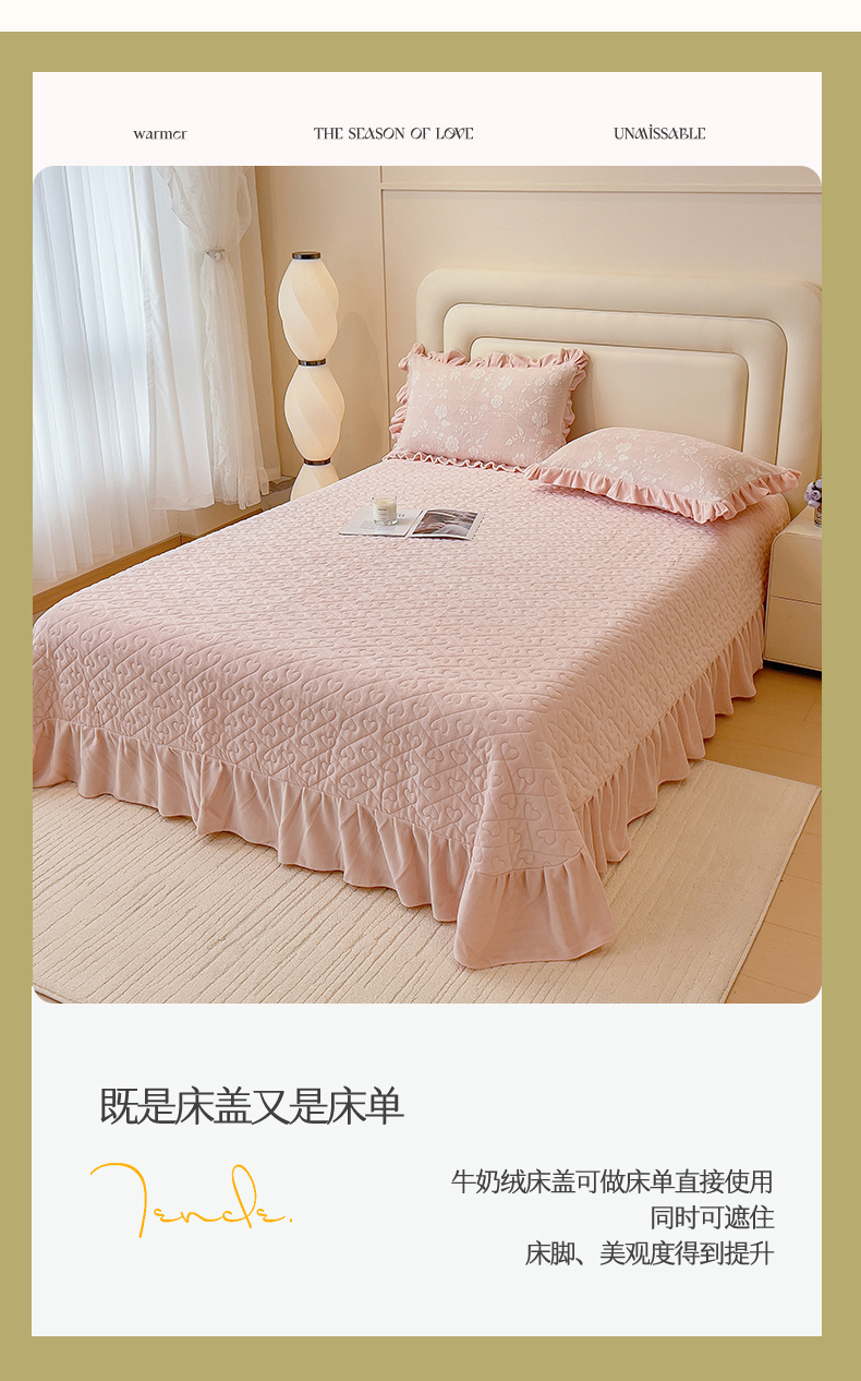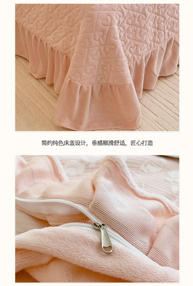 (总)恒爱家纺 2025新款牛奶绒贴布绣夹棉床裙四件套,豆沙红,浪漫紫,天空蓝,温馨粉,象牙白