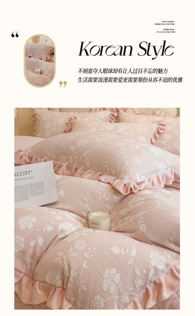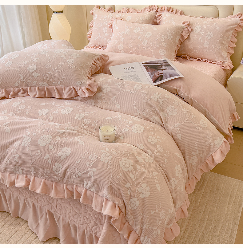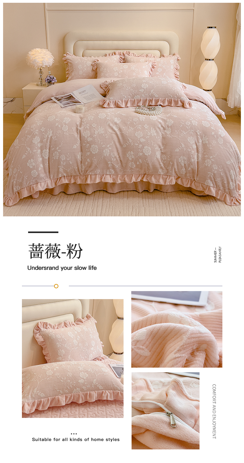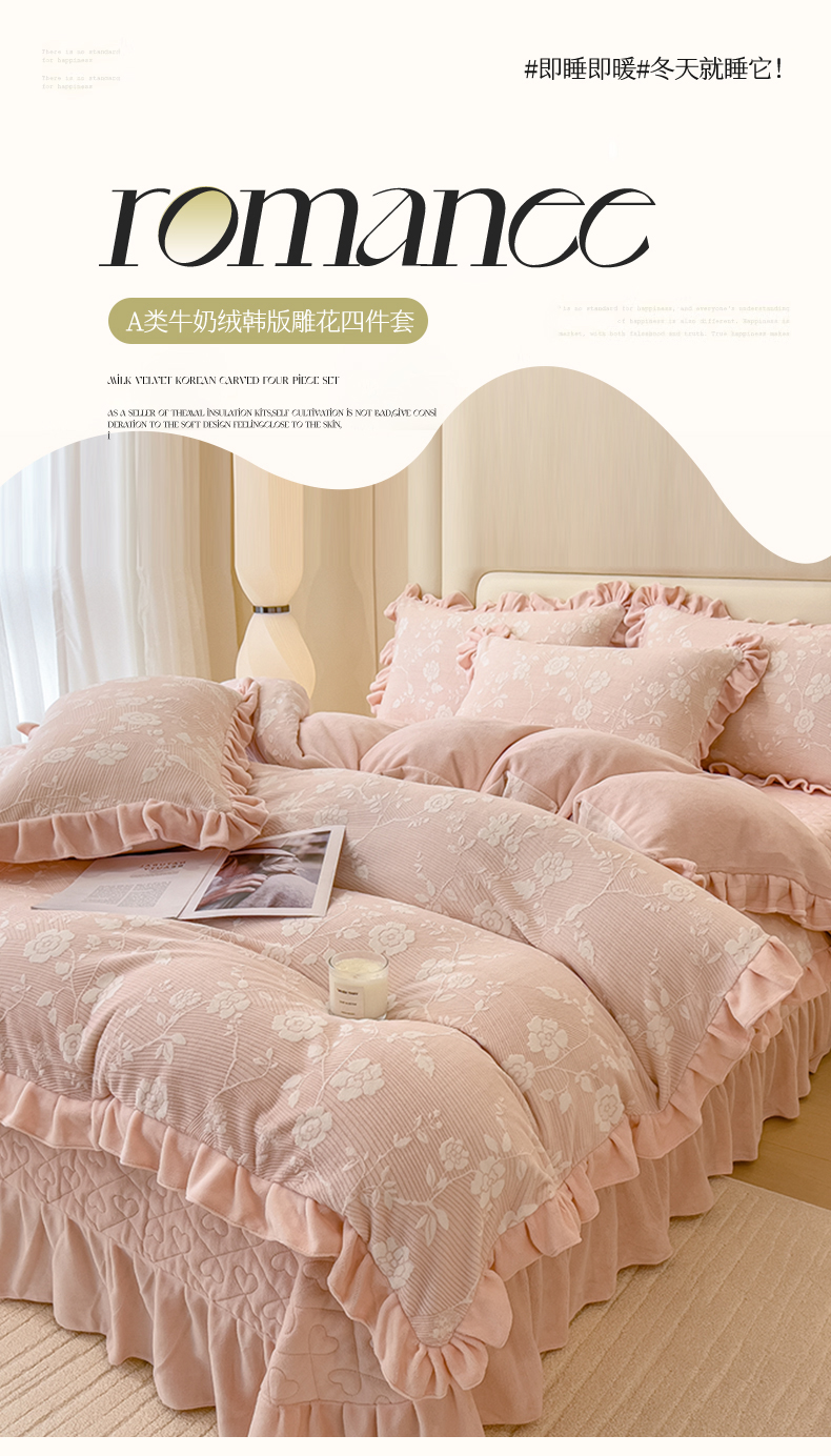2024新品A类牛奶绒韩版雕花四件套 蔷薇-粉