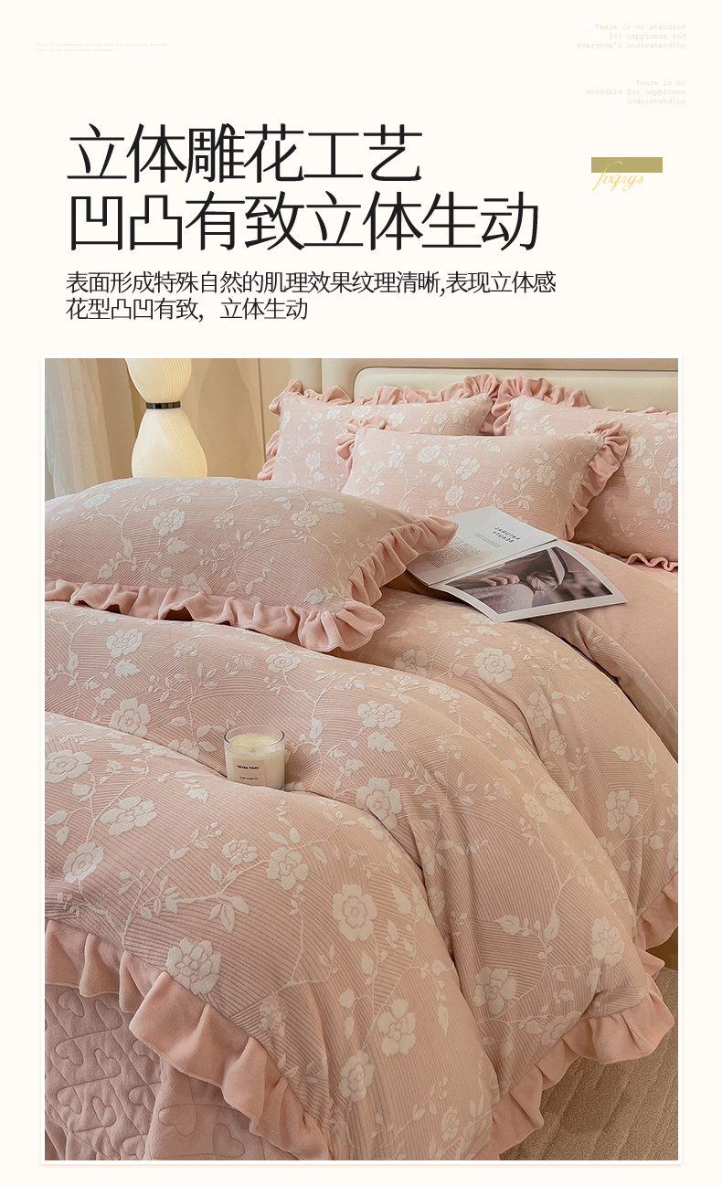 商品名称:2024新品A类牛奶绒韩版雕花四件套 蔷薇-粉