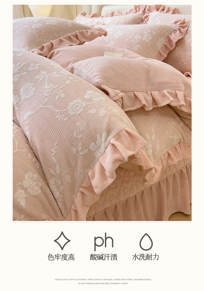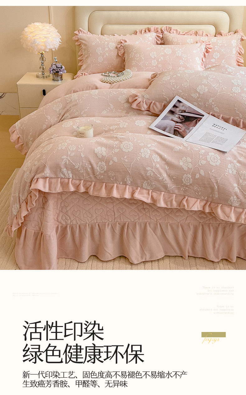 (总)恒爱 2022秋冬水晶绒翩翩花舞夹棉床裙四件套,大红色,豆沙红,橄榄绿,公主粉,桔色,咖啡色,孔雀绿,拉菲红,罗兰紫,玫红色,美人玉,米白色,米驼色,抹茶绿,浅灰色,紫色